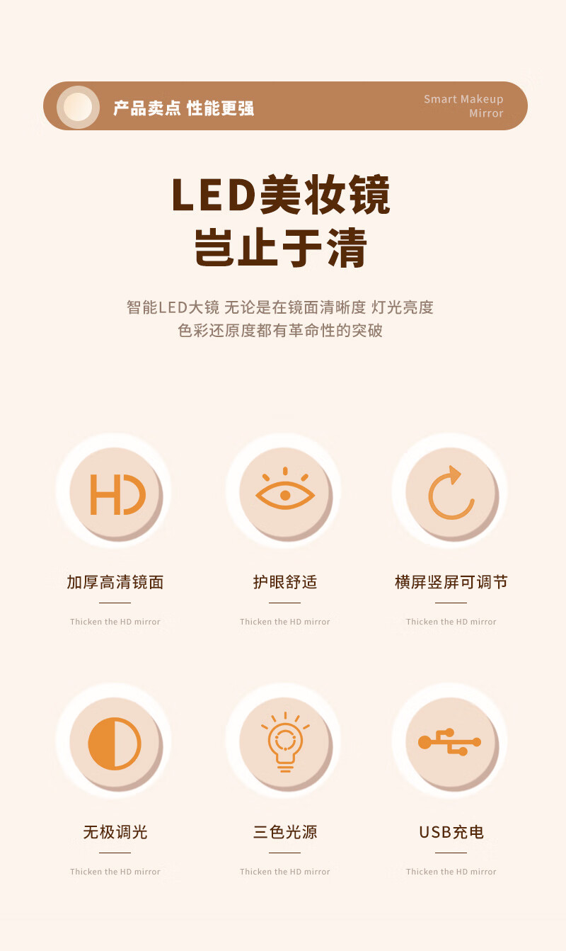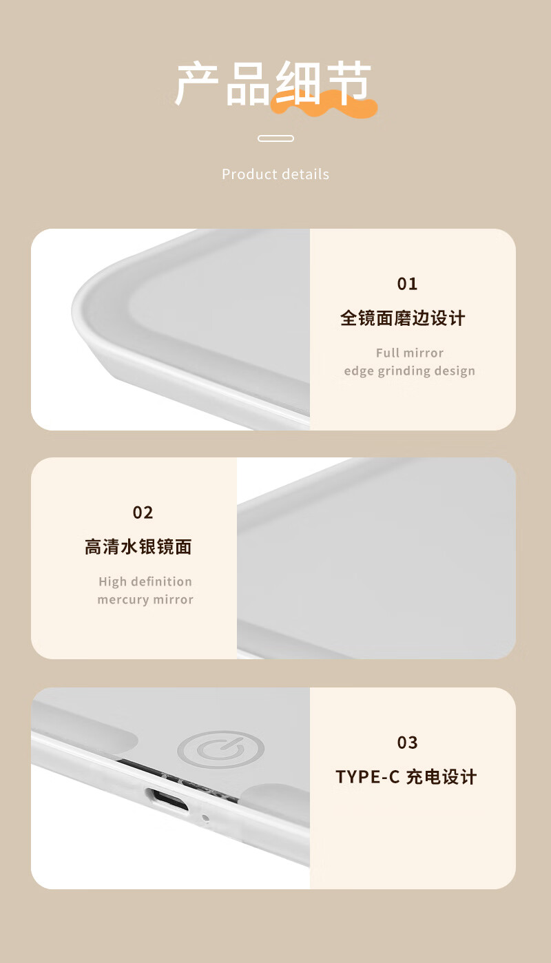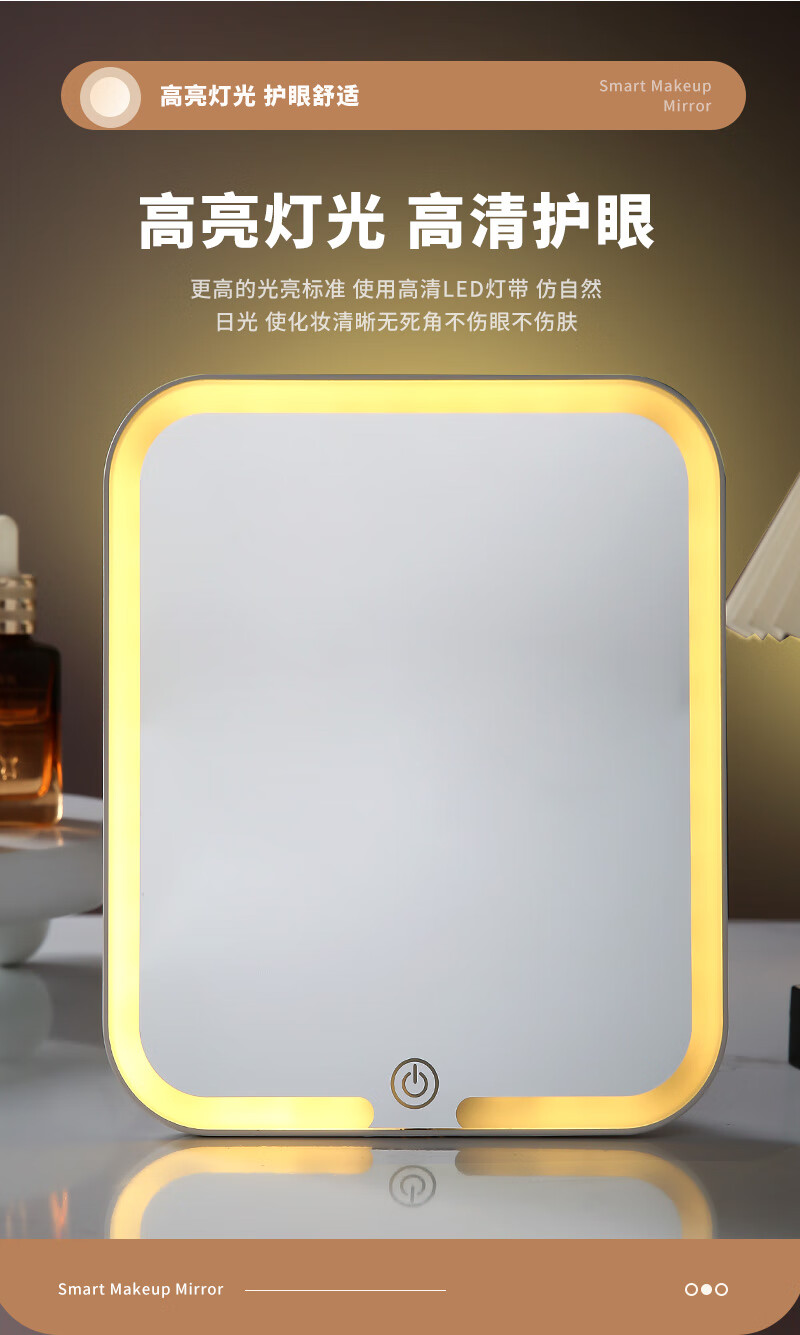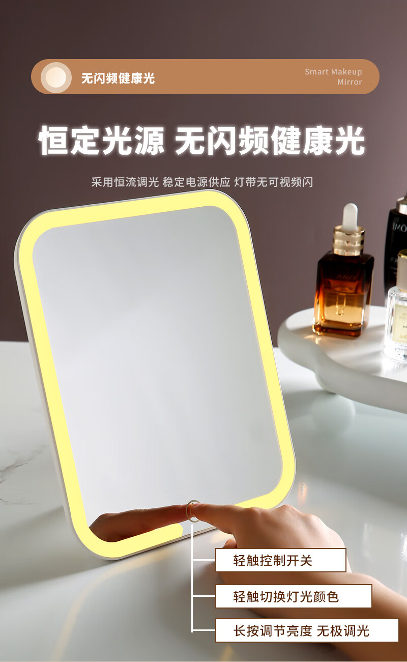 Quality assurance LED lighted makeup mirror large mirror student dormitory desktop home desktop 9-inch large screen folding light mirror dormitory bargain hunting limited time white 19.9*23*1.3