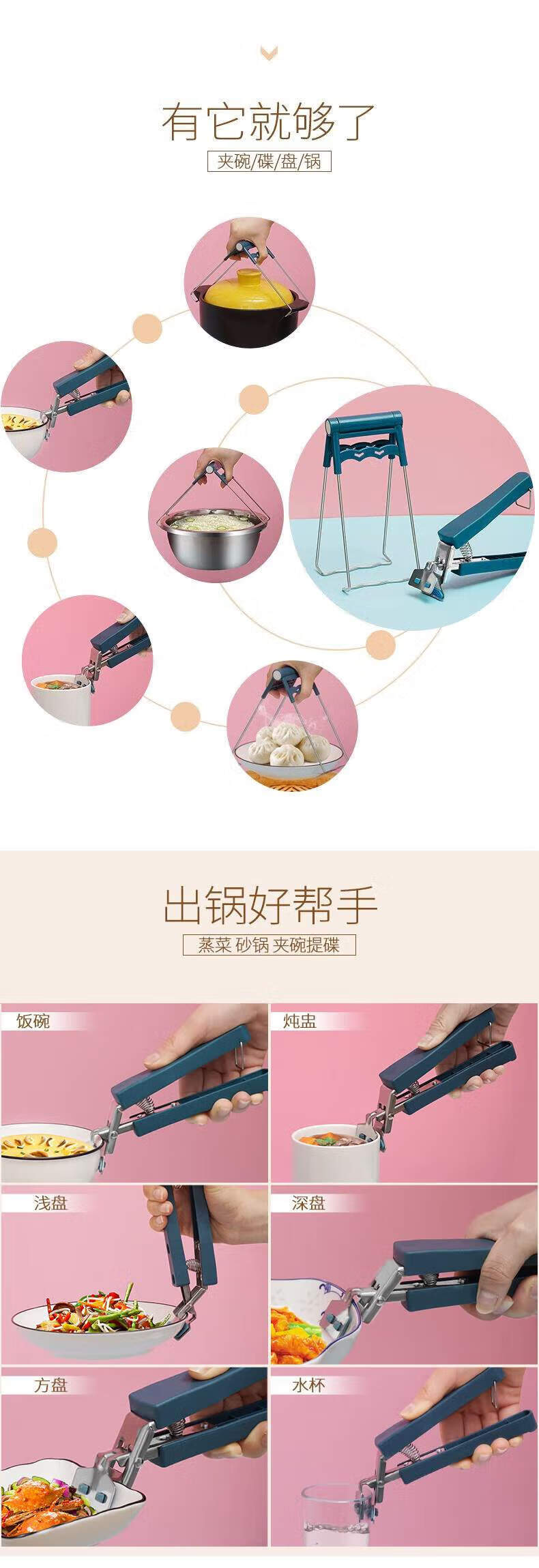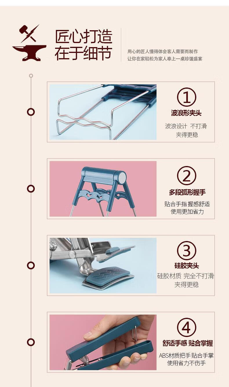 Yusenyi anti-scalding bowl clamp kitchen gadgets stainless steel anti-scalding bowl clamp lifting plate clamp bowl grab plate clamp lifting plate clamp rising bold anti-scalding anti-slip