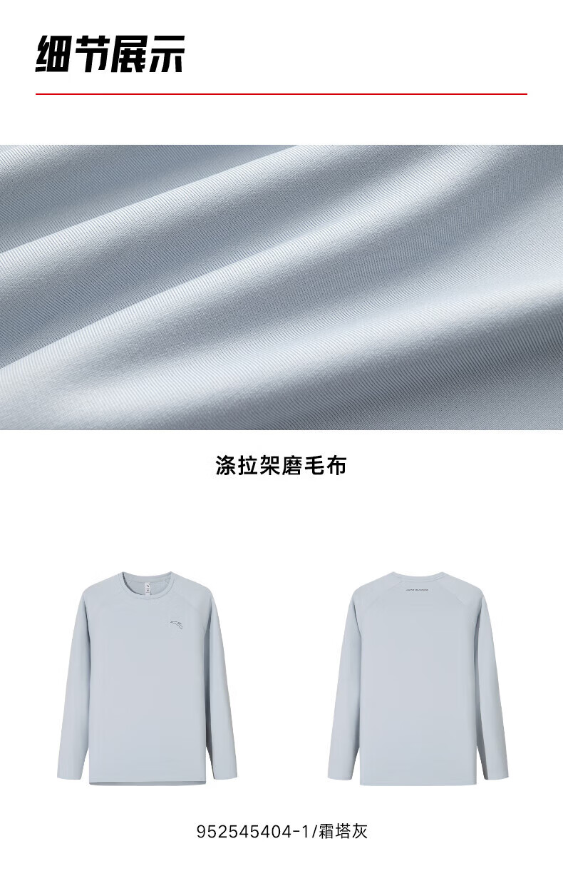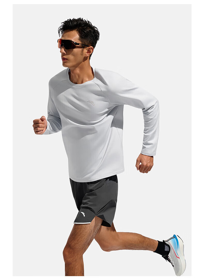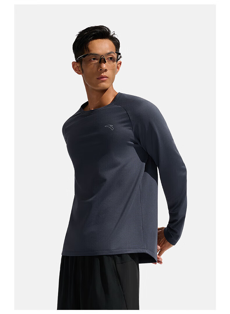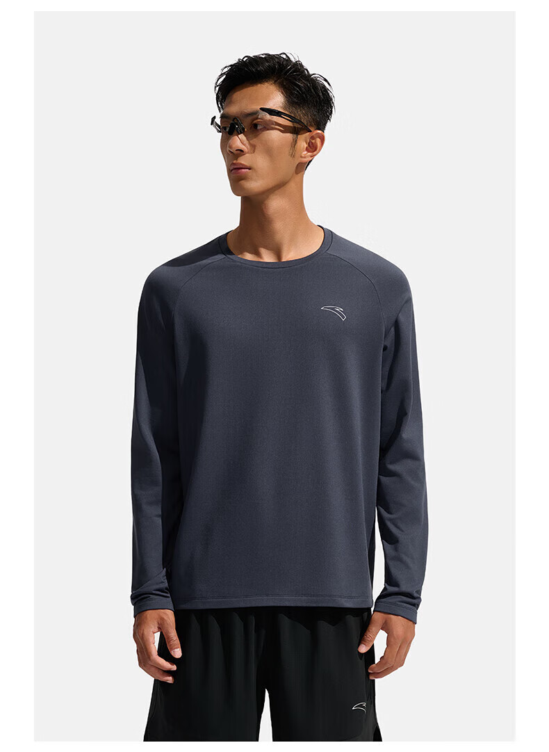 ANTA (ANTA) Sports Long T Men's 2025 Autumn New Sweat-Absorbent and Quick-Drying Sports Bottoming Shirt Cycling Suit Training Suit Long Sleeve Frost Tower Gray-1 2XL (Male 185)