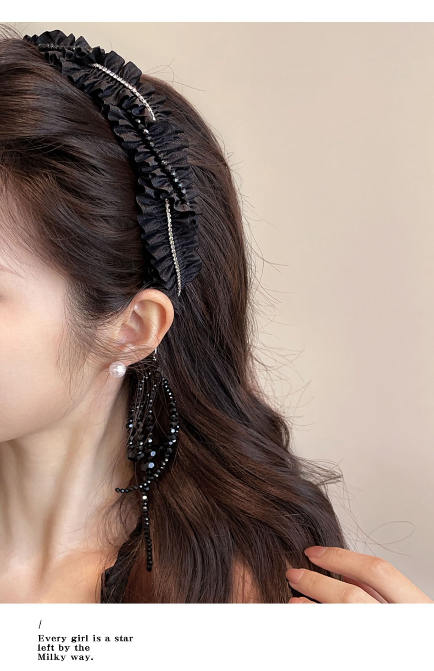 Kamalun (KAMALUN) light luxury women's headband 2025 new tassel headband face wash hairpin hairband high-end hair accessories high skull headband black tassel brand gift box