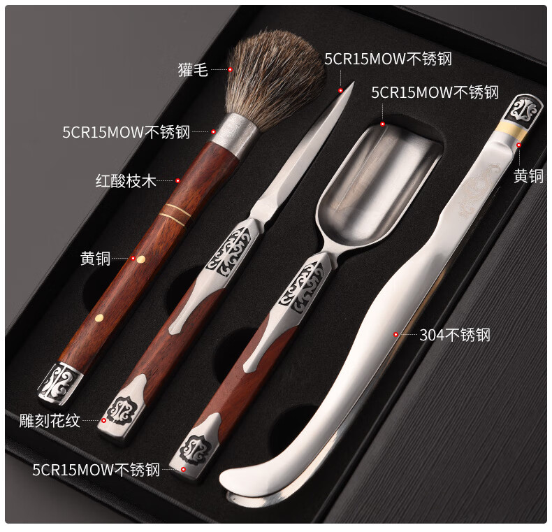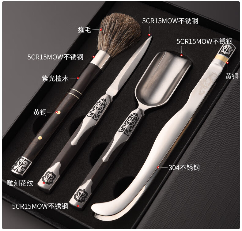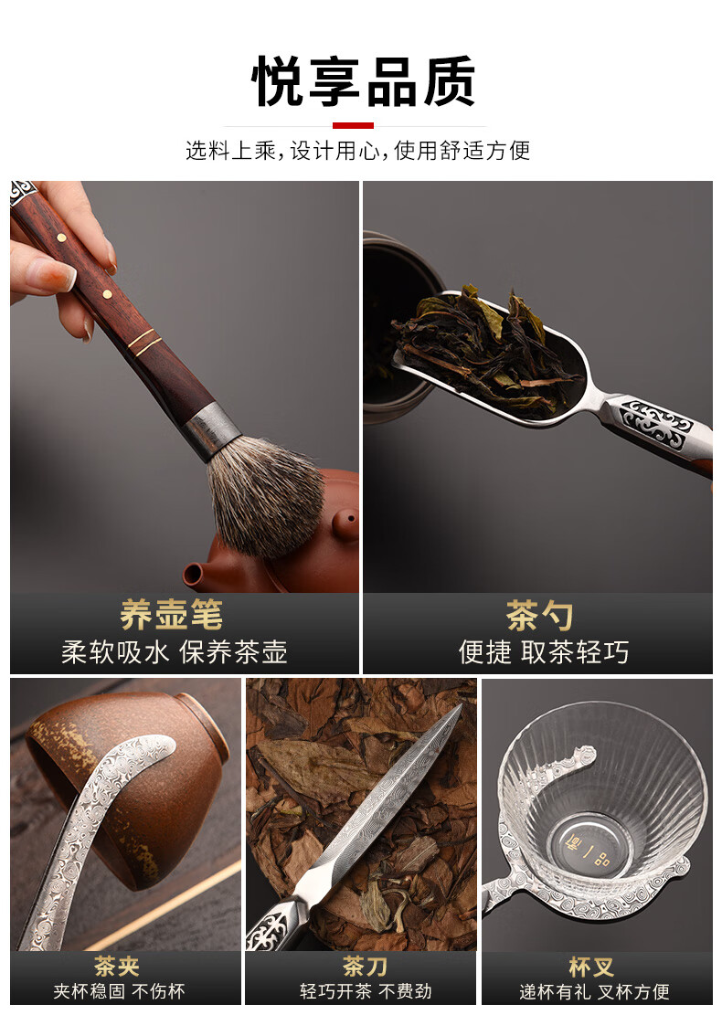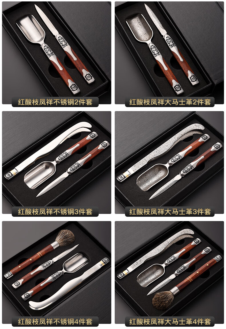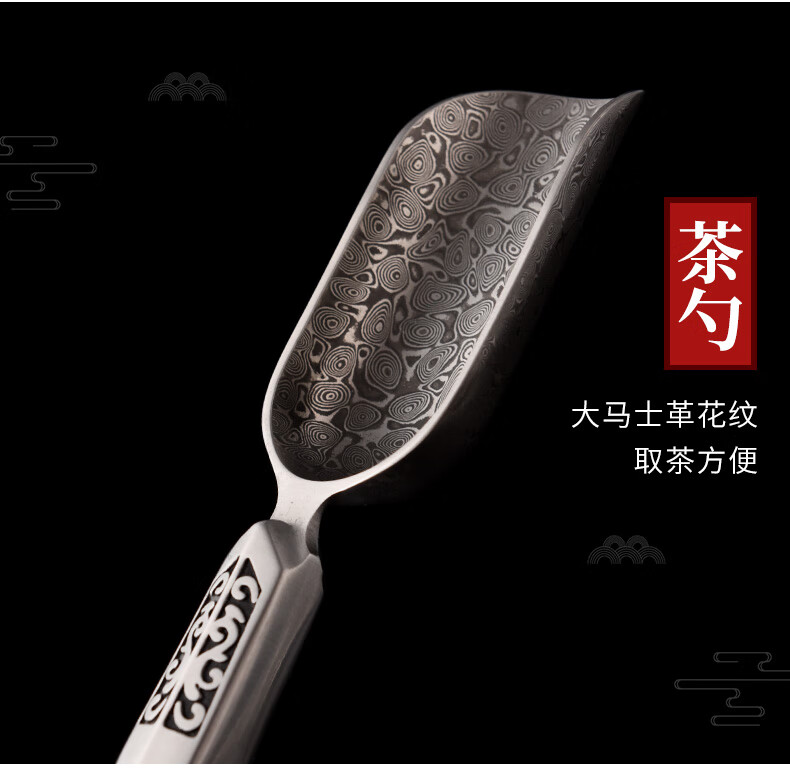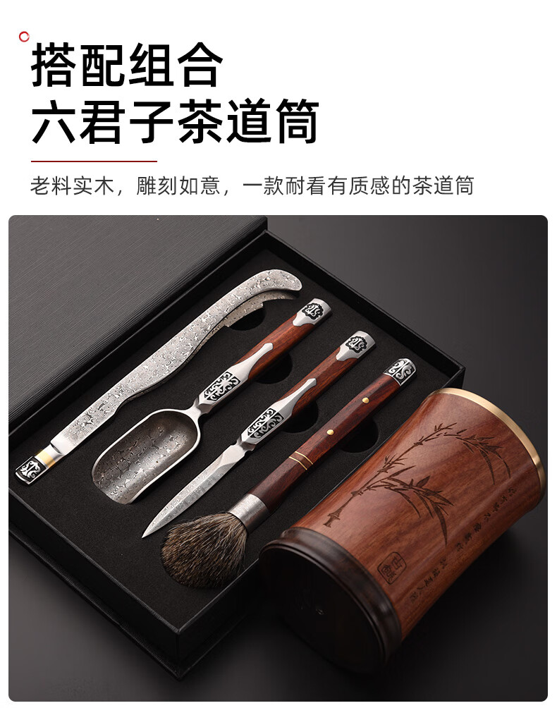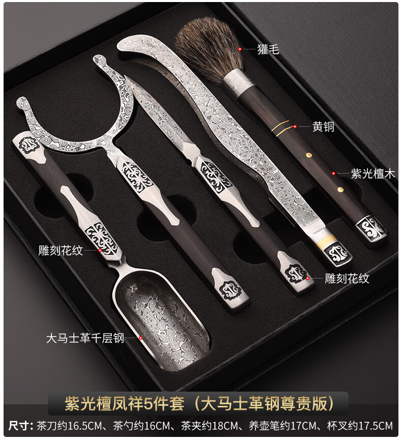 Jinge Damascus Pu'er Tea Knife Tea Ceremony Six Gentlemen Set Tea Spoon Spatula Tea Clip Kung Fu Tea Set Accessories Red Rosewood Fengxiang Damascus 5-piece Set