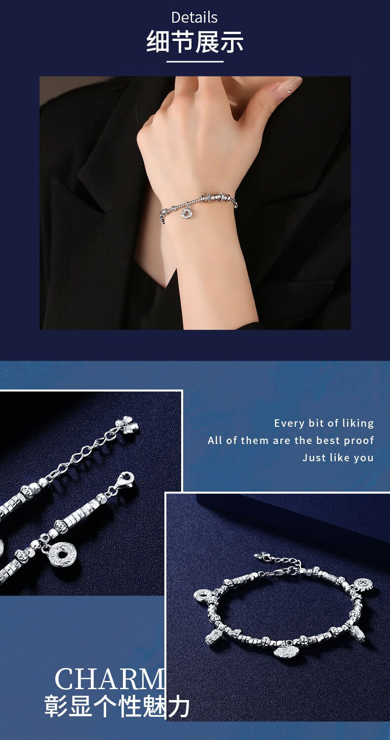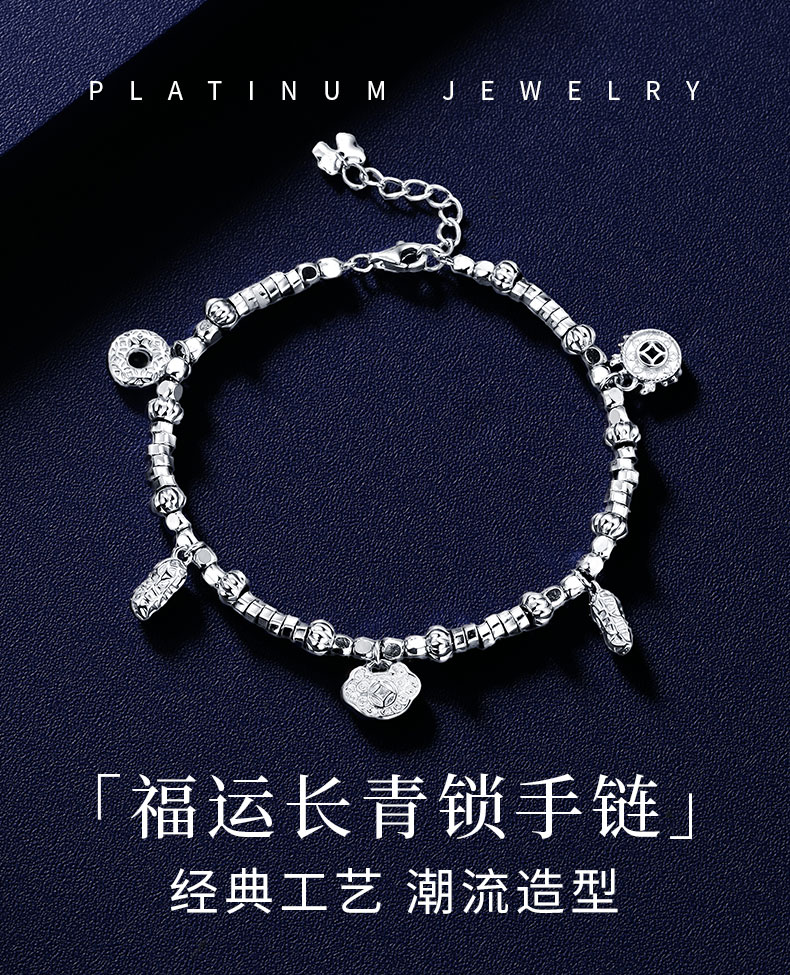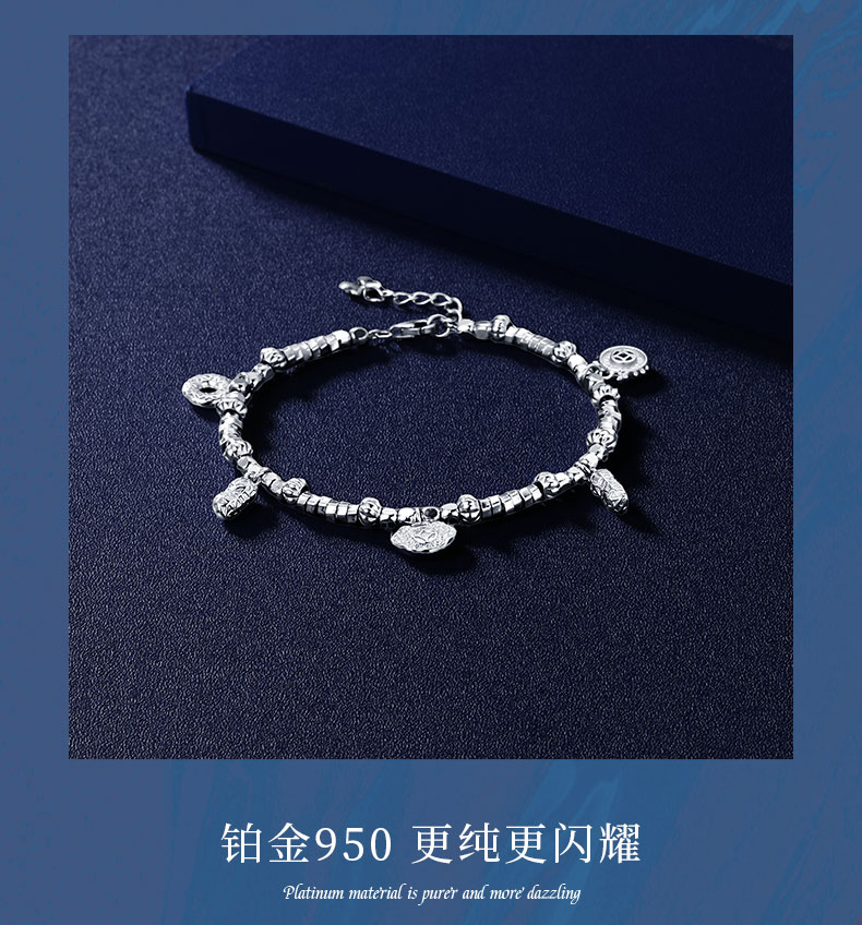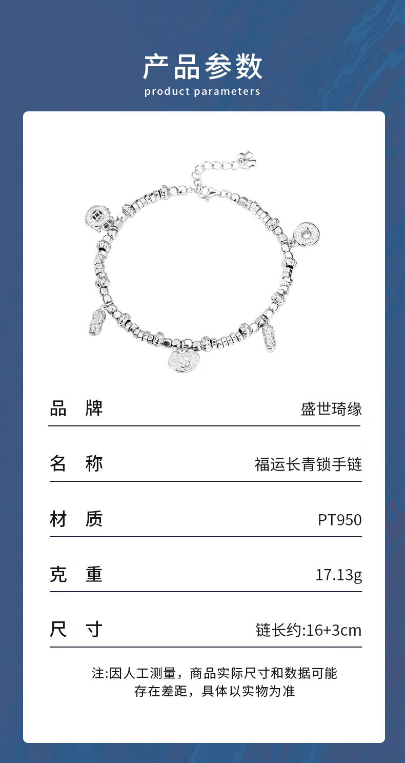 Shengshi Qiyuan pt950 platinum bracelet for women, platinum bracelet, sparkling luck, evergreen bracelet, Chinese Valentine's Day gift for girlfriend, 16.39g/length 16.5-19cm adjustable