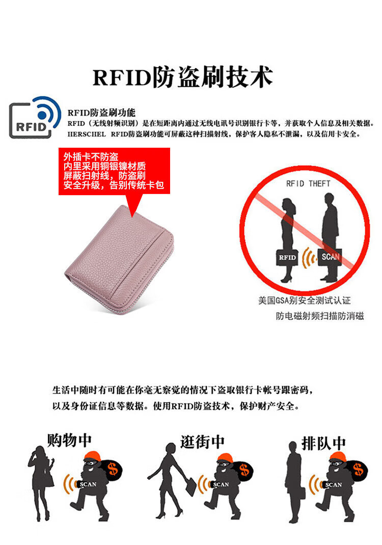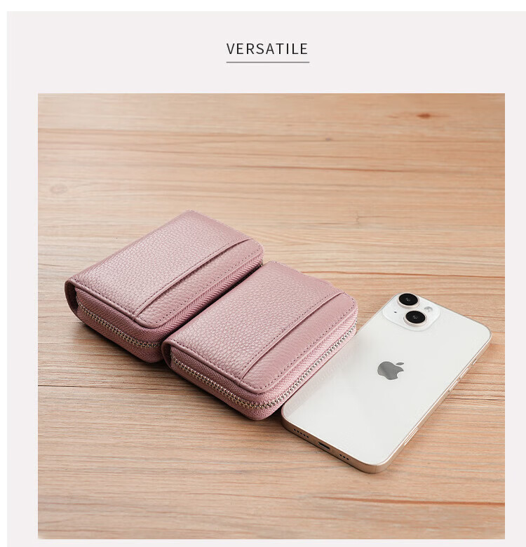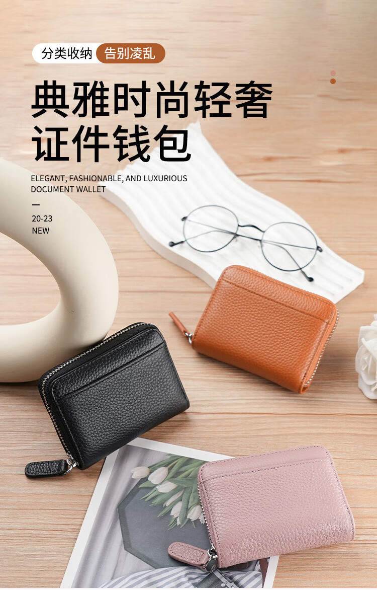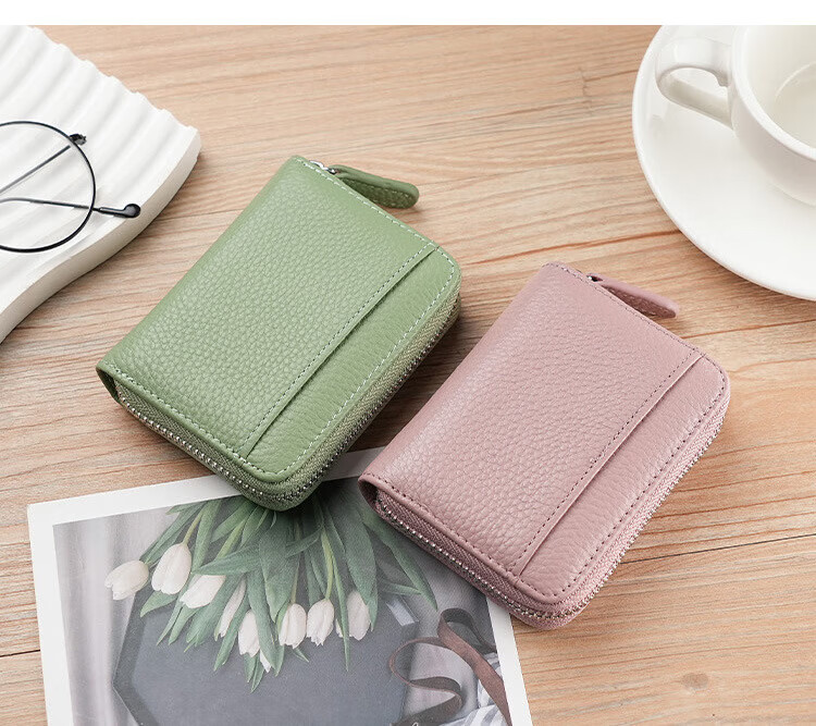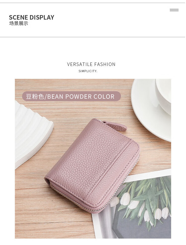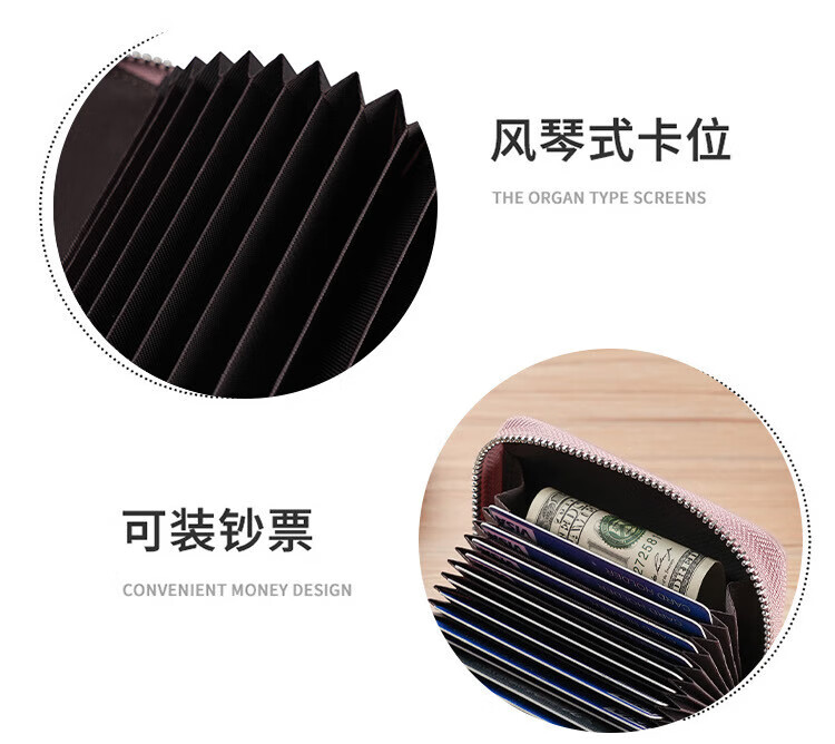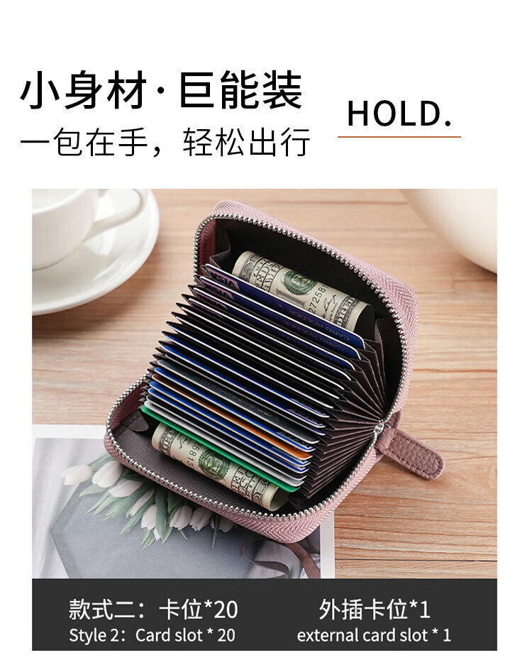 DUTRIEUX anti-degaussing multi-card slot genuine card holder zipper card holder women's compact credit card holder accordion card coin purse simple genuine card bag bean powder 20 card slots