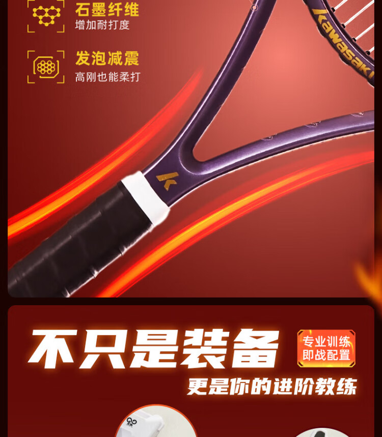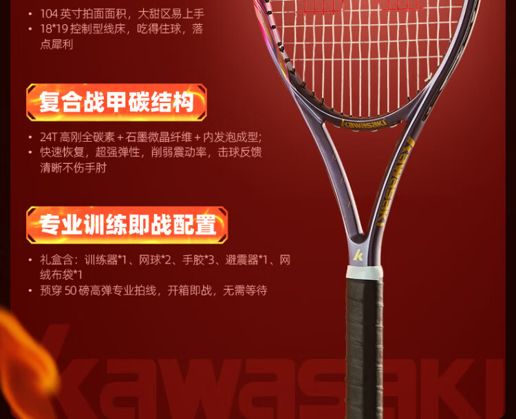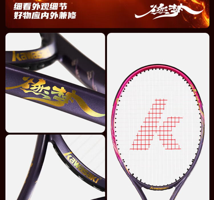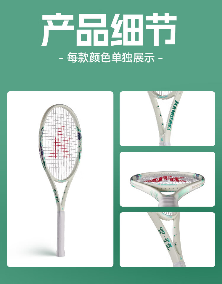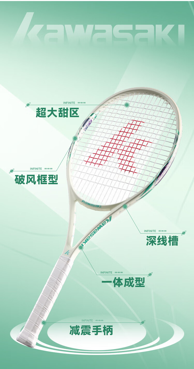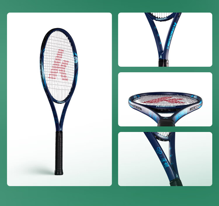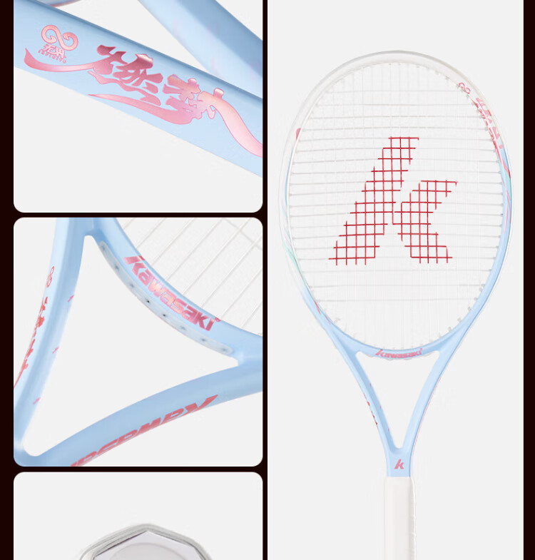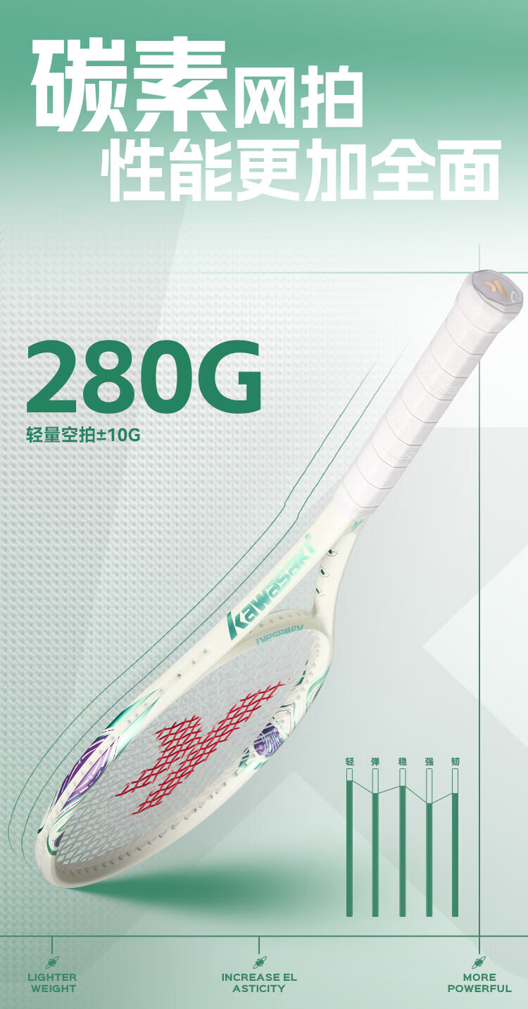 Kawasaki (KAWASAKI) Unbounded Xingyao Tennis Racquet Full Carbon Ultra-Light Adult Men's and Women's Professional Beginner Racquet Shock Absorbing and Durable Unbounded-Xingyao Sky Blue (Stringing)