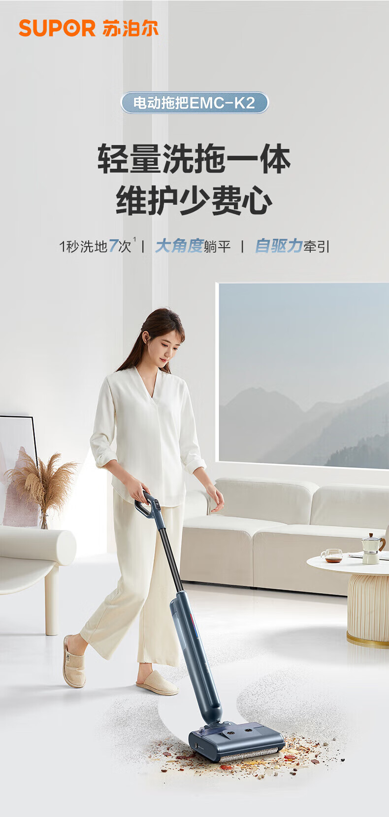 Supor enjoys an instant discount for consultation. Floor washing machine and mopping machine, all-in-one sweeping, cleaning and mopping machine, self-cleaning solid-liquid separation, no odor, lightweight, light-noise, self-traction, ultra-long-lasting electric mop K2, o water stains, o tangled hair, all-in-one sweeping, cleaning and mopping machine.