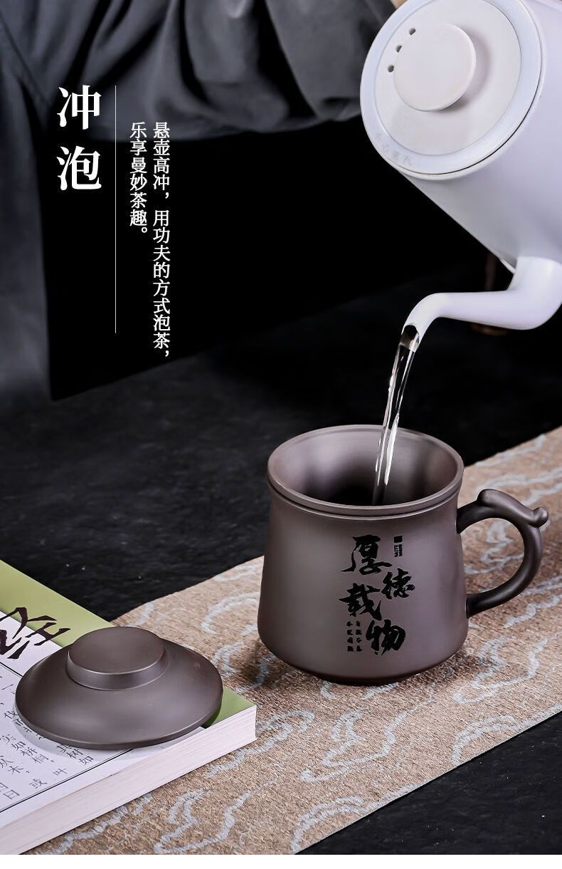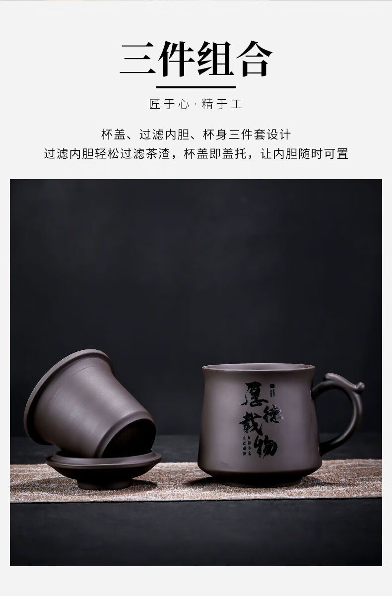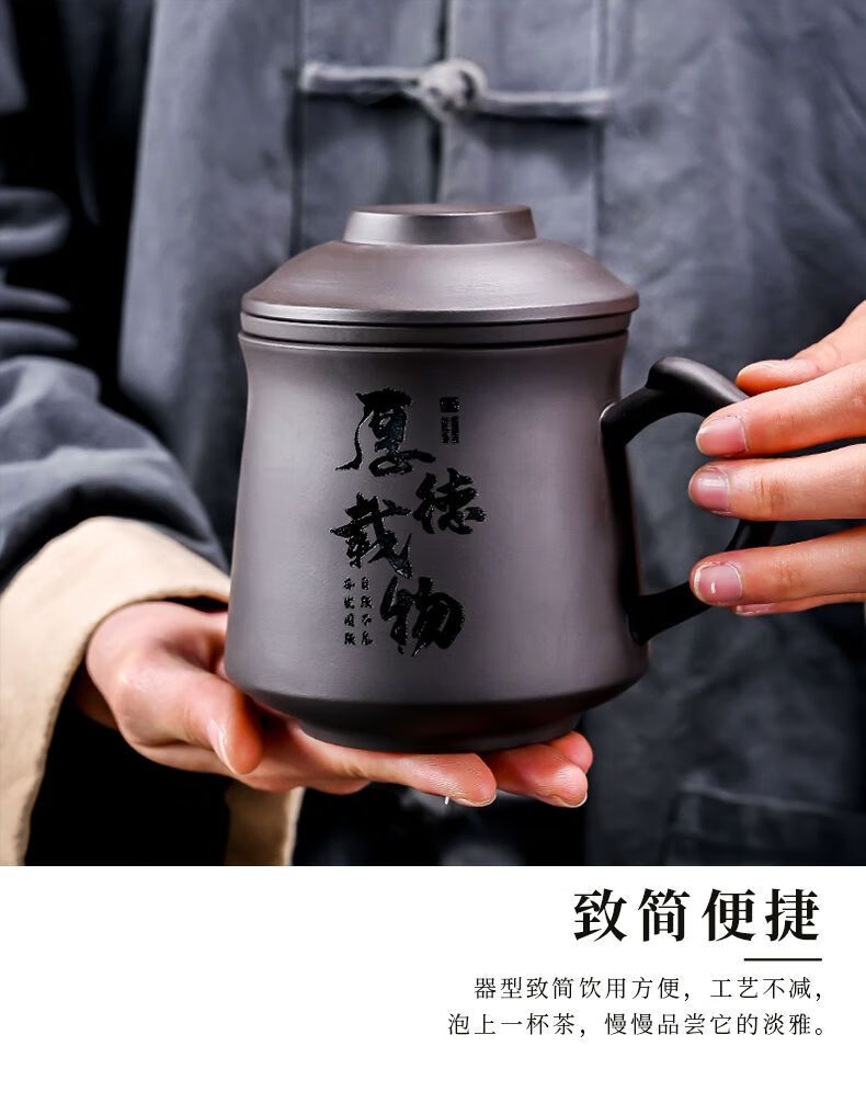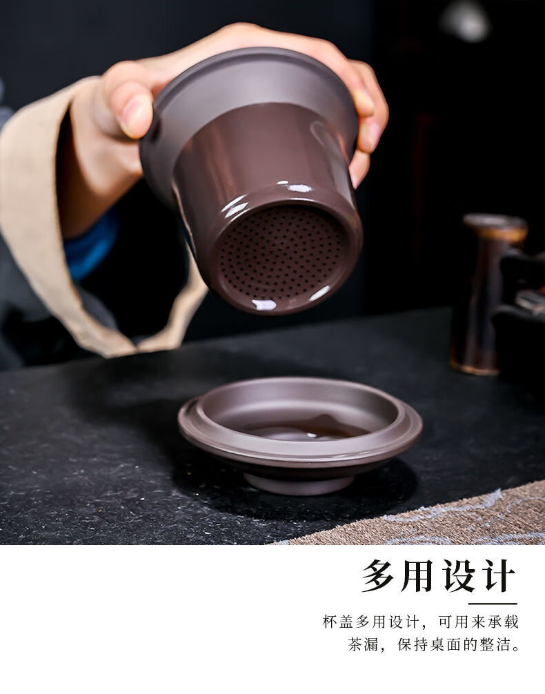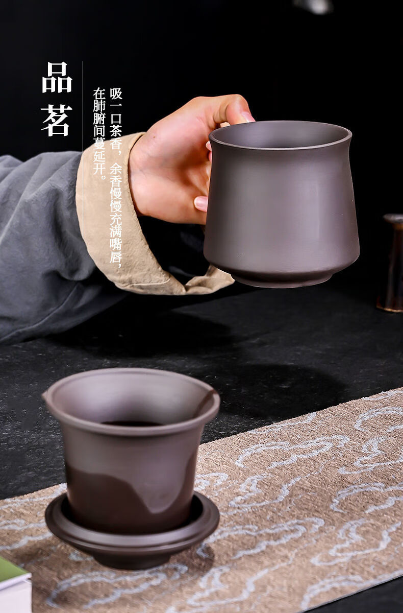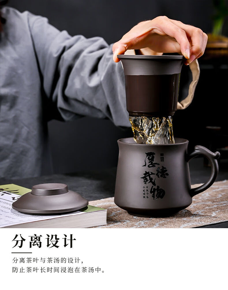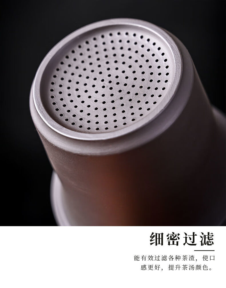 Jingshifu Wan Qingxing Large Capacity Authentic Retro Purple Clay Office Tea Cup with Filter Liner Mug Travel Set Small Tea Drinking Cup (It is not recommended to take a picture and place an order clearly)
