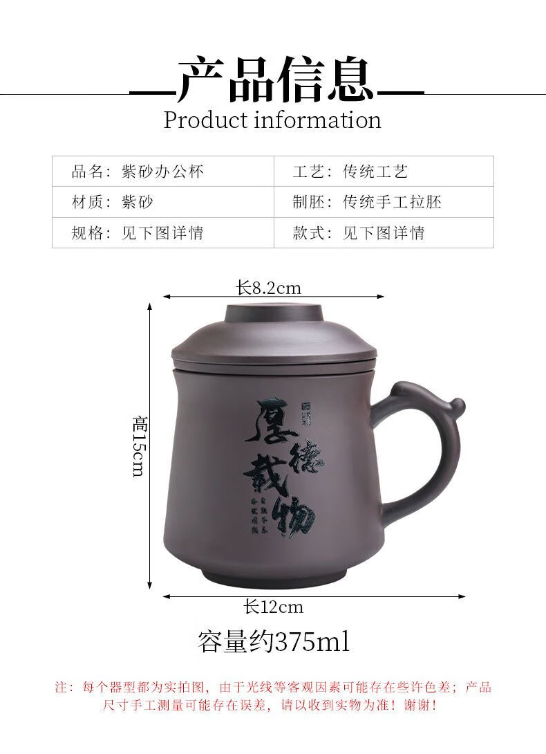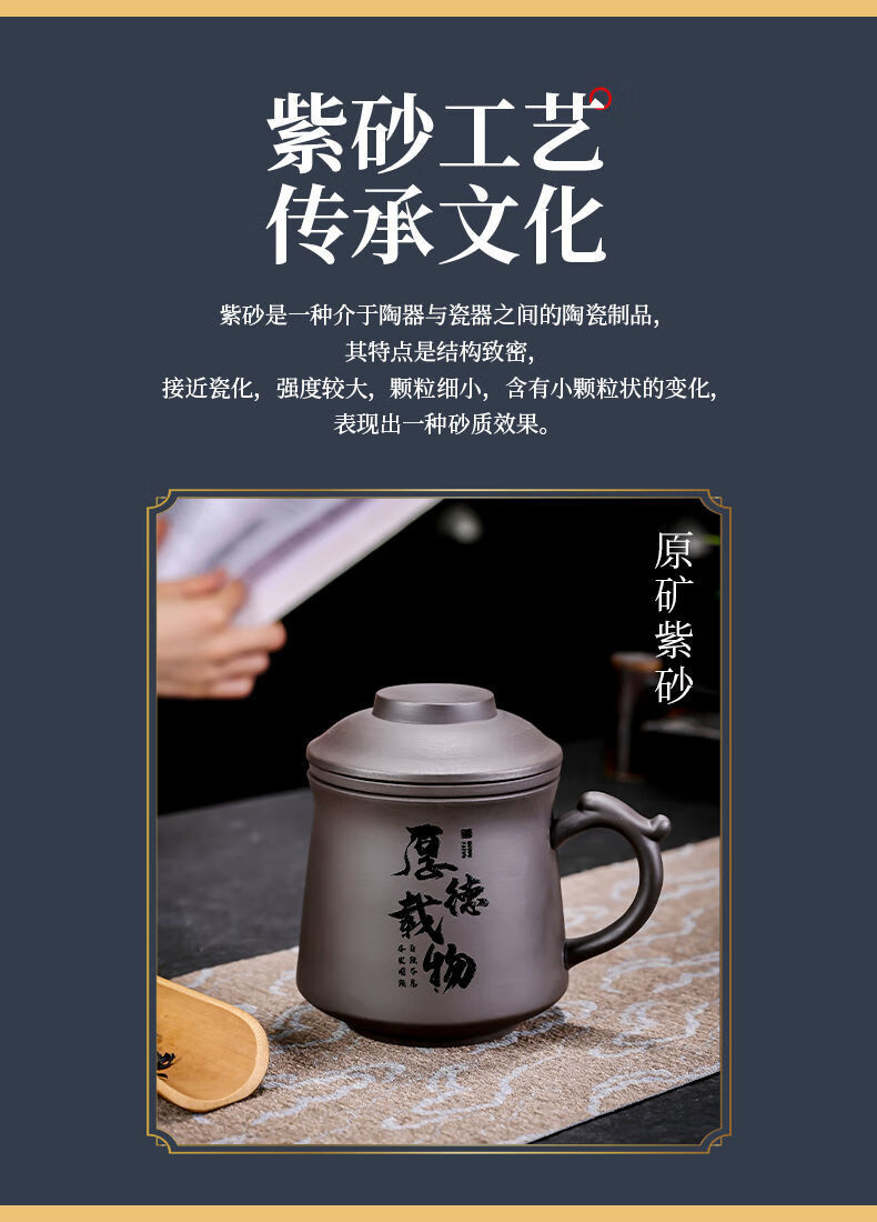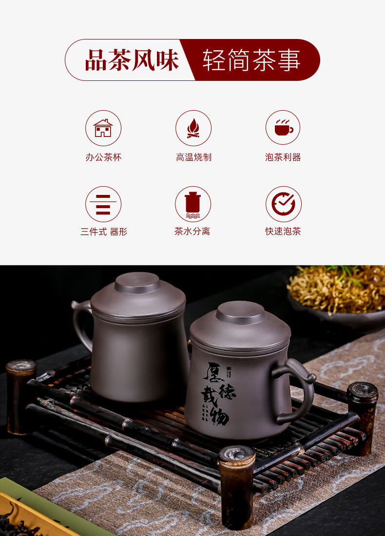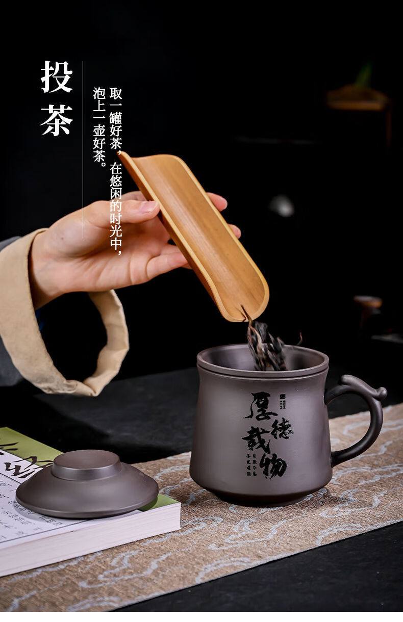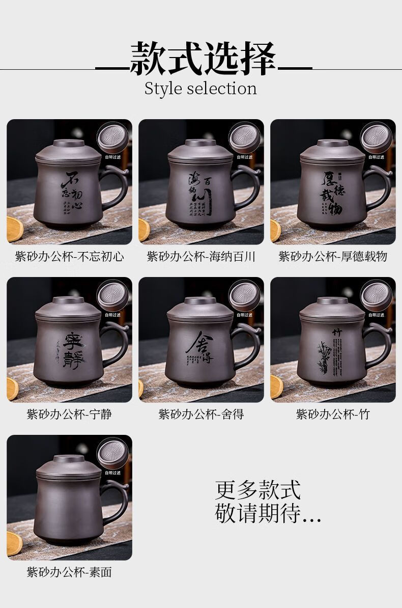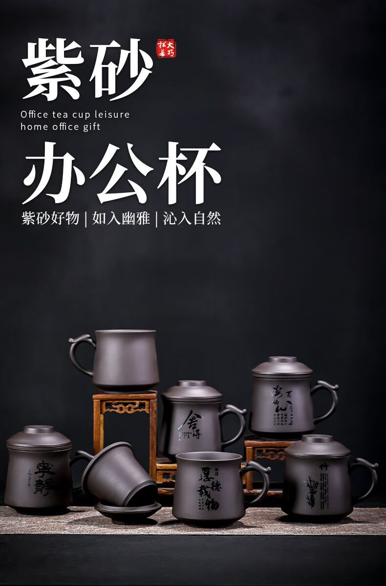Jingshifu Wan Qingxing Large Capacity Authentic Retro Purple Clay Office Tea Cup with Filter Liner Mug Travel Set Small Tea Drinking Cup (It is not recommended to take a picture and place an order clearly)