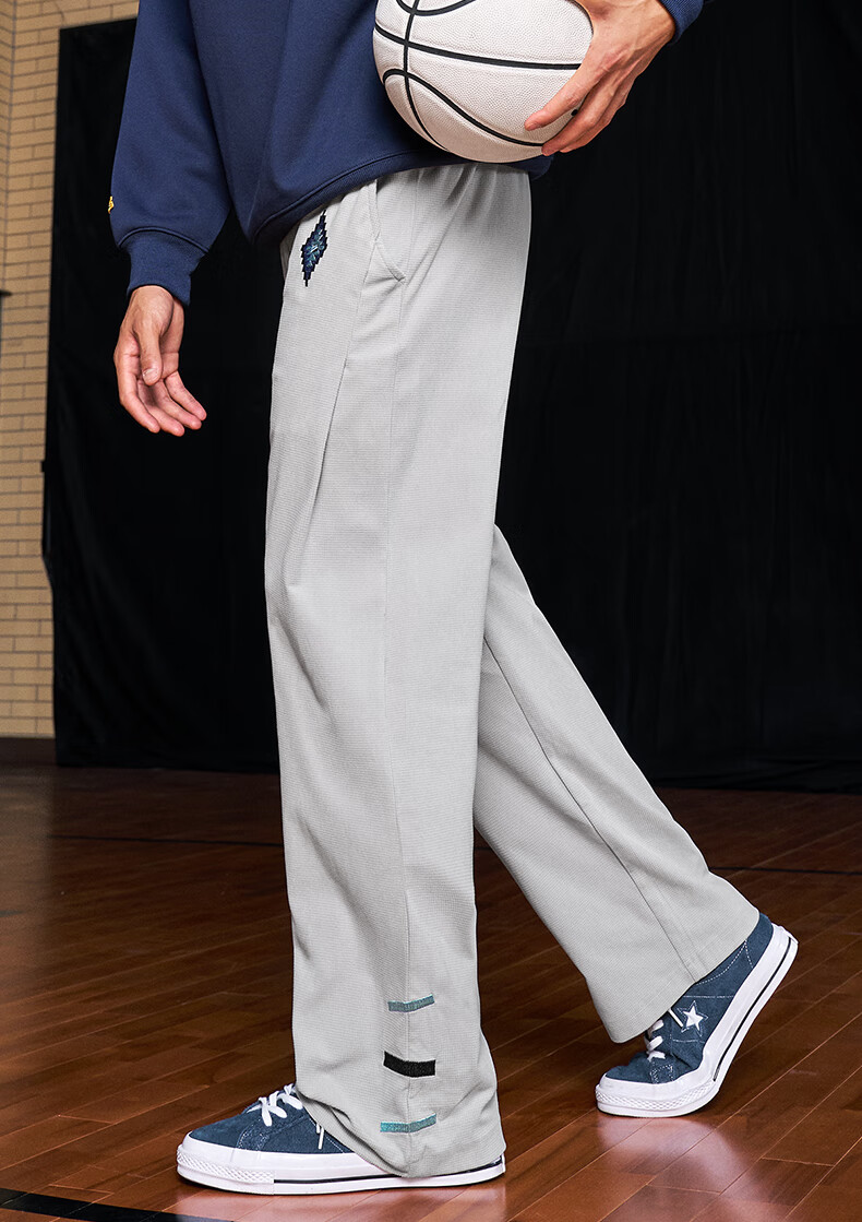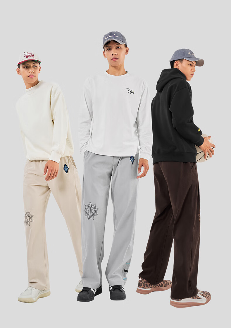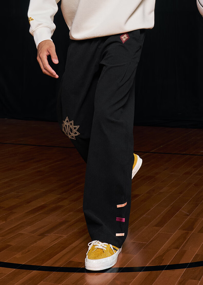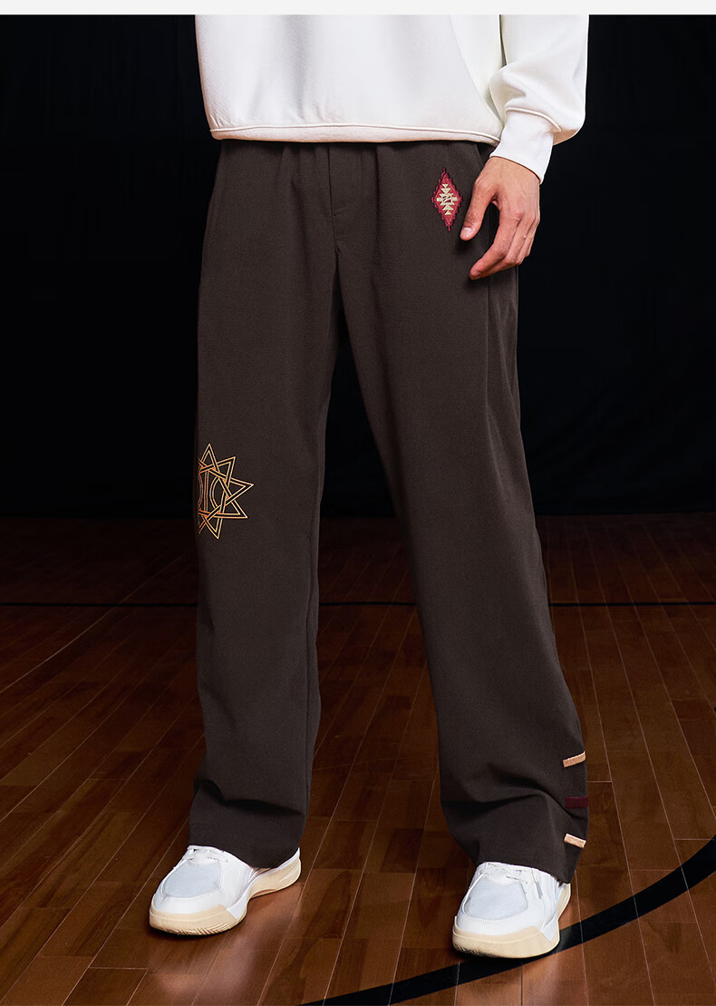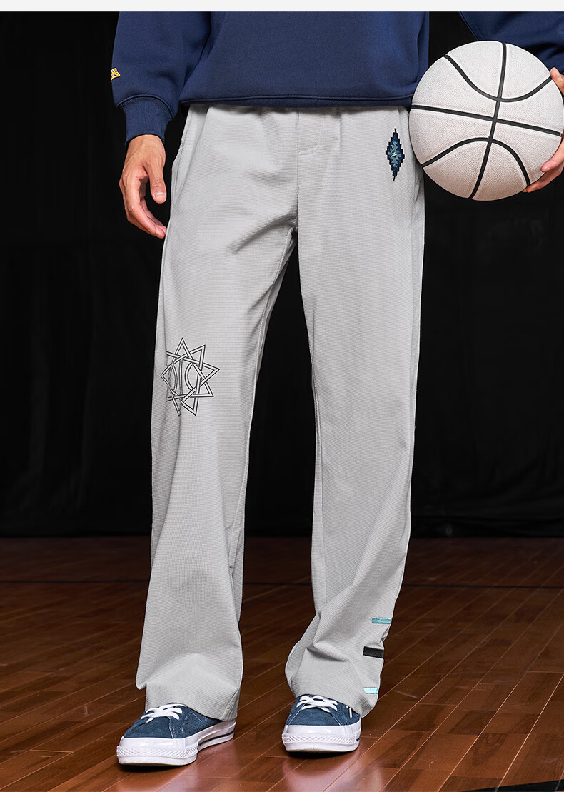UZIS American trendy sports trousers for men's basketball running casual loose waffle straight pants totem black L