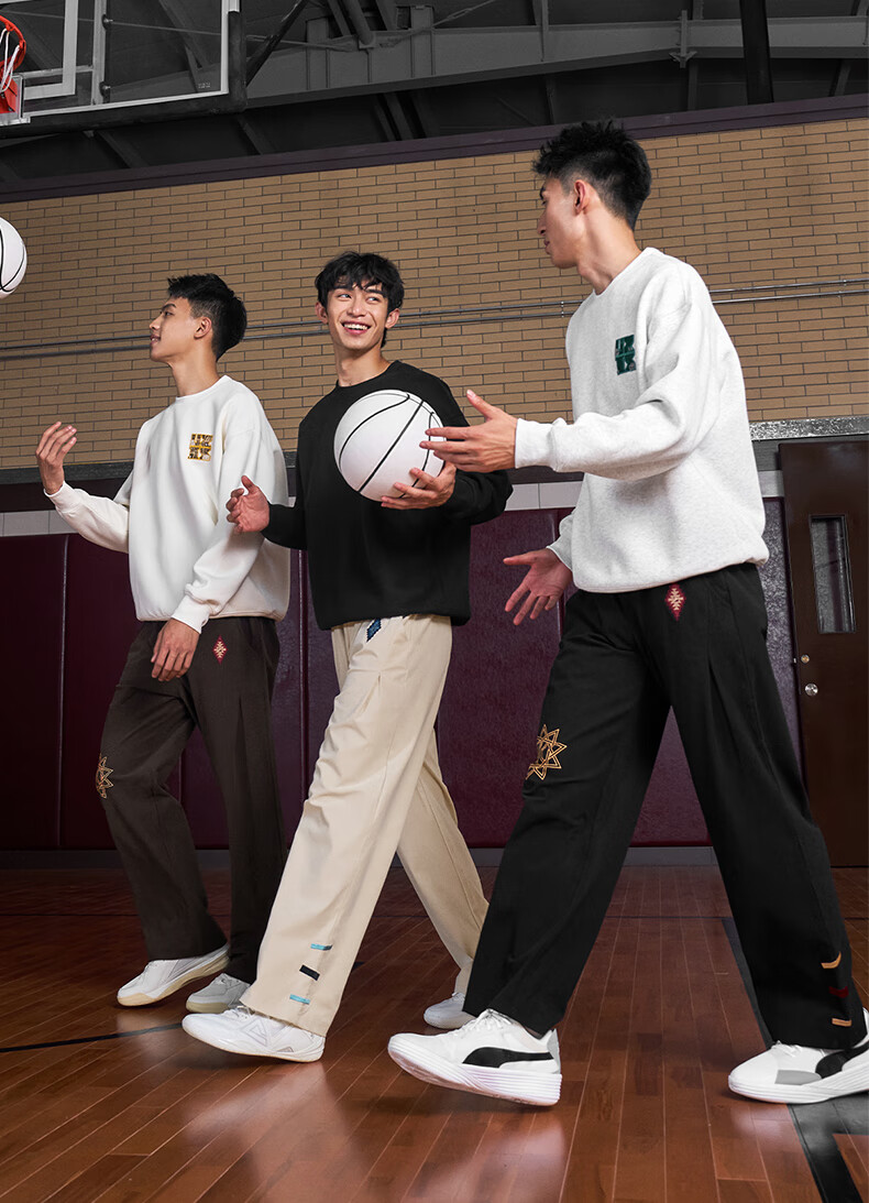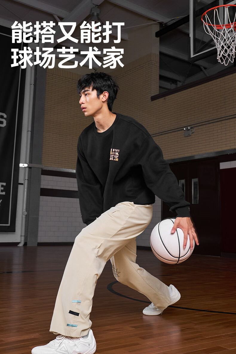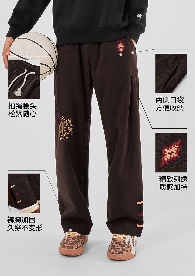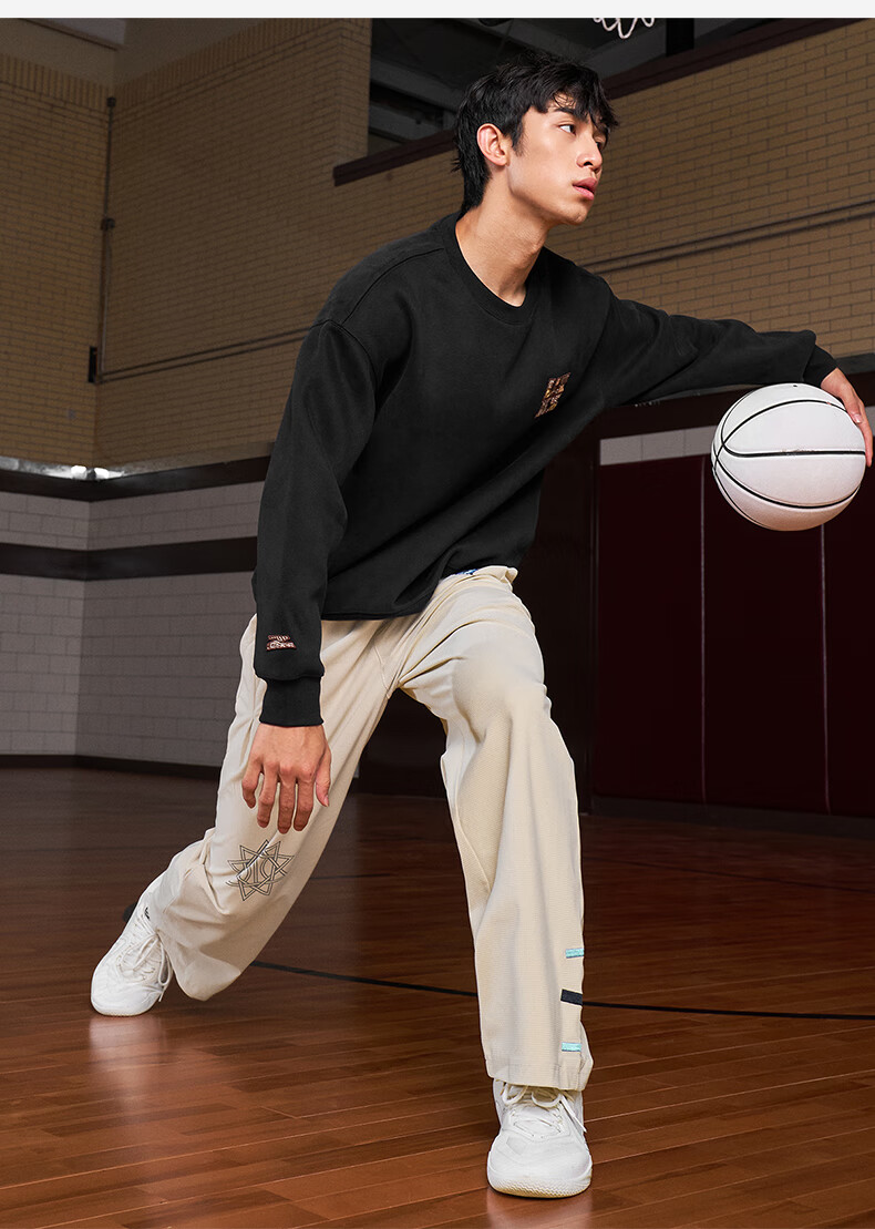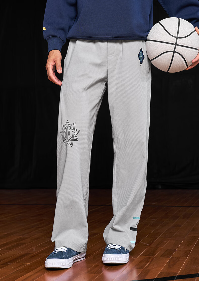 UZIS American trendy sports trousers for men's basketball running casual loose waffle straight pants totem black L