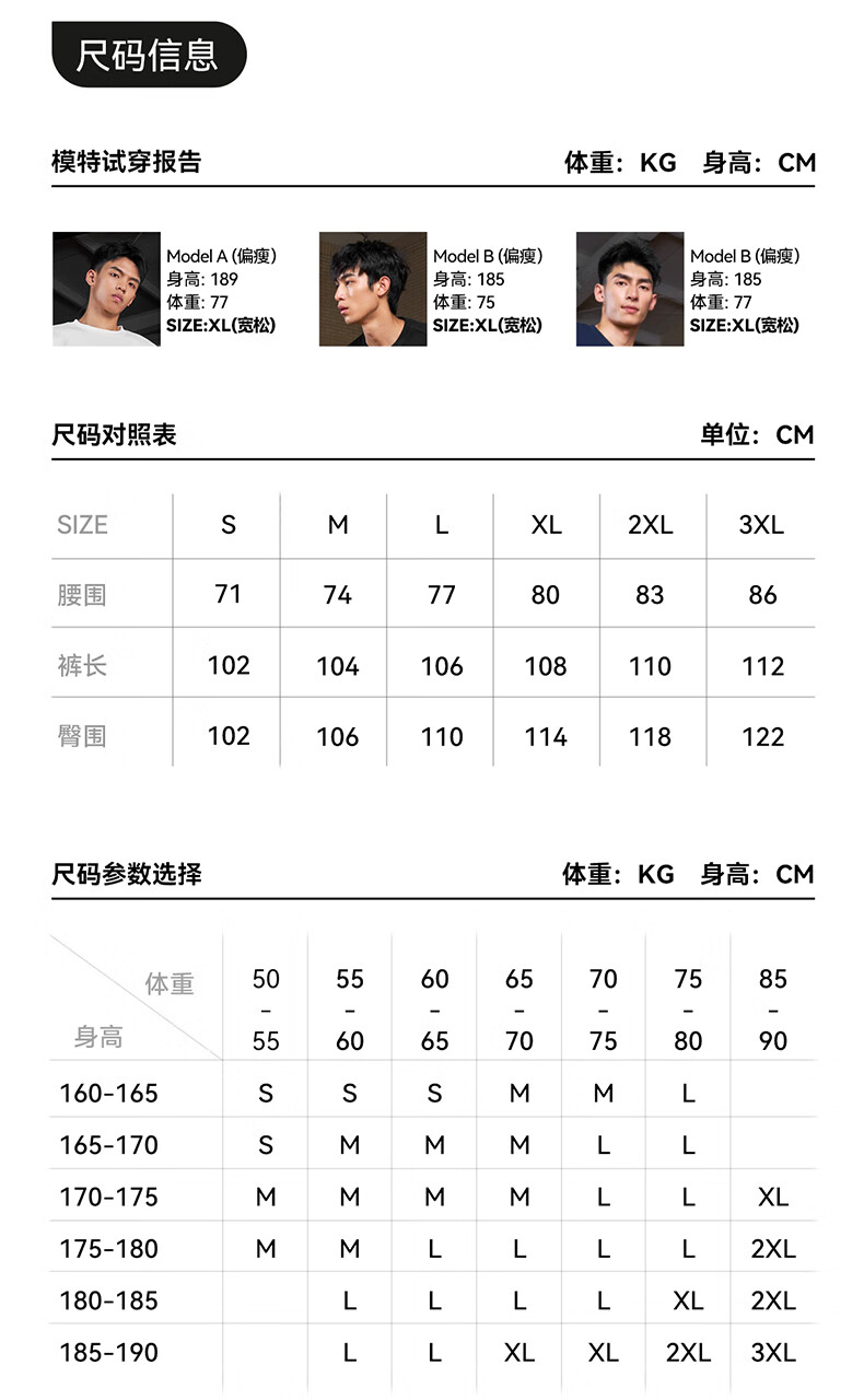 China (cm) 160-165/84-86 165-170 / 88-90 167-172 / 92-96 168-173 / 98-102 170-176 / 106-110
