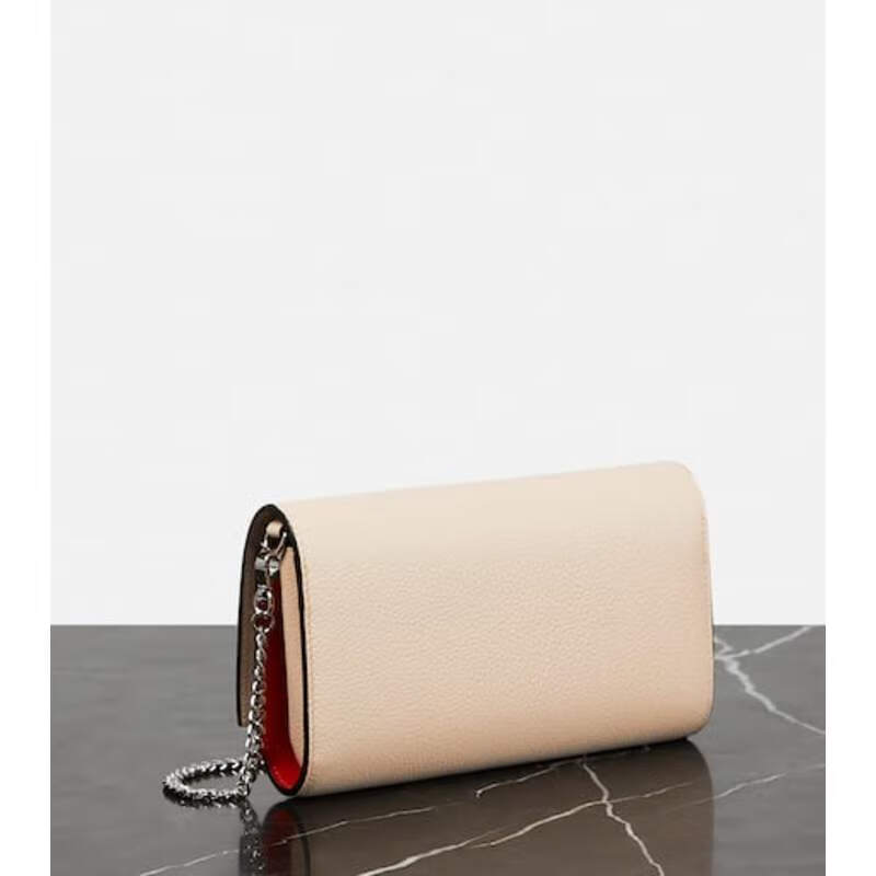 Luboting Light Luxury Women's Logo Leather Chain Wallet Beige One Size
