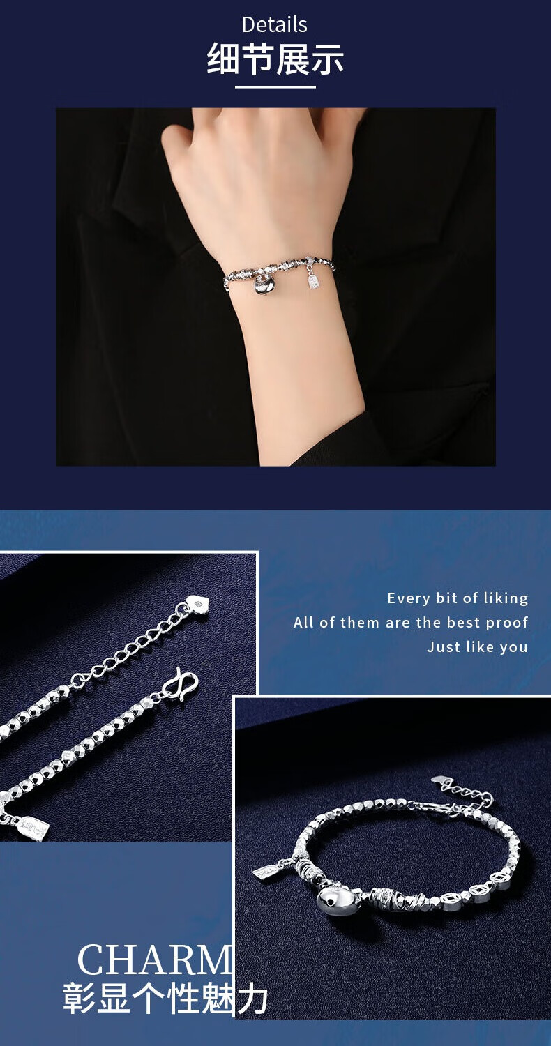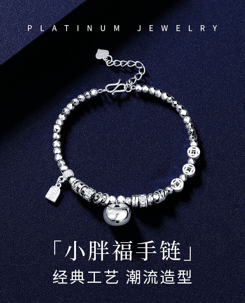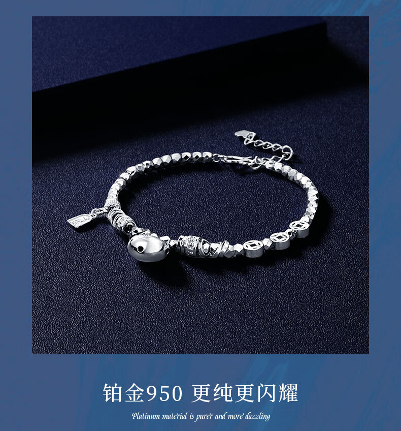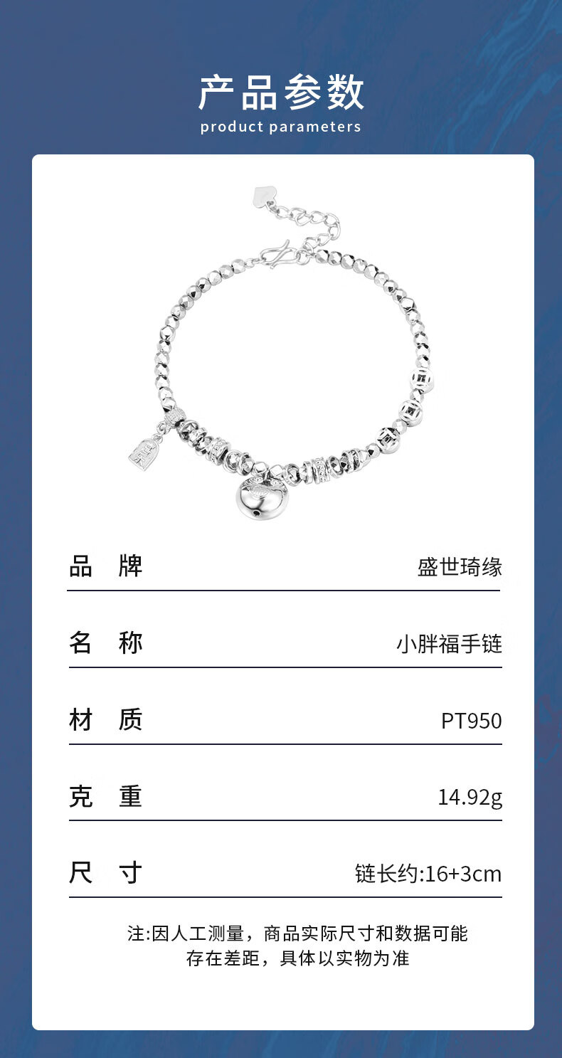 Shengshi Qiyuan platinum bracelet for women pt950 platinum bracelet sparkling little fat bracelet Chinese Valentine's Day gift for girlfriend 14.8-15.2g/length 16.5-19cm adjustable