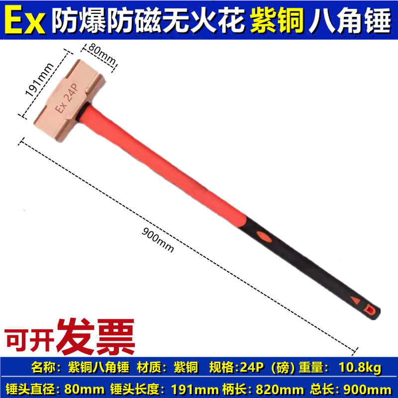 Oein copper hammer pure copper octagonal hammer copper hammer non-sparking non-magnetic all-copper hammer explosion-proof all-copper red copper hammer copper octagonal hammer 1 pound/0.45kg
