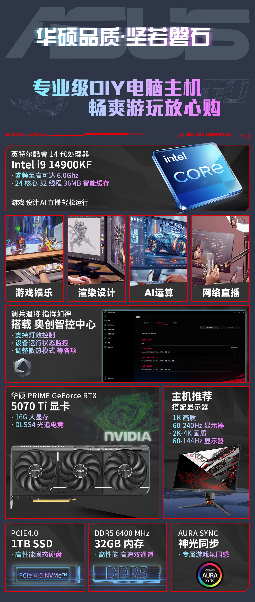 ASUS Family Bucket 24-issue interest-free i9 14900KF/RTX5080 host RTX5090 D graphics card deep learning AI computing desktop design rendering e-sports assembly with one 14900KF+RTX5070