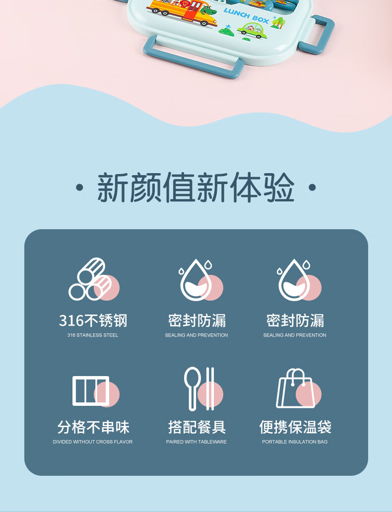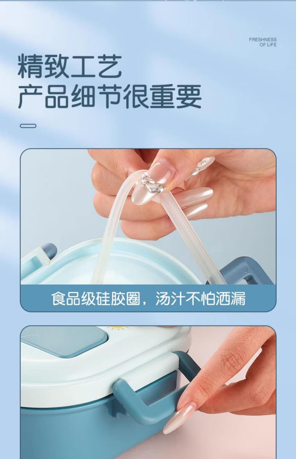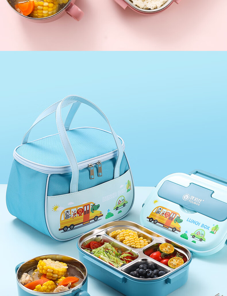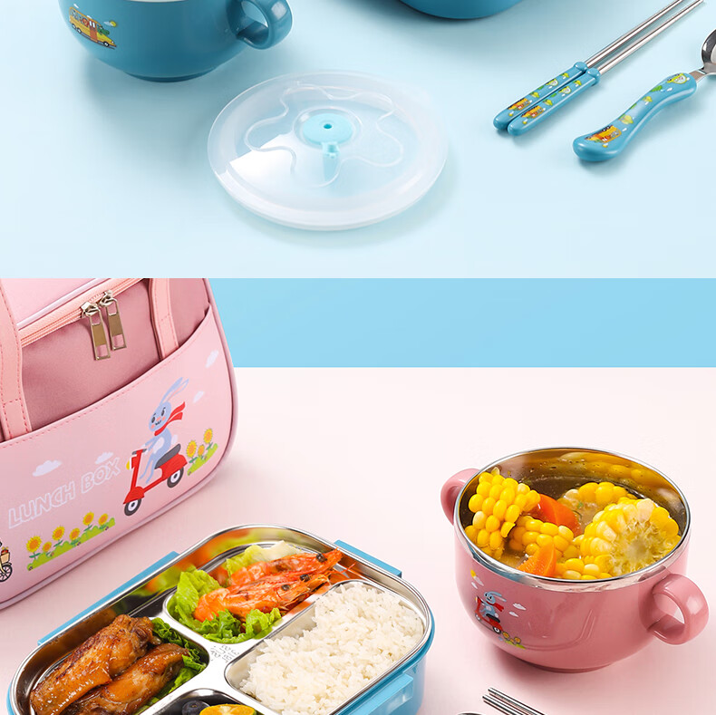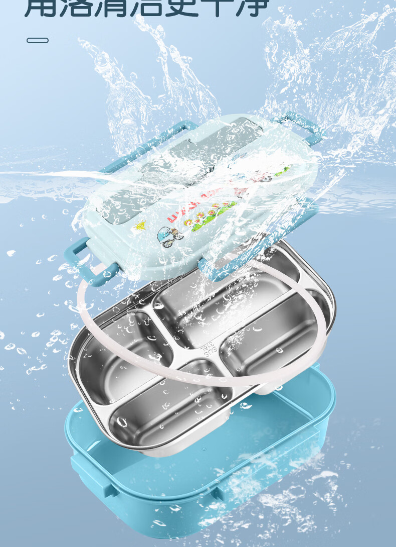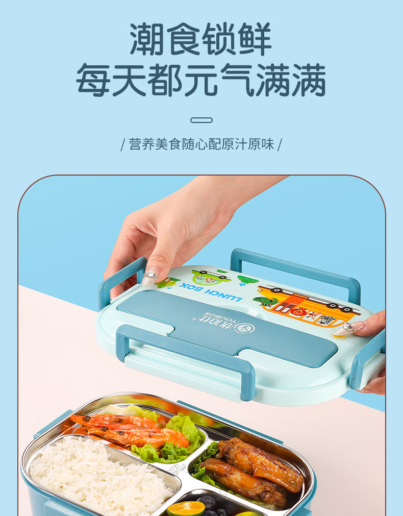 Tuojin German imported high-quality lunch box for primary school students, 316 stainless steel children's insulated lunch box for first grade boys, real 316 large size, four grandi blue school B