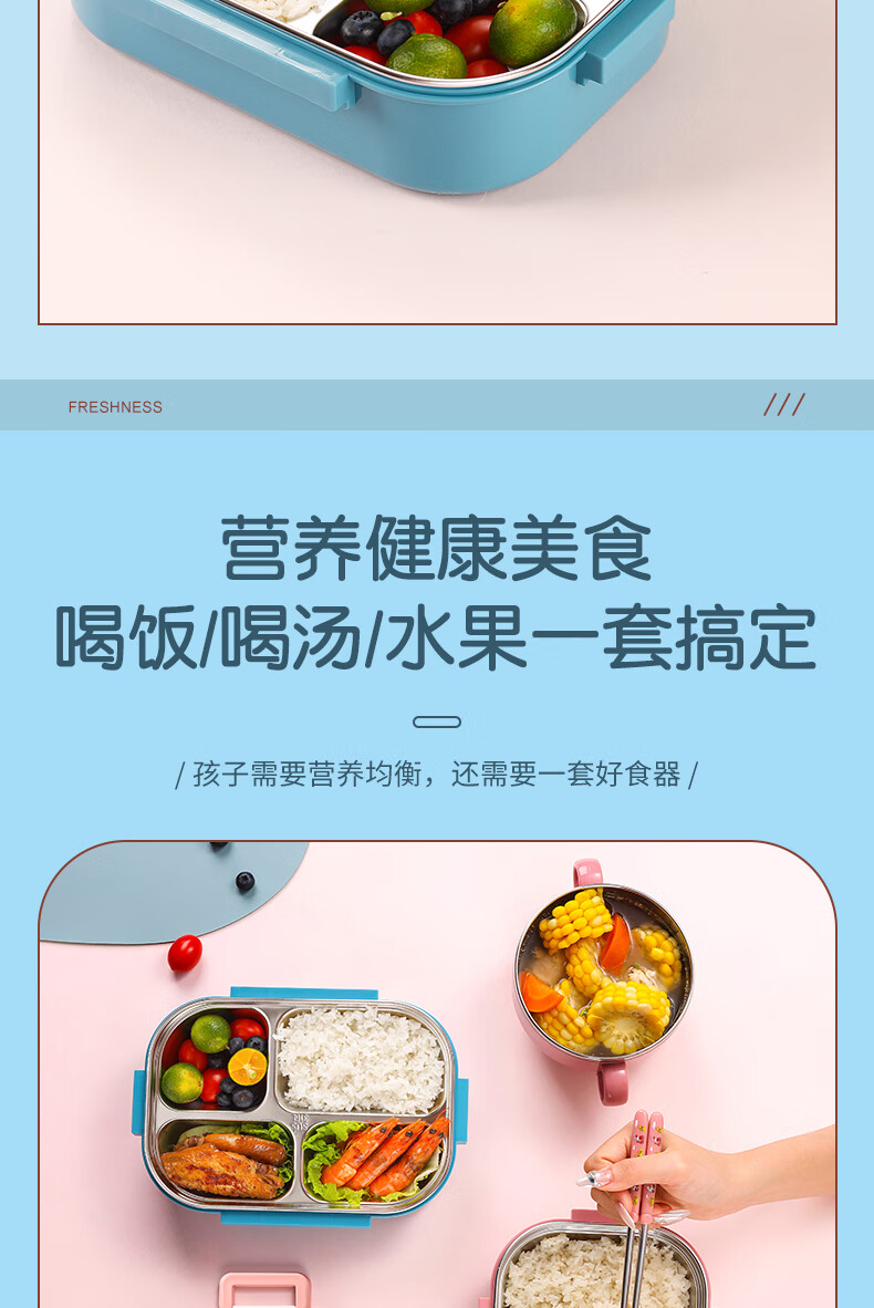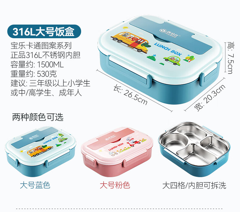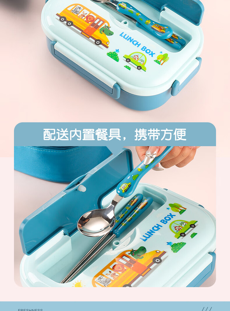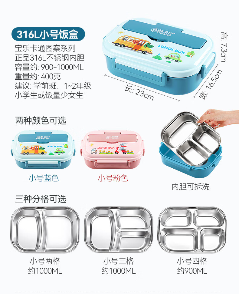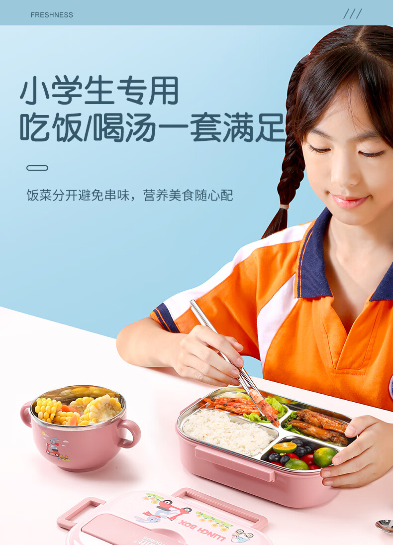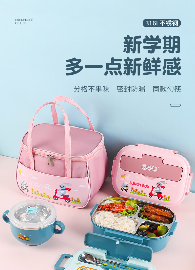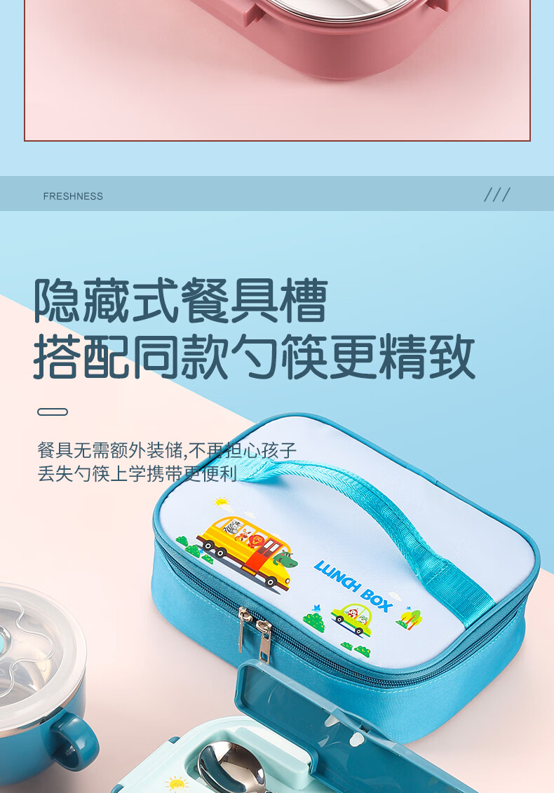 Tuojin German imported high-quality lunch box for primary school students, 316 stainless steel children's insulated lunch box for first grade boys, real 316 large size, four grandi blue school B