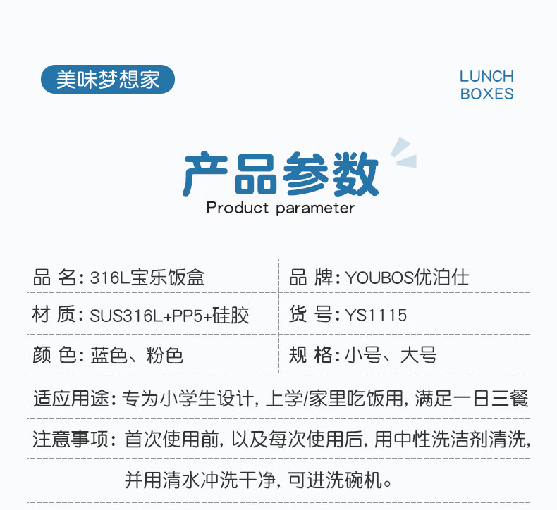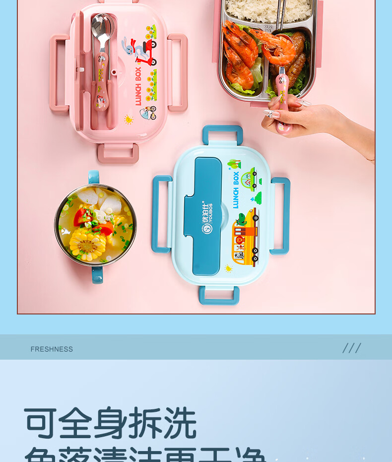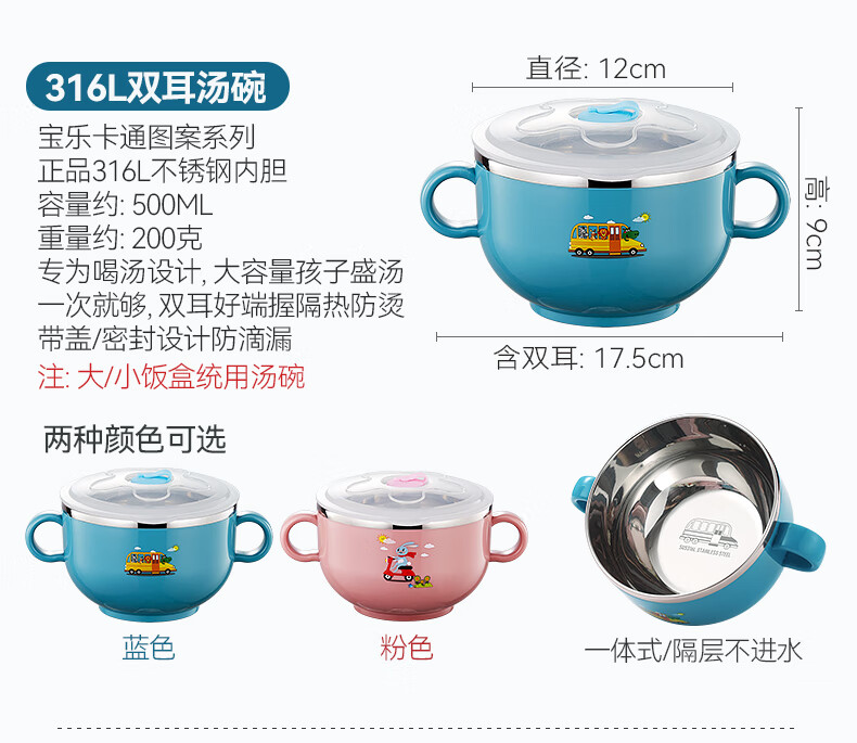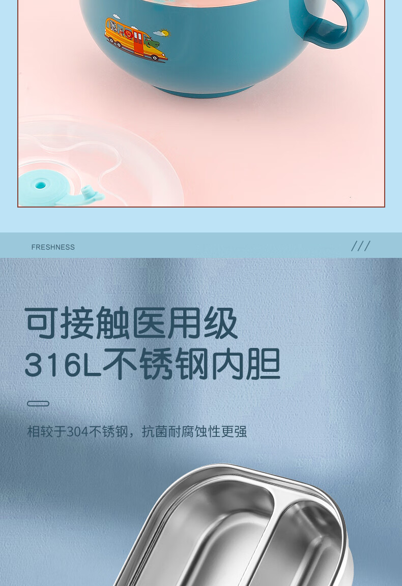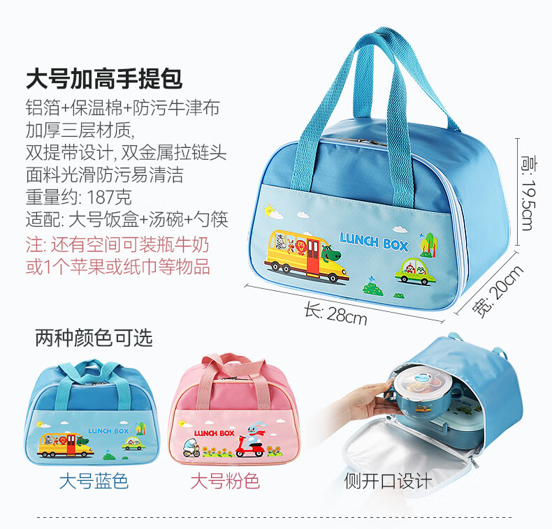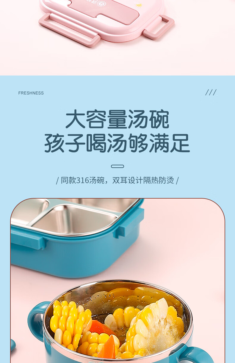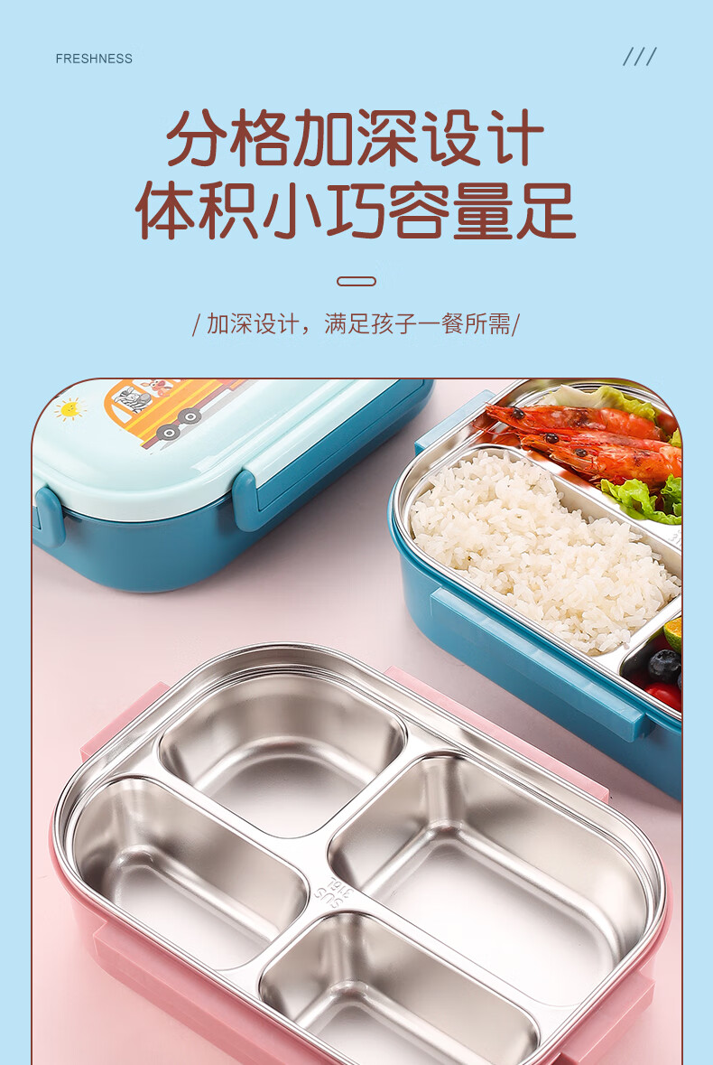 Tuojin German imported high-quality lunch box for primary school students, 316 stainless steel children's insulated lunch box for first grade boys, real 316 large size, four grandi blue school B