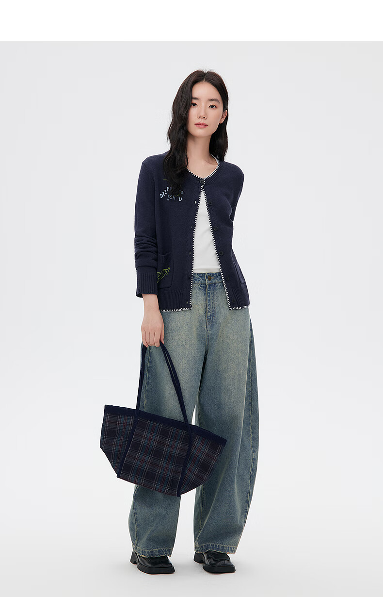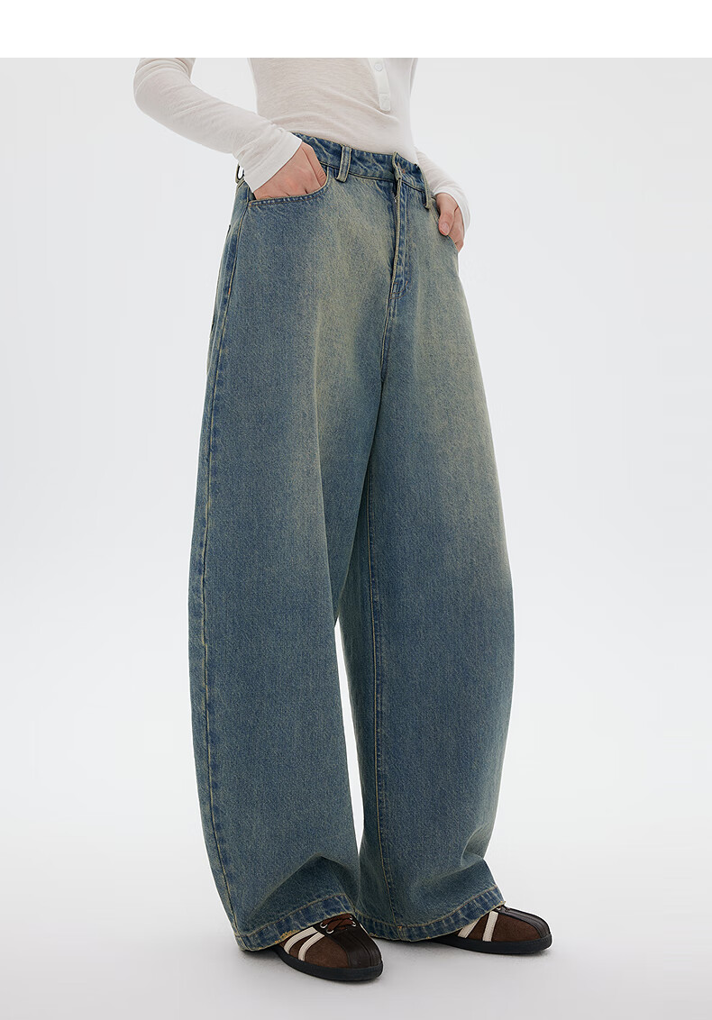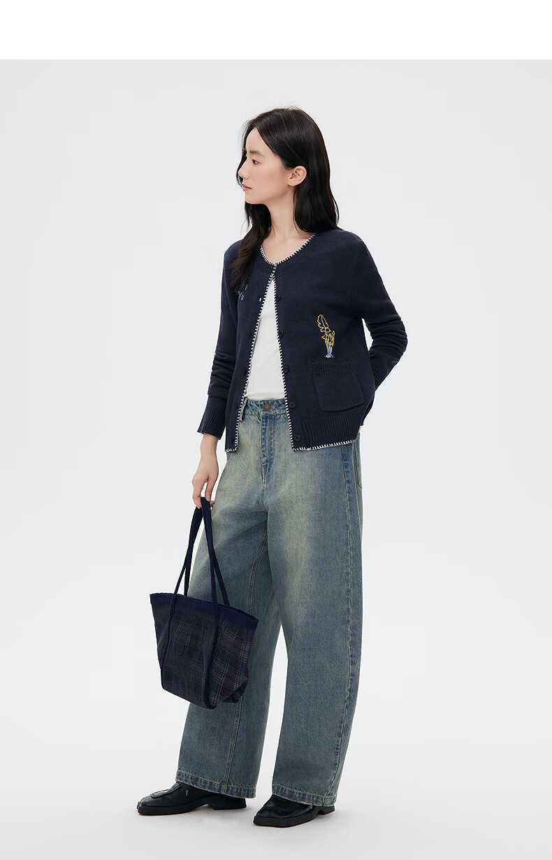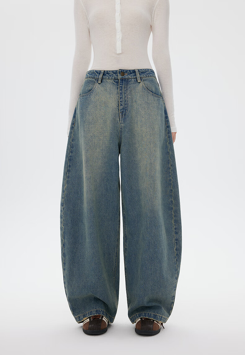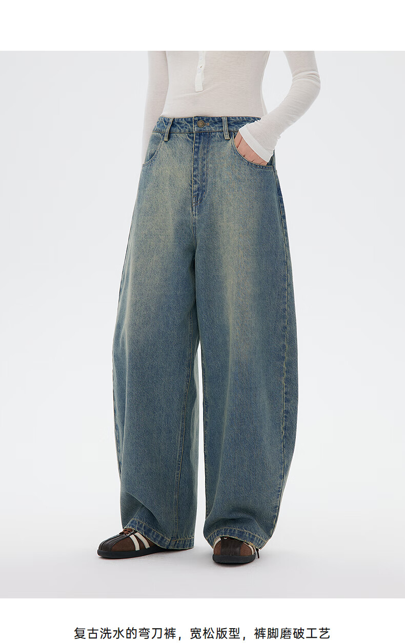 Asuka and New Wine Loose High Waist Jeans for Small Women 2025 Autumn New Casual Slim Scimitar Pants Indigo HCH07 M