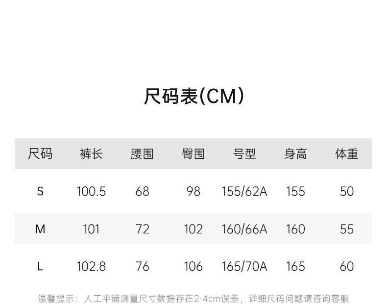 Outseam (cm) 99 cm 101.5 cm 104 cm 106.5 cm 109 cm