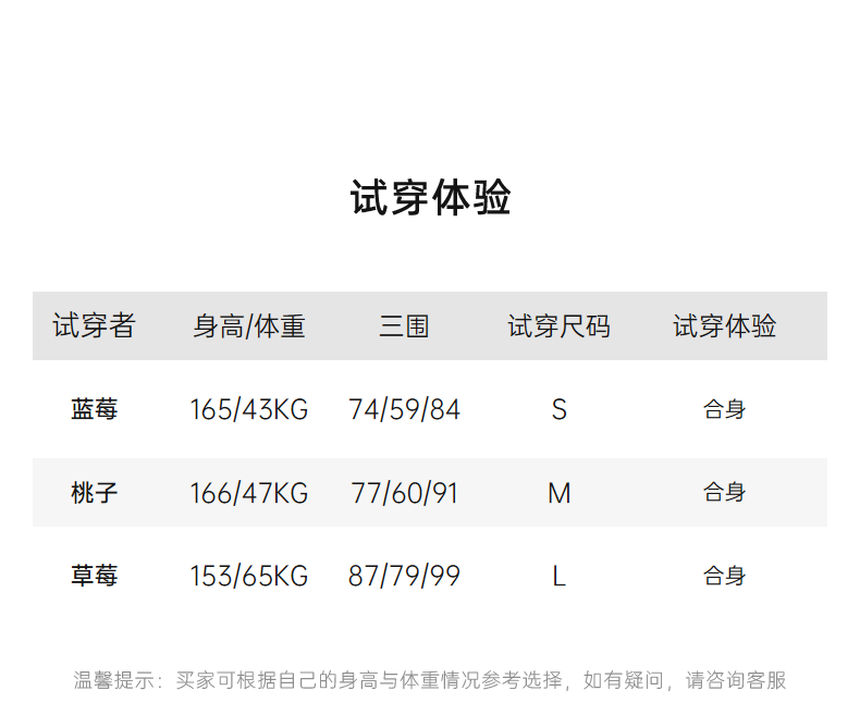 China (cm) 160-165/84-86 165-170 / 88-90 167-172 / 92-96 168-173 / 98-102 170-176 / 106-110