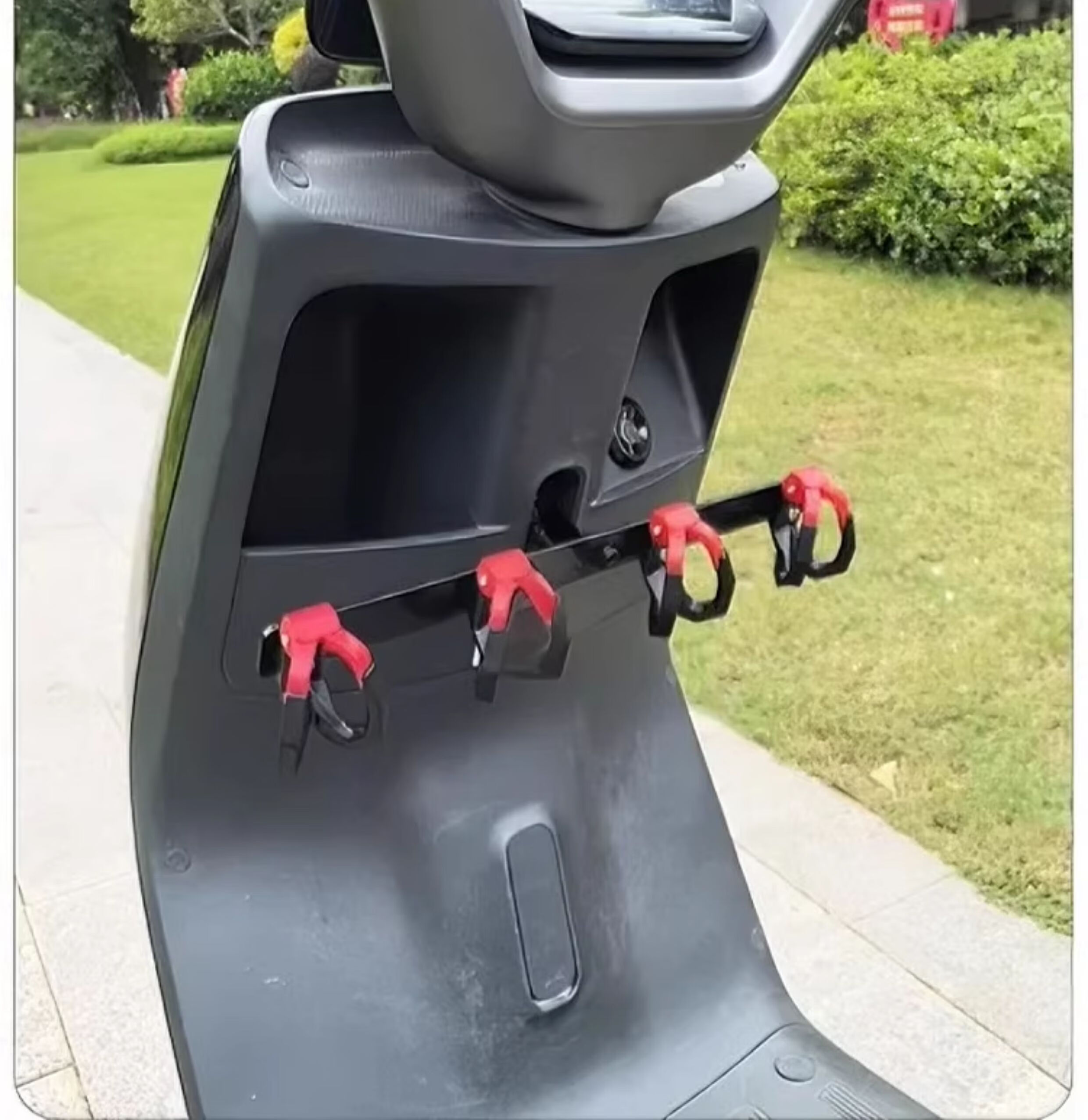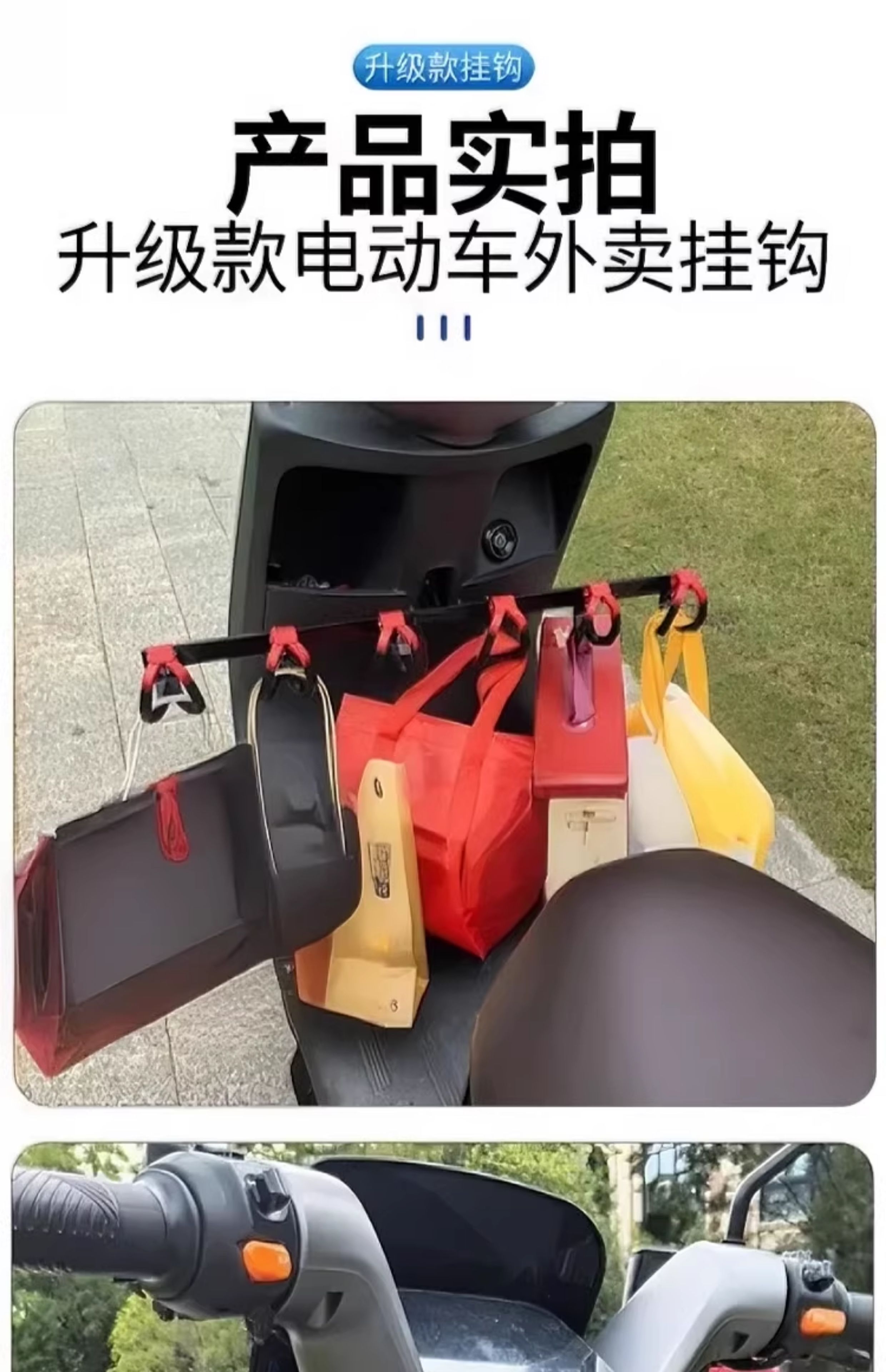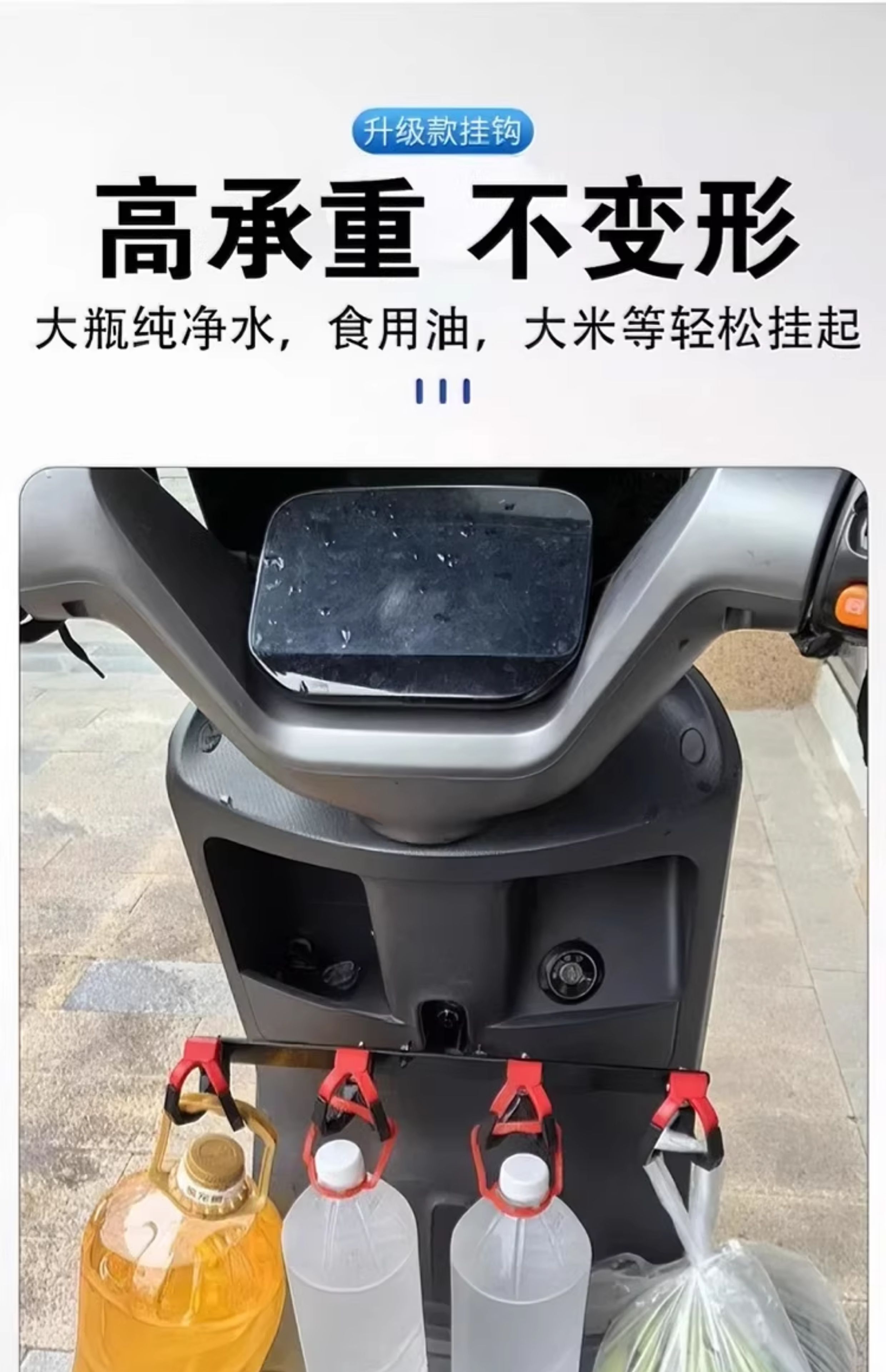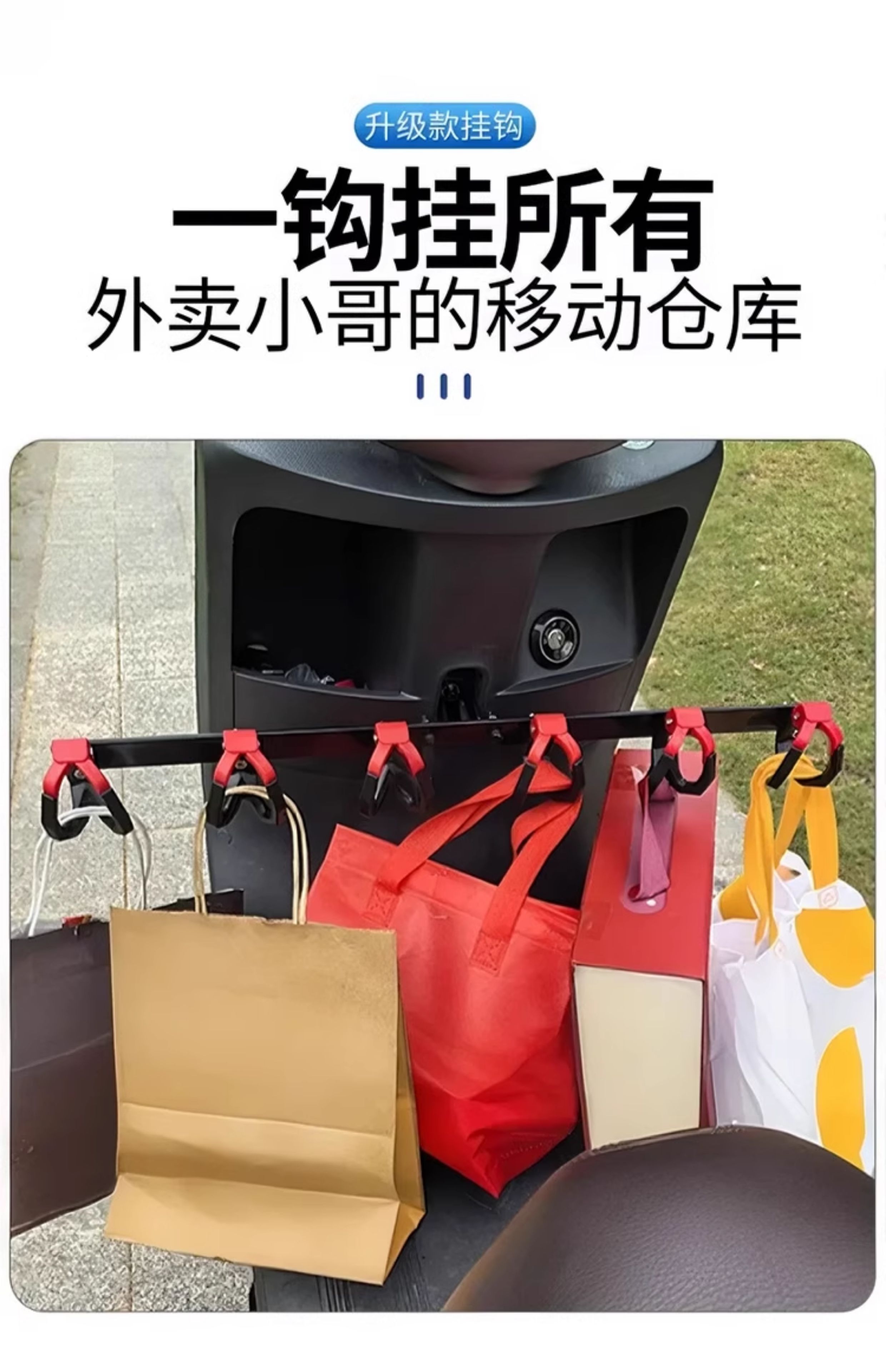 Crossbar Hook Electric Vehicle Hook Front Universal Battery Motorcycle Hook Takeaway Goods Rider Powerful Meal Hook Upgraded Anti-Shedding Black and Red - 4 Double Hooks + Crossbar + Tools