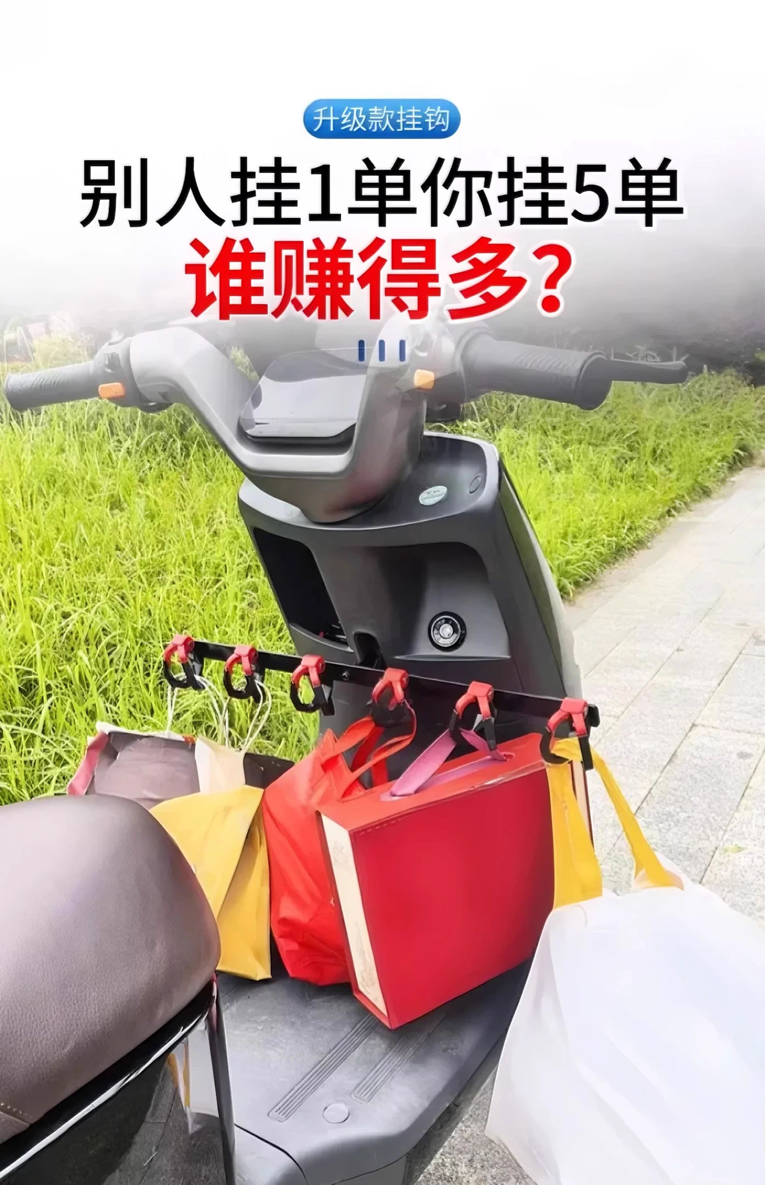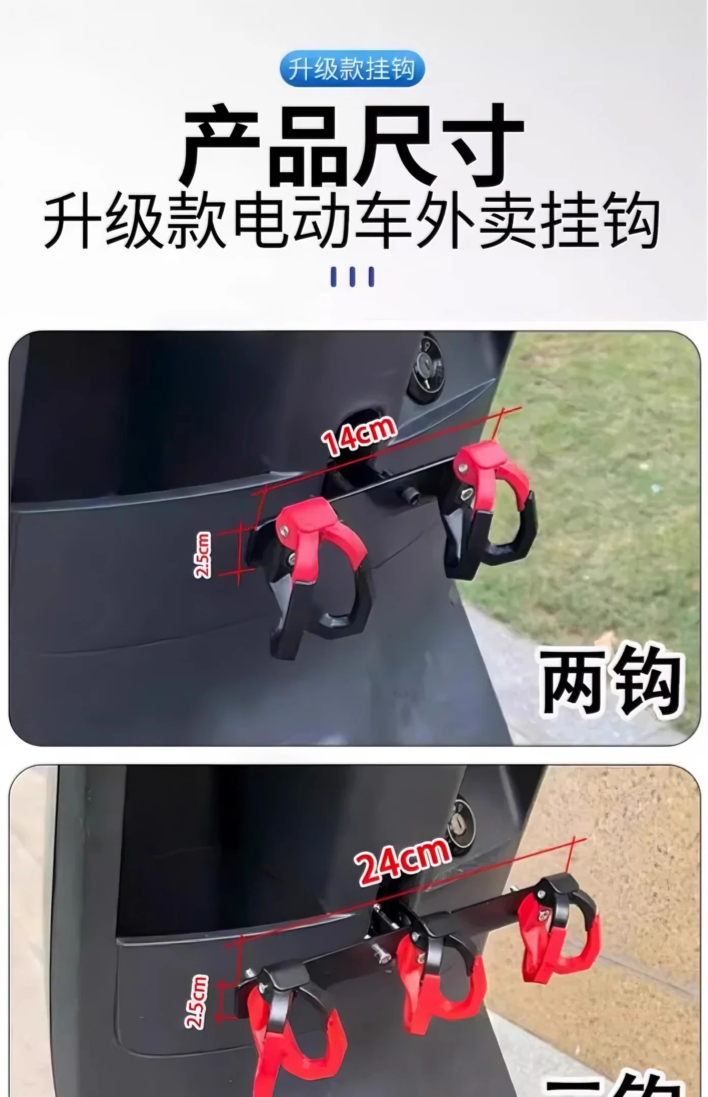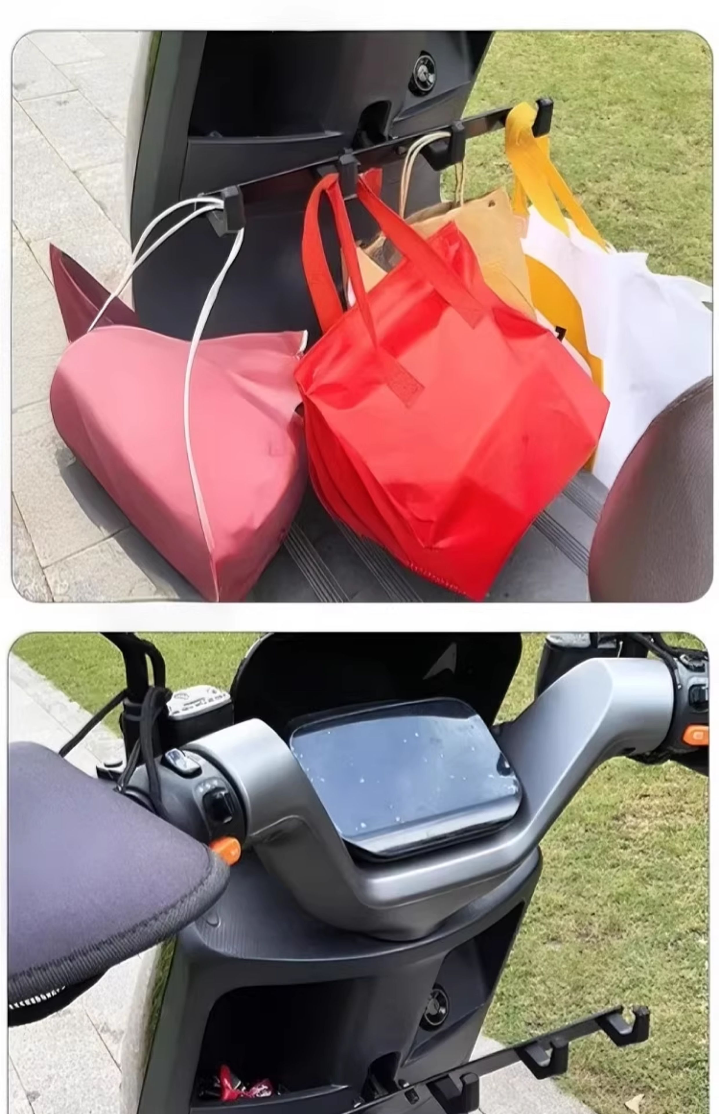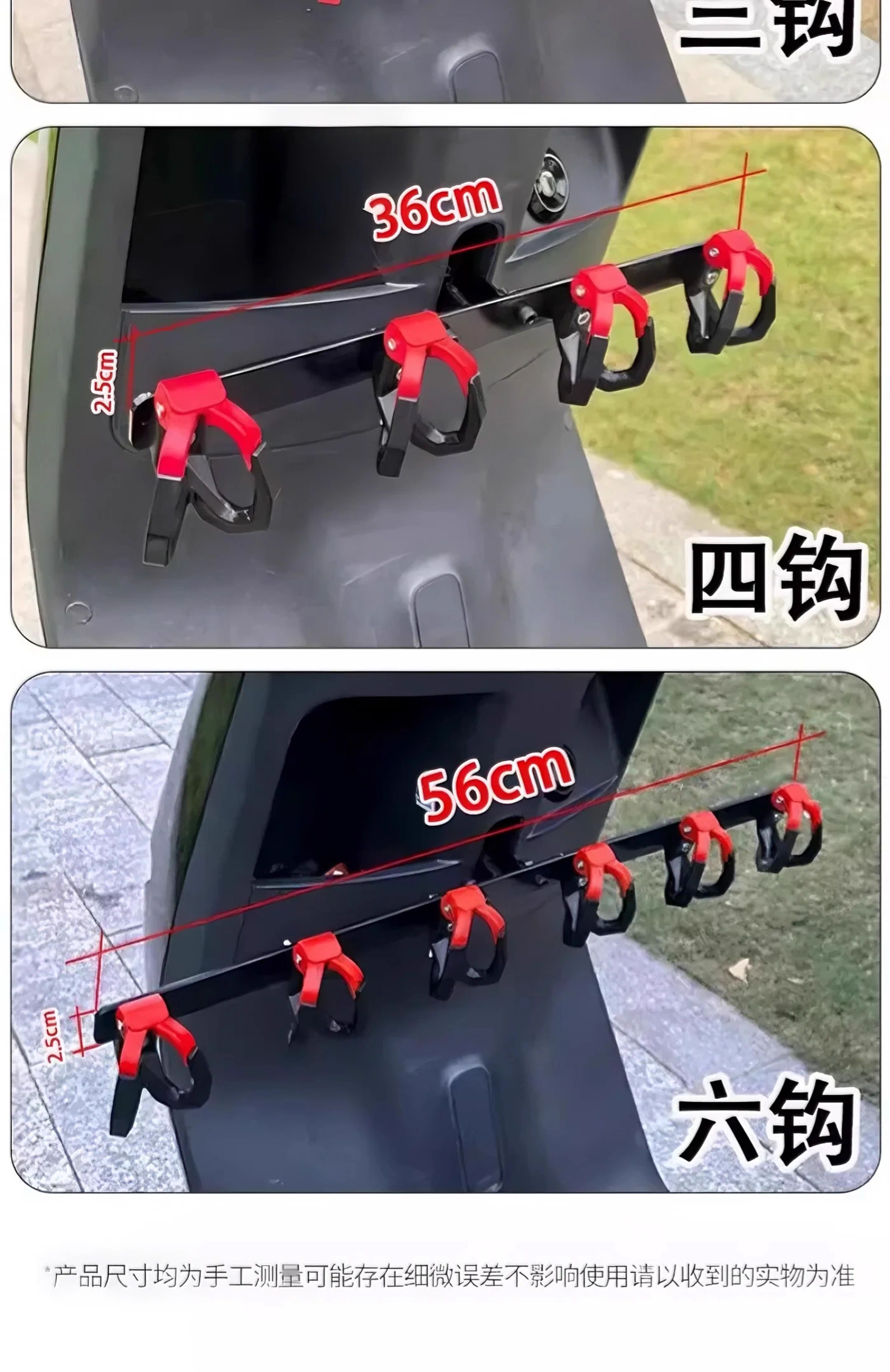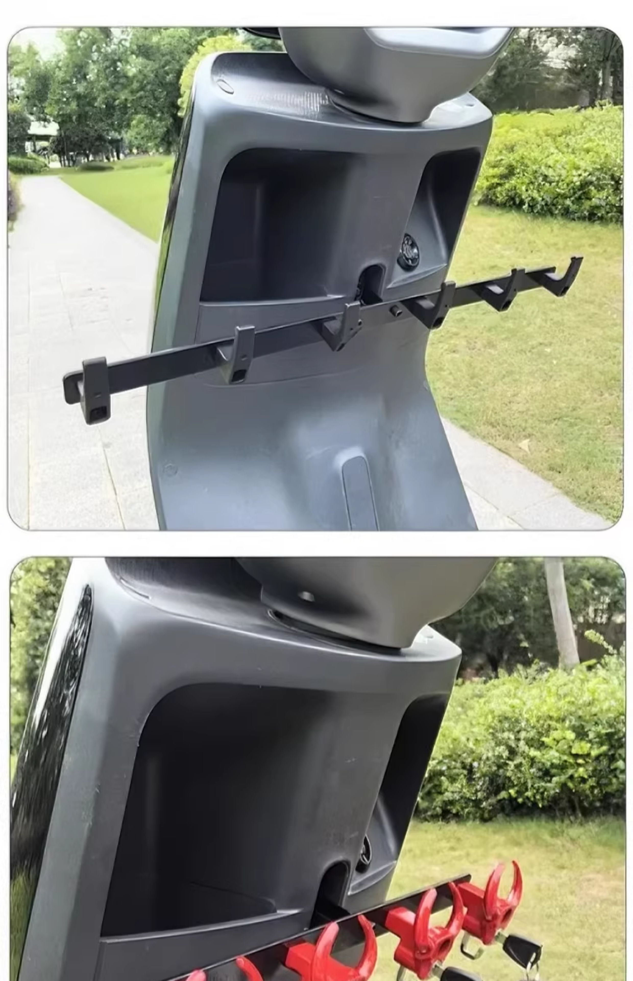 Crossbar Hook Electric Vehicle Hook Front Universal Battery Motorcycle Hook Takeaway Goods Rider Powerful Meal Hook Upgraded Anti-Shedding Black and Red - 4 Double Hooks + Crossbar + Tools