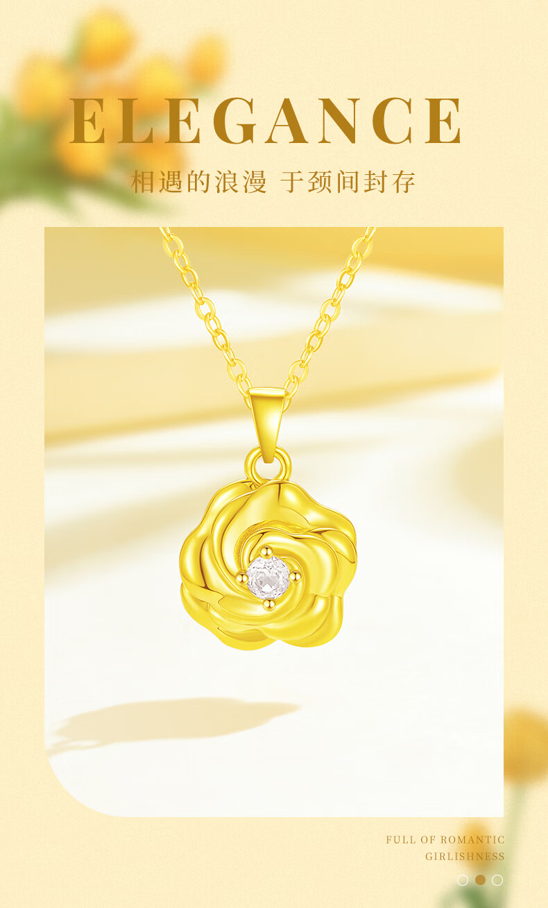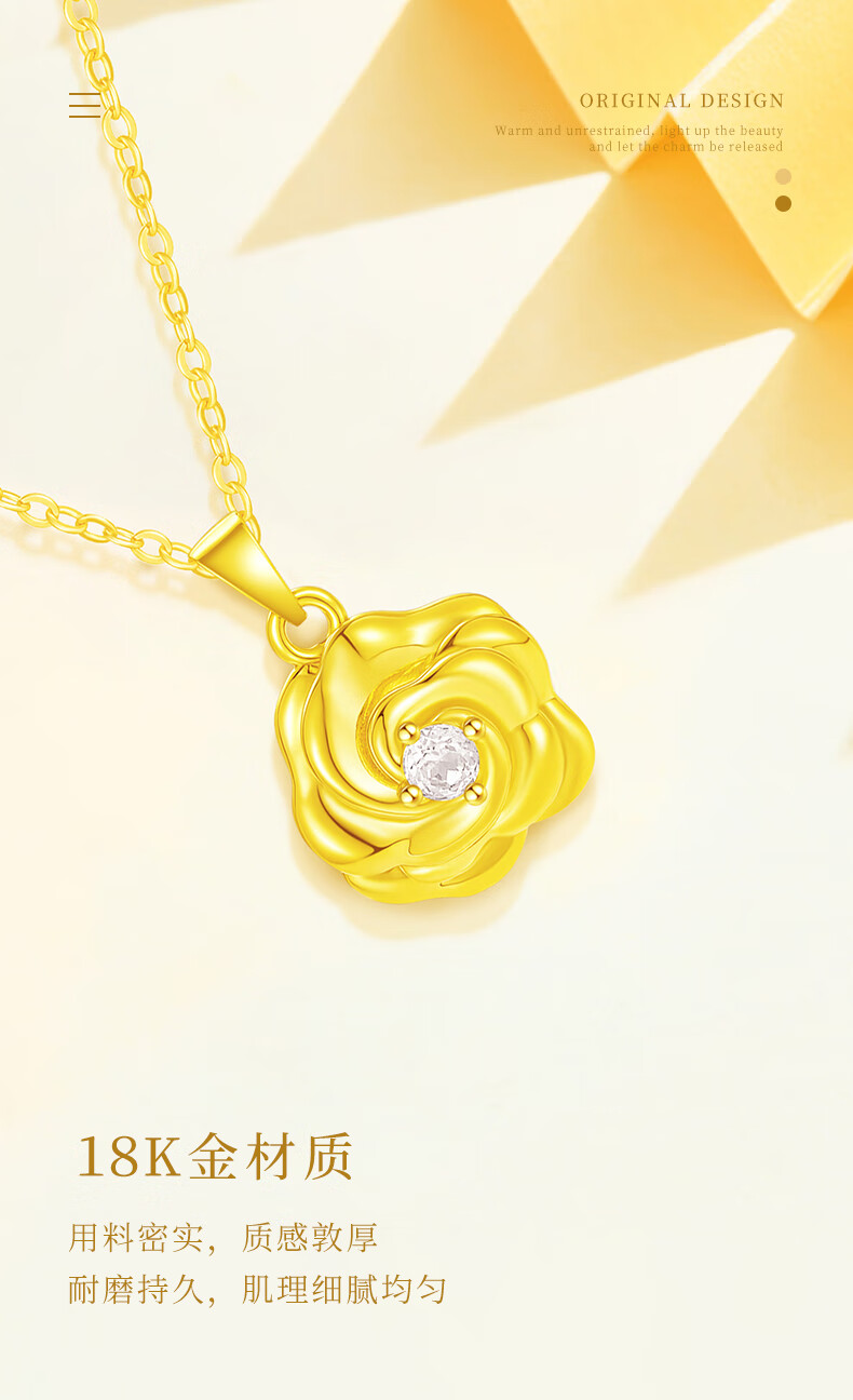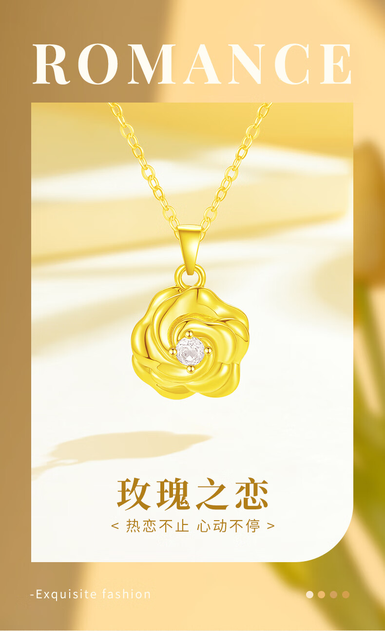 CHINA GOLD 18K gold rose pendant women's inlaid flower necklace Valentine's Day birthday gift for girlfriend and wife 18k gold rose pendant free silver chain about 0.6g + rose gift box