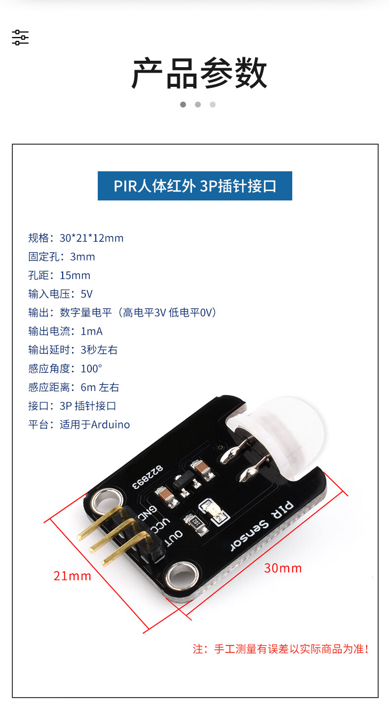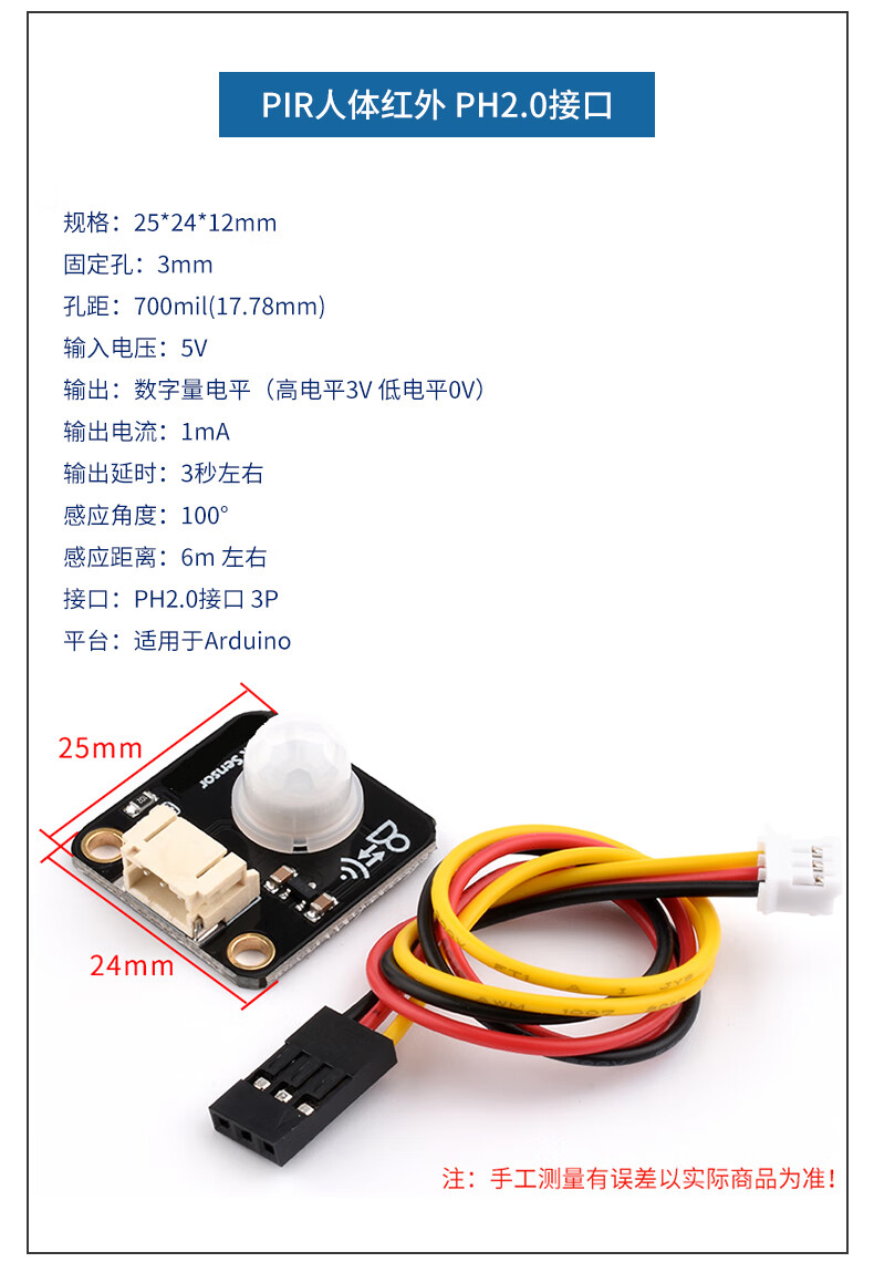 PIR human body infrared sensing electronic module sensor pyroelectric induction switch is suitable for Arduino PIR human body infrared 3P pin interface without Specifications