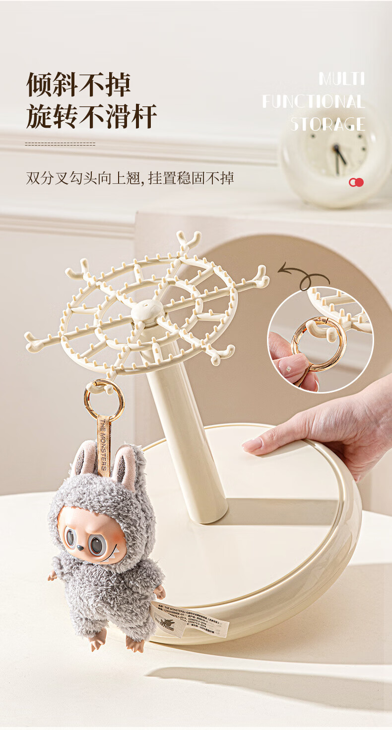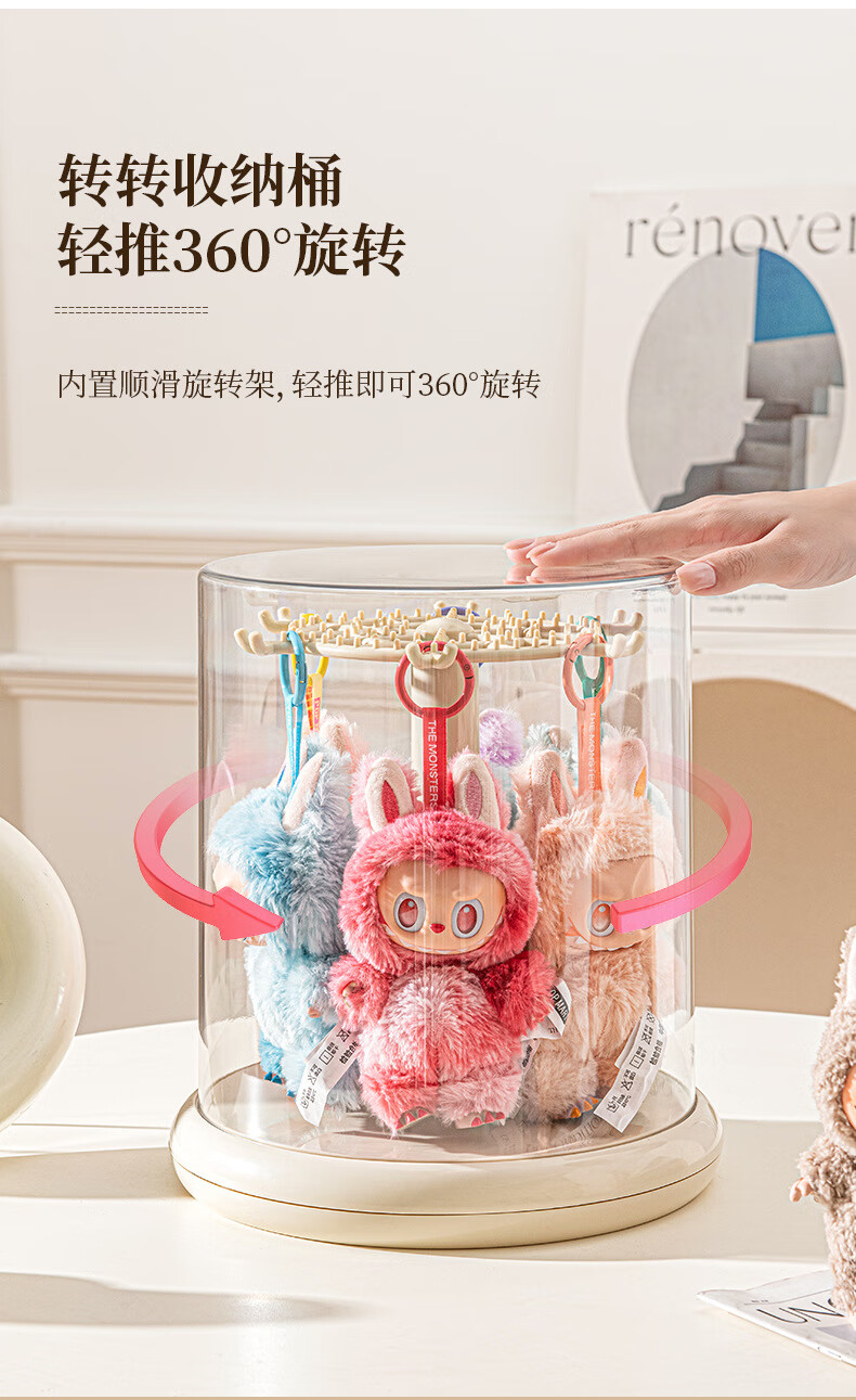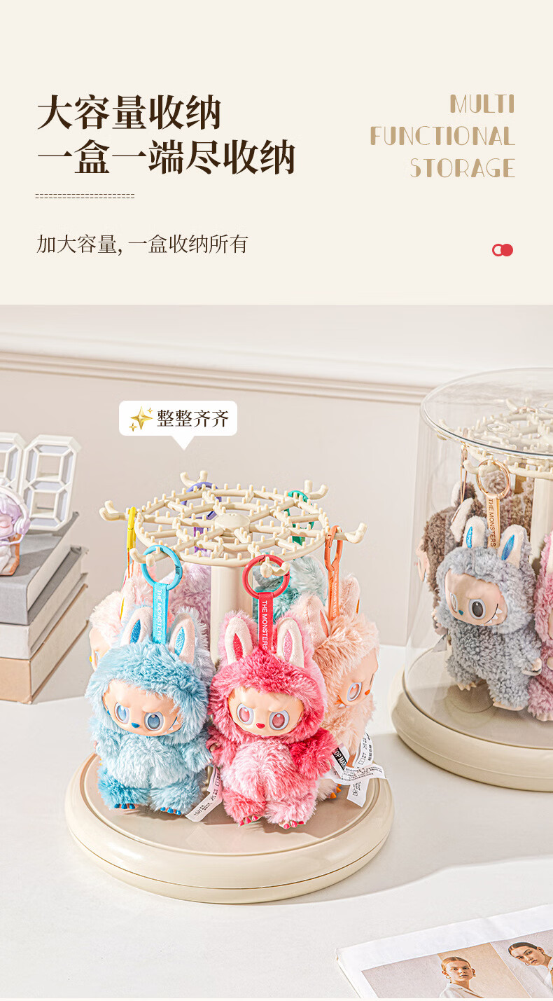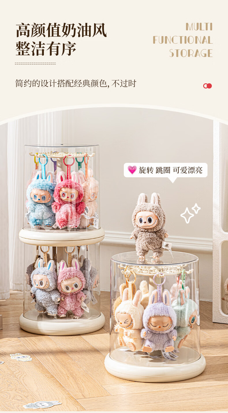 Manle rabbit labubu pendant display box rotating transparent labubu plush doll doll hand blind box storage display stand milk white hanging labubu display box no installation required out of the box