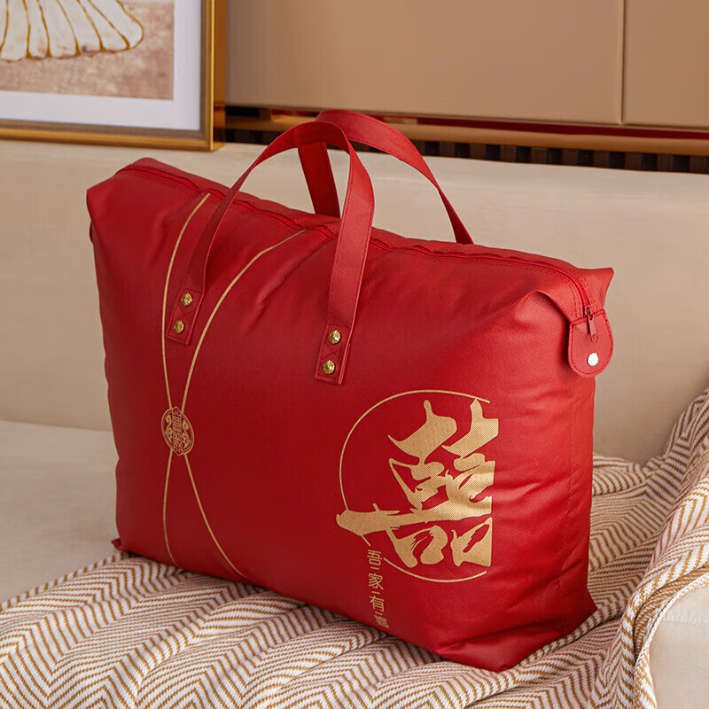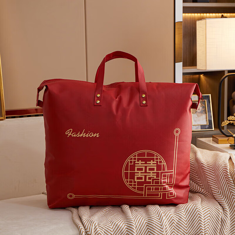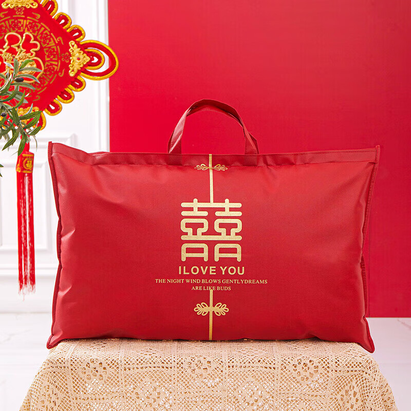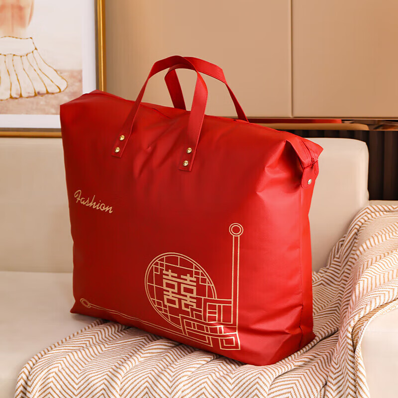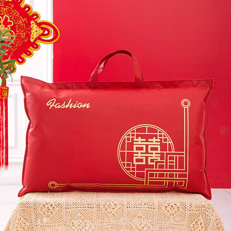 Pu Lian wedding quilt packaging bag thickened dustproof four-piece set handbag wedding quilt storage bag organizing moving bag red non-woven red-Xi word window 48*58 small size summer quilt/four-piece set