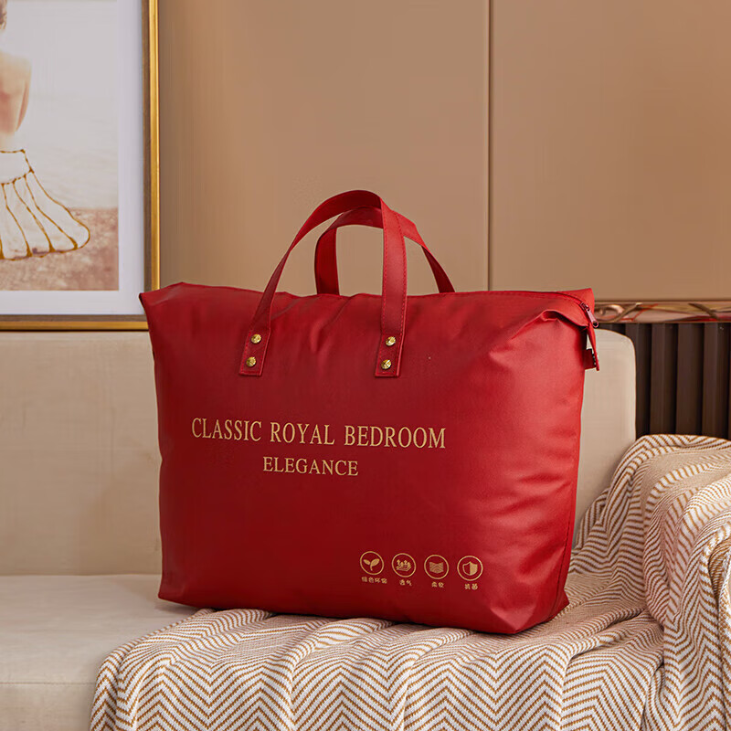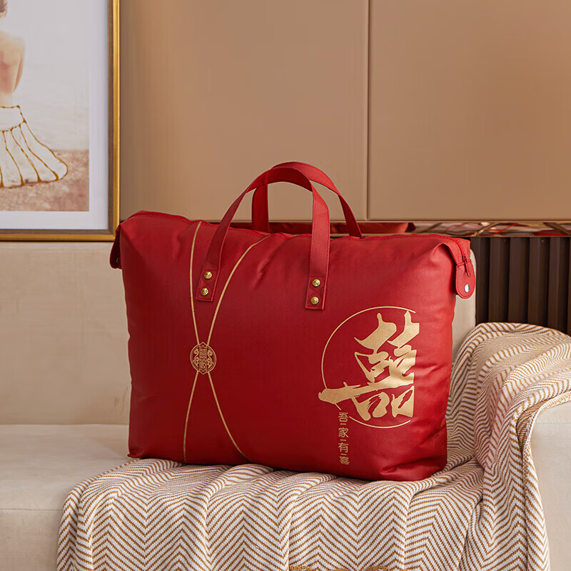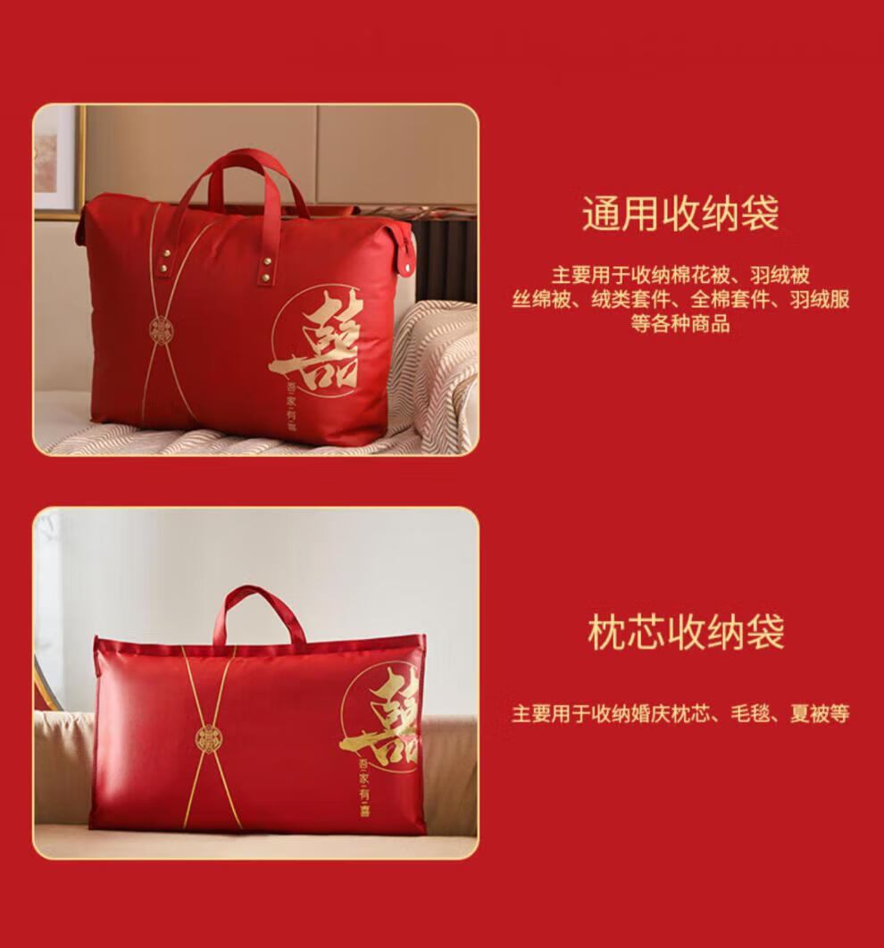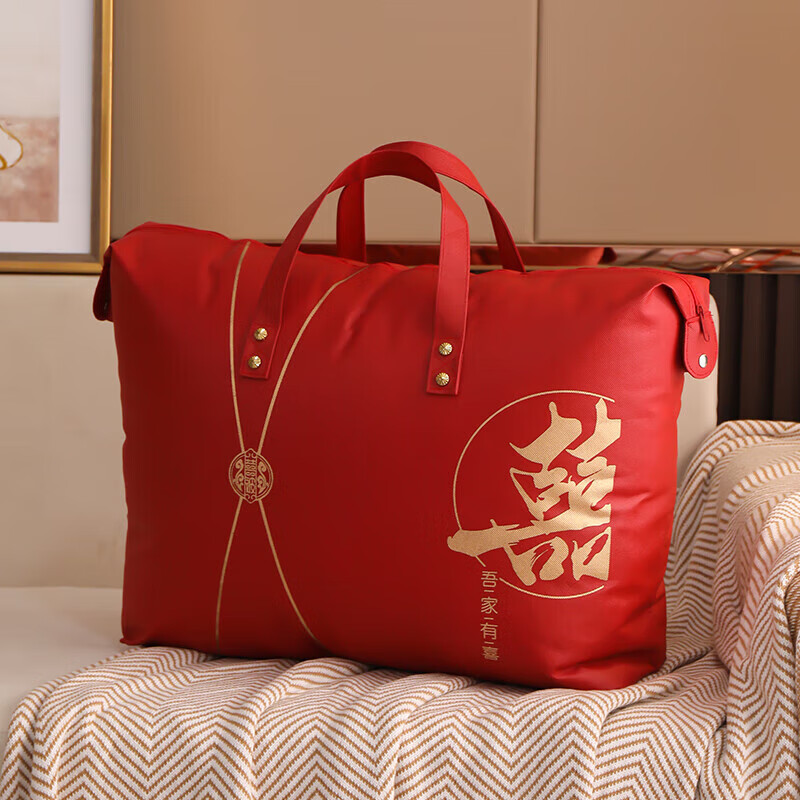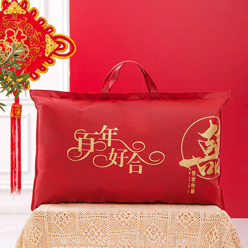 Pu Lian wedding quilt packaging bag thickened dustproof four-piece set handbag wedding quilt storage bag organizing moving bag red non-woven red-Xi word window 48*58 small size summer quilt/four-piece set