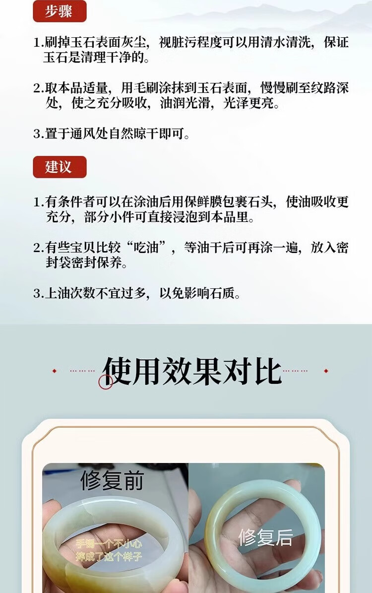 Jade Bracelet Crack Repair Fluid Jadeite Hetian Jade Bracelet Broken Traceless Repair Brightening Hydrating Care Oil 1 Bottle