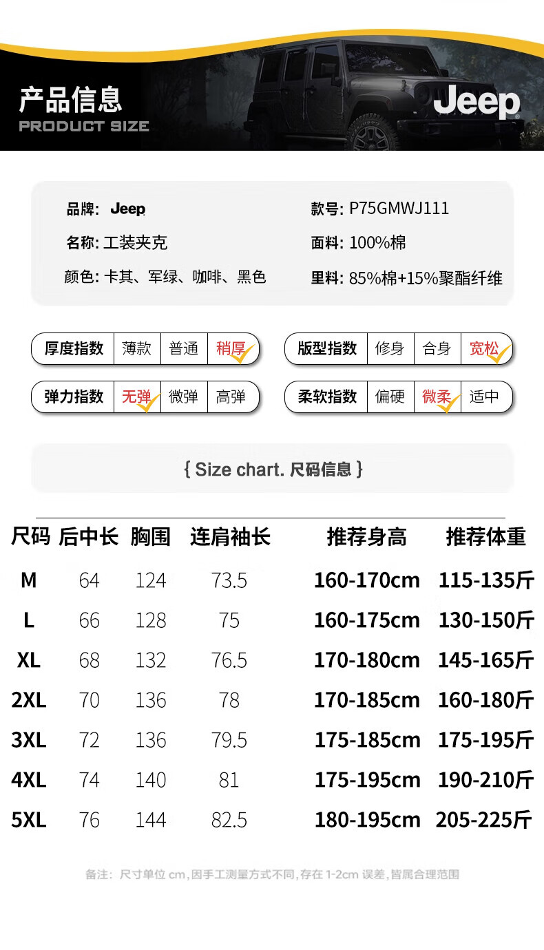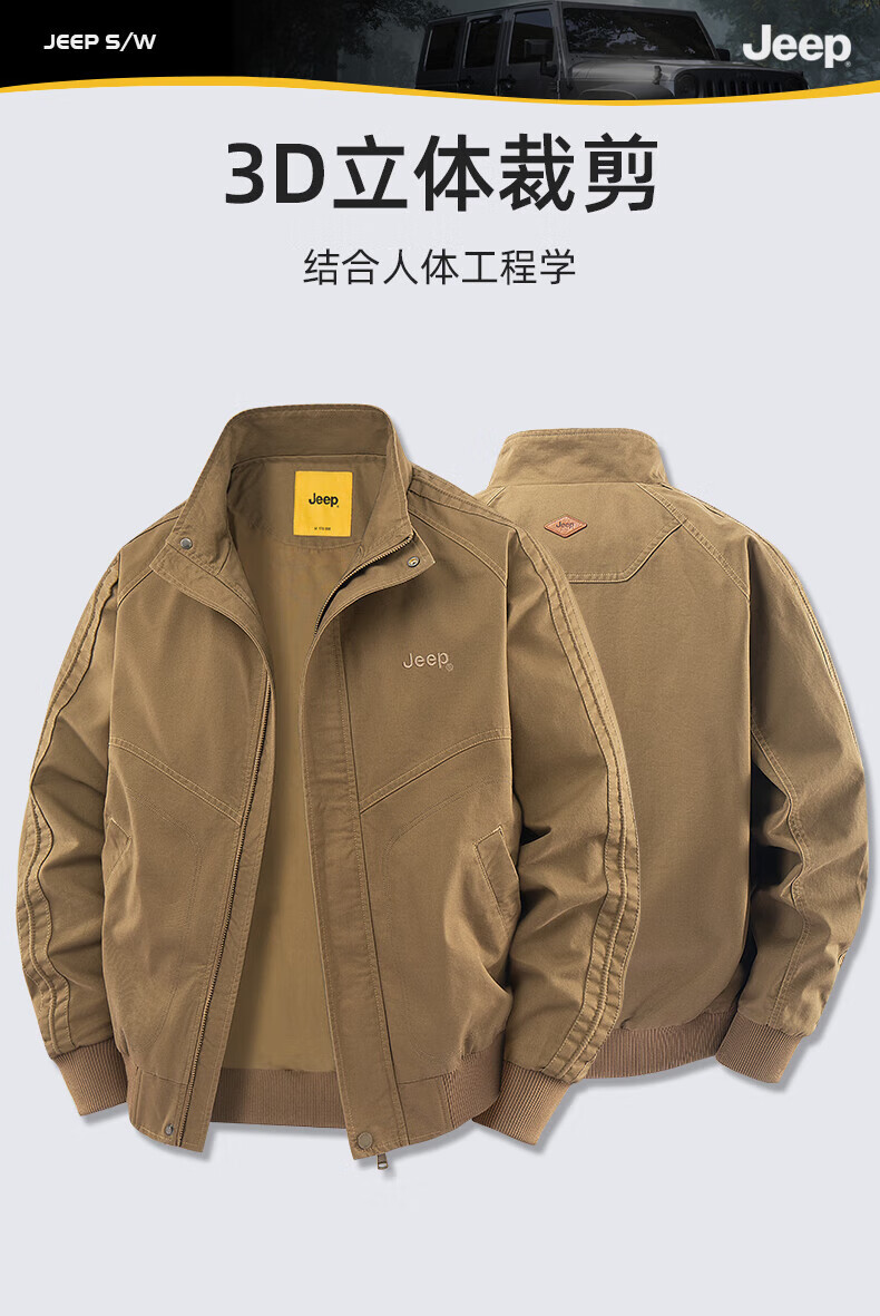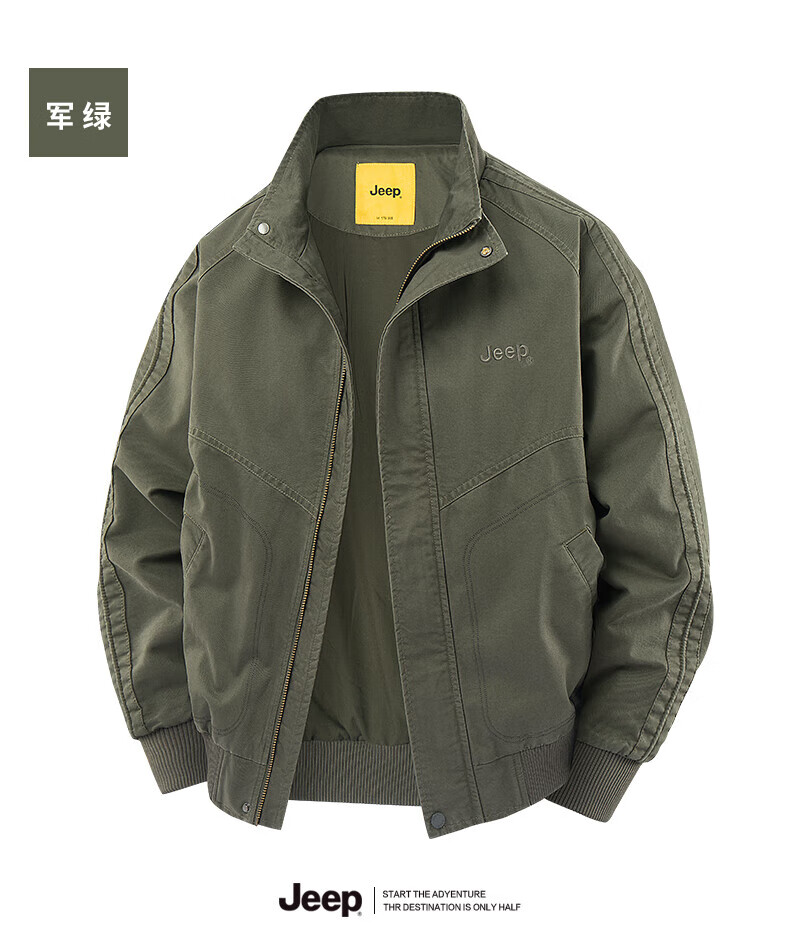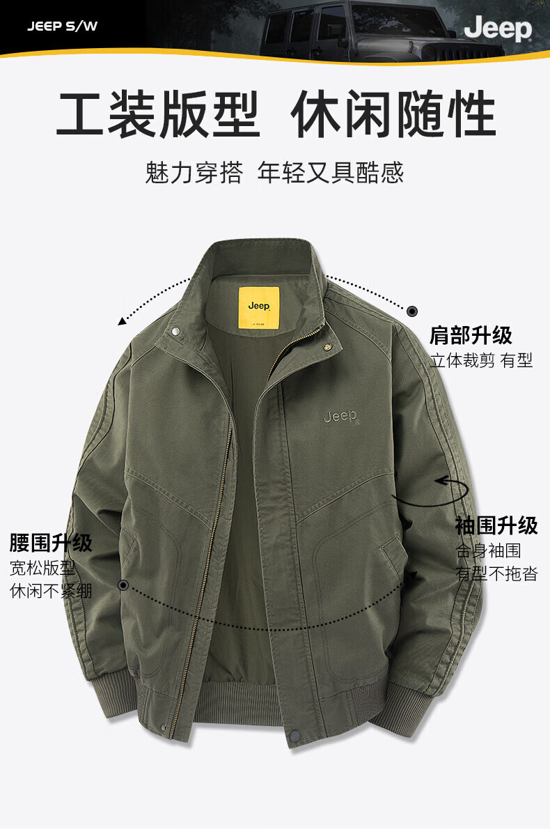 Jeep (JEEP) American genuine American cotton work jacket top men's spring and autumn trendy brand assault flying windbreaker jacket autumn and winter black - stand collar regular shopping mall same style XL suitable for 145Jin Jin equals about 0.5kg