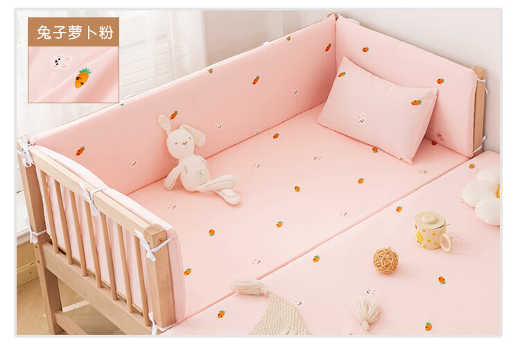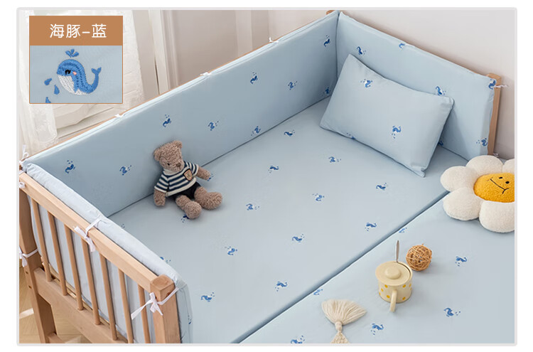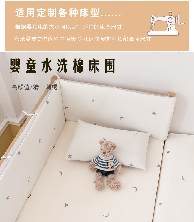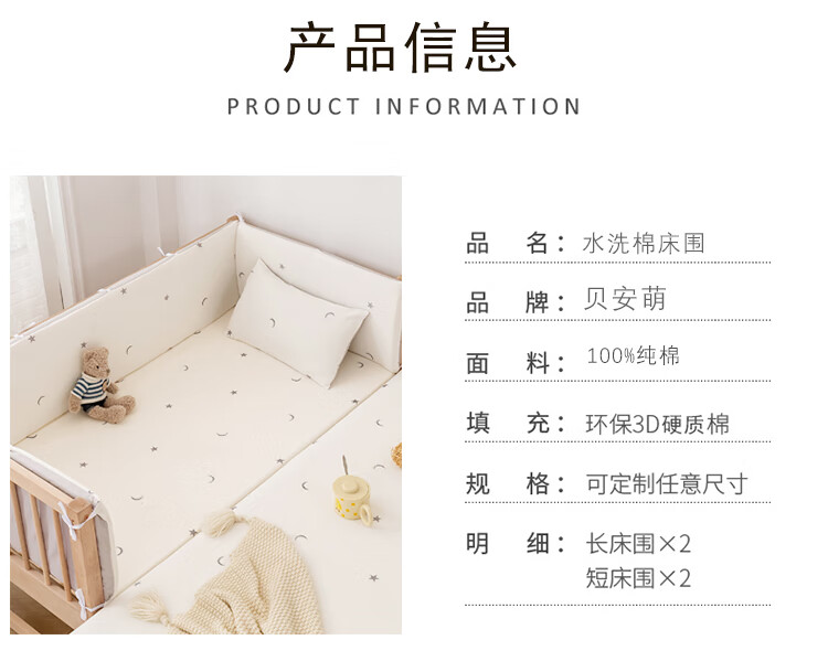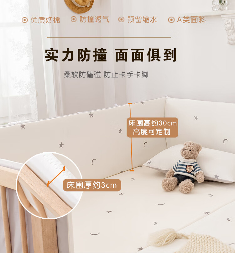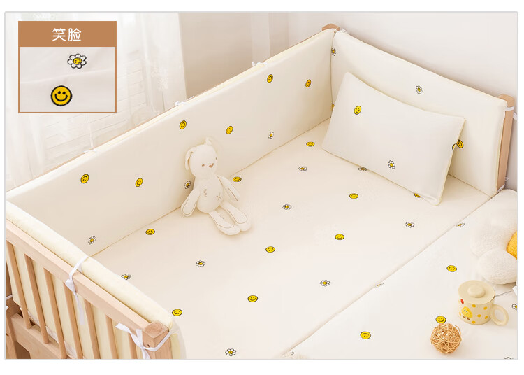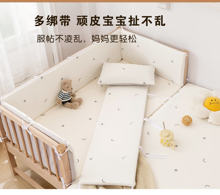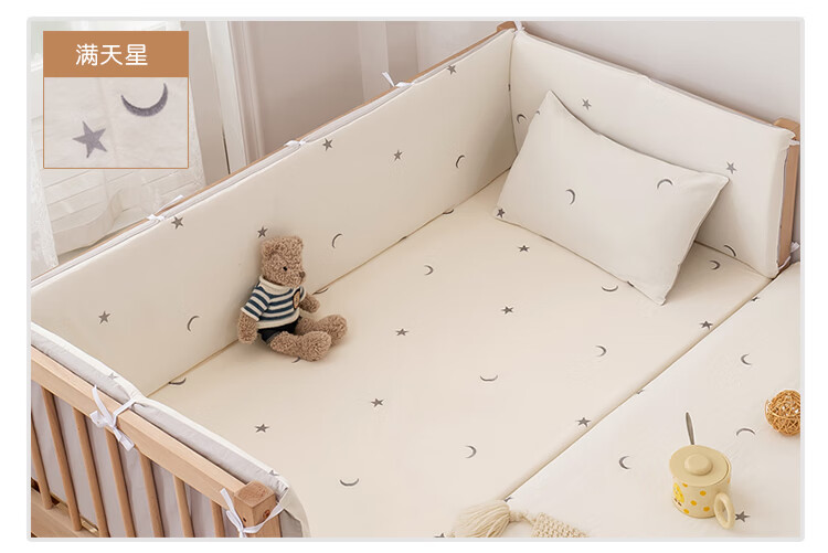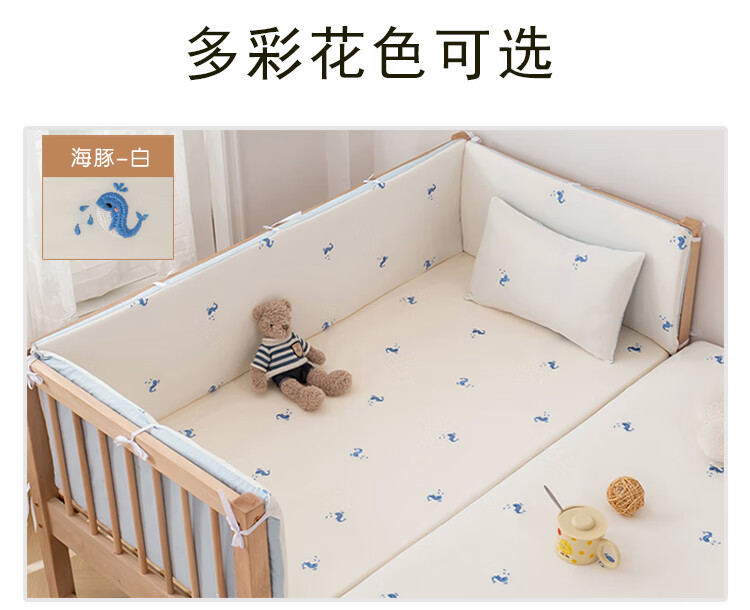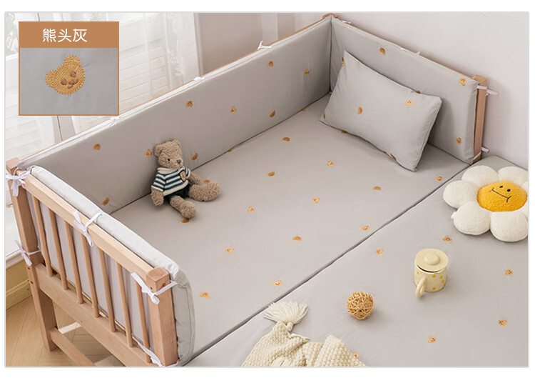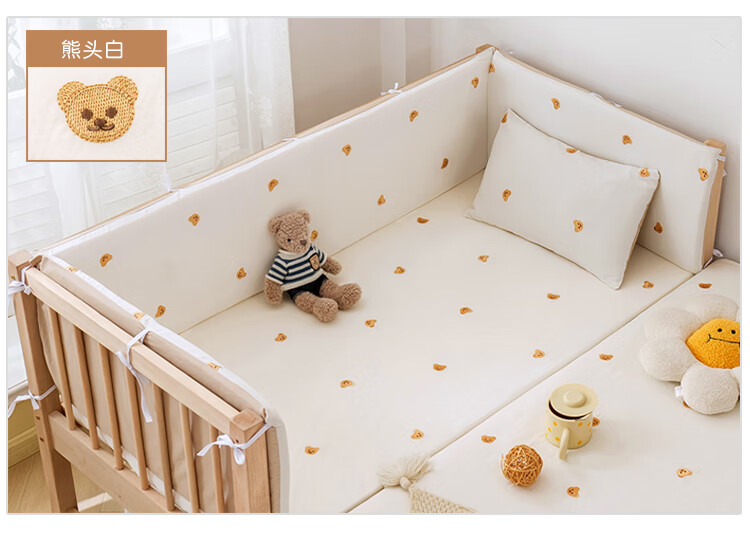 Sleepy Bear crib bed fence Class A soft-packed pure cotton children's spliced bed guardrail fence baby anti-collision fence cloth bedding washed cotton gypsophila 60*110cm (four-sided bed fence height 30)