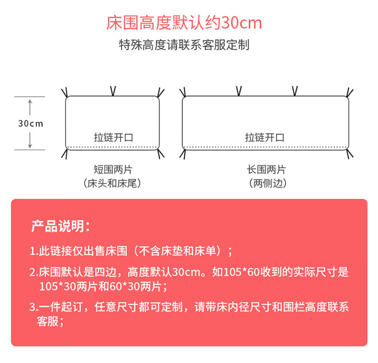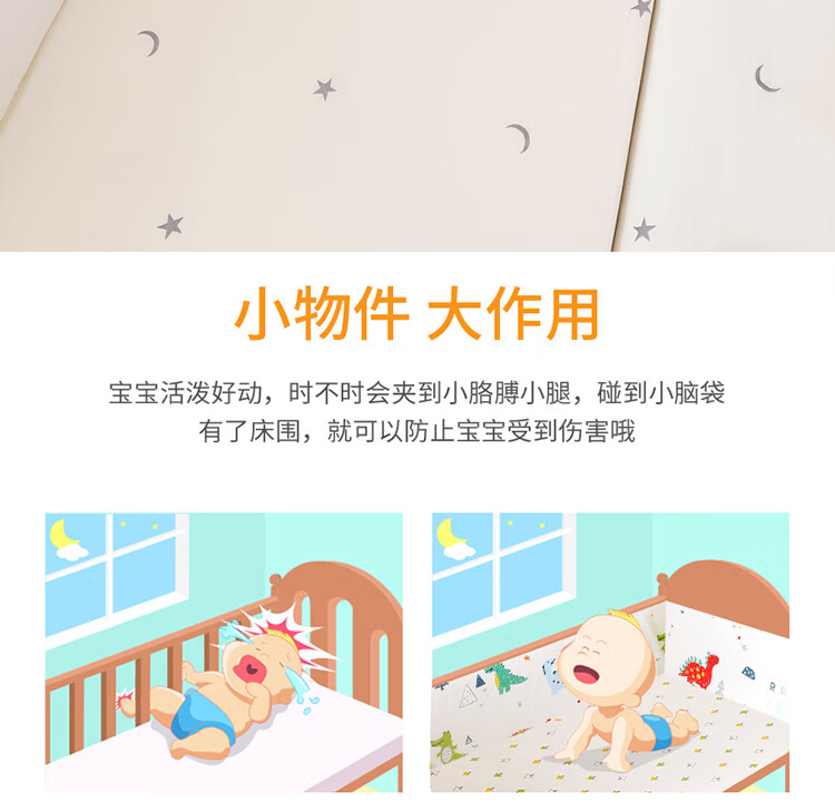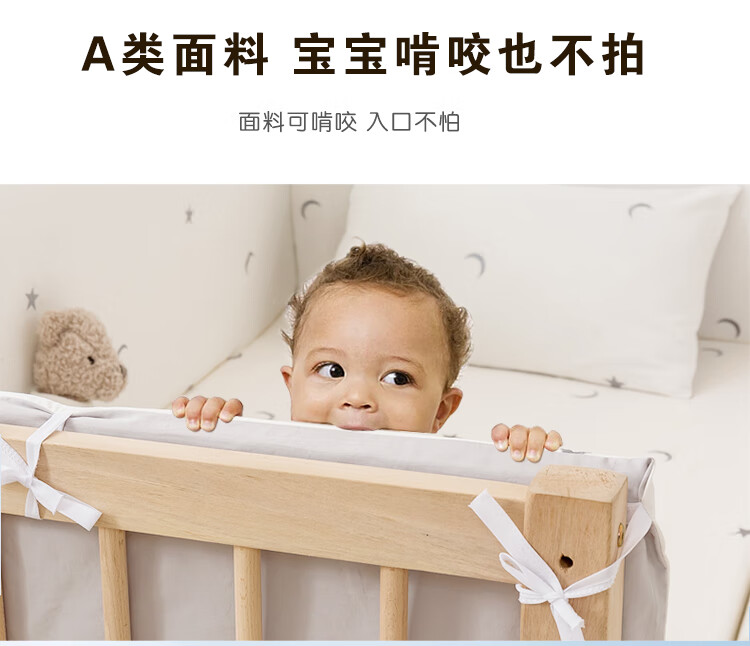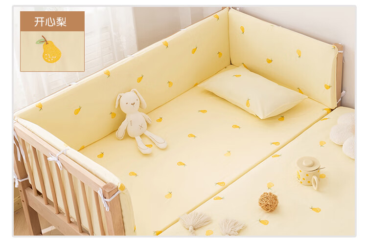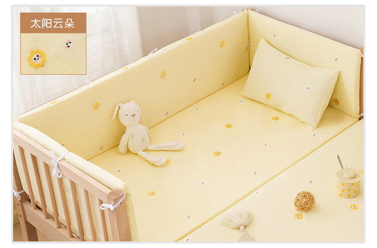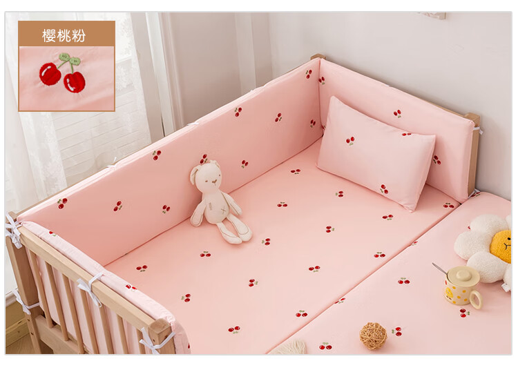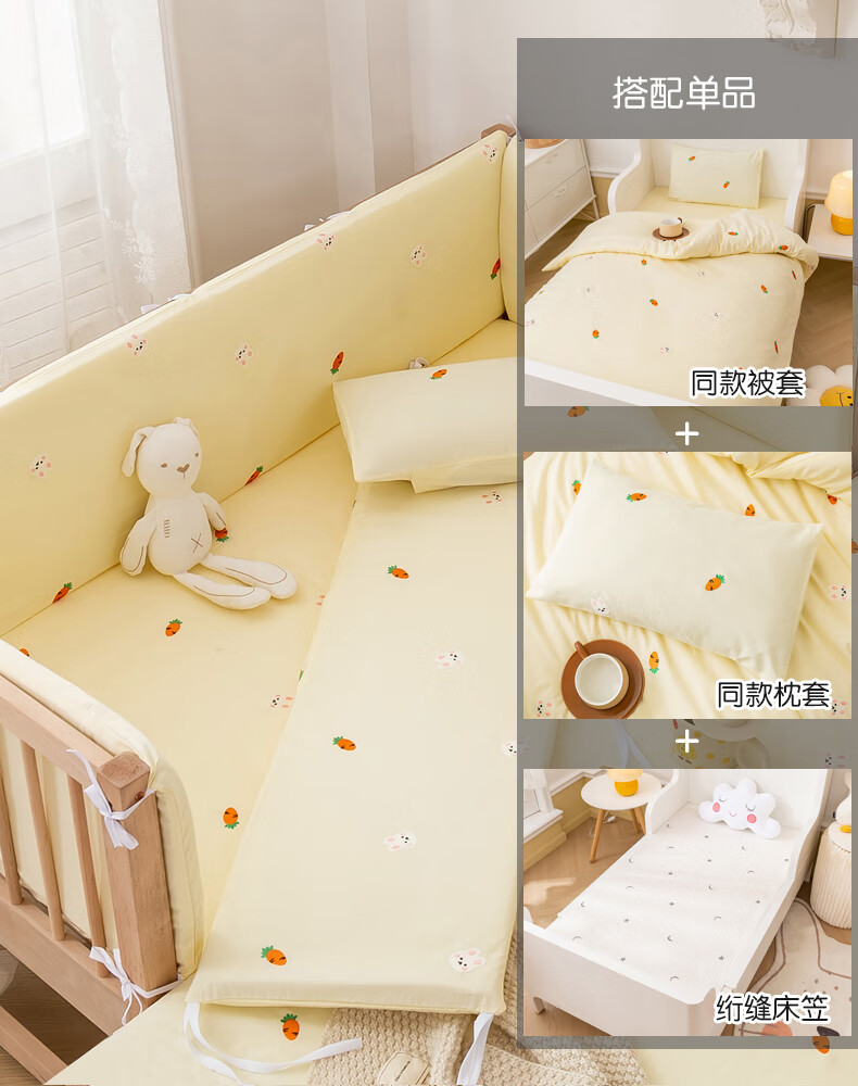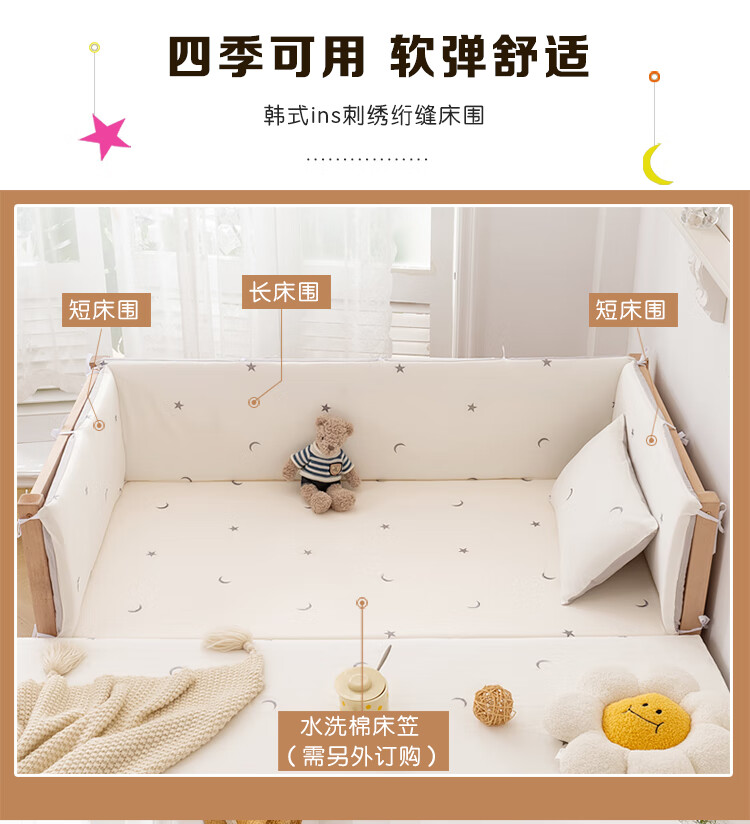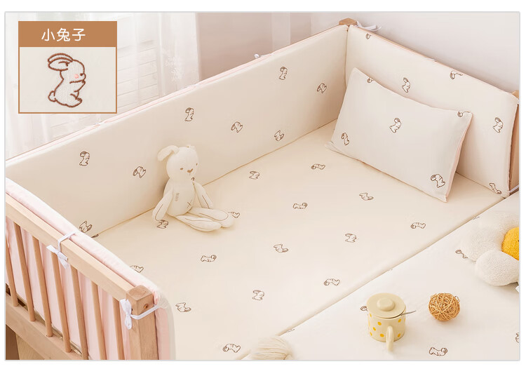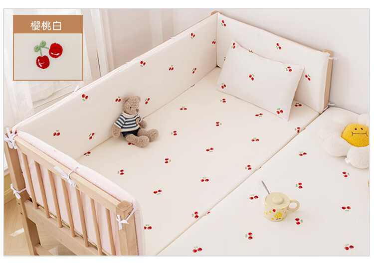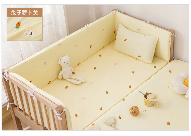 Sleepy Bear crib bed fence Class A soft-packed pure cotton children's spliced bed guardrail fence baby anti-collision fence cloth bedding washed cotton gypsophila 60*110cm (four-sided bed fence height 30)