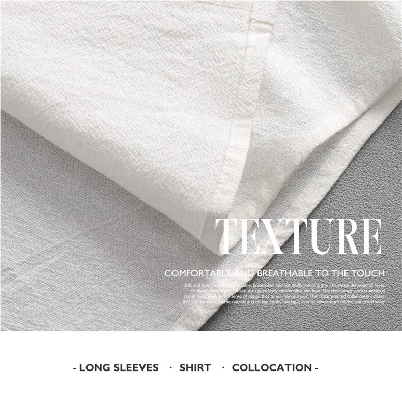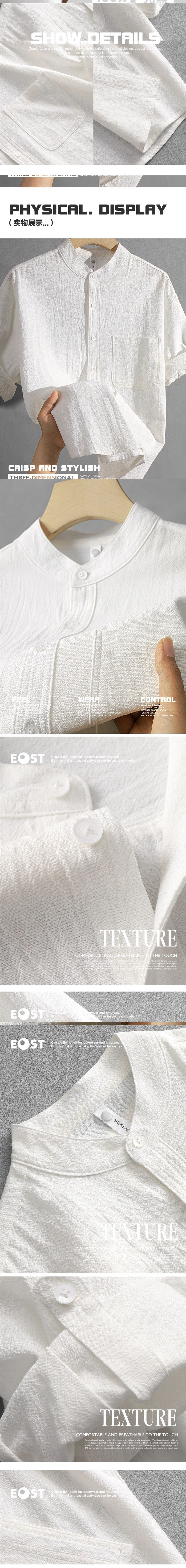 Men's stand collar white short-sleeved shirt men's Japanese cotton round neck three-quarter sleeve T-shirt Henry collar textured shirt C1061-white-long sleeve 3XL 145-155Jin Jin equals 0.5 kg