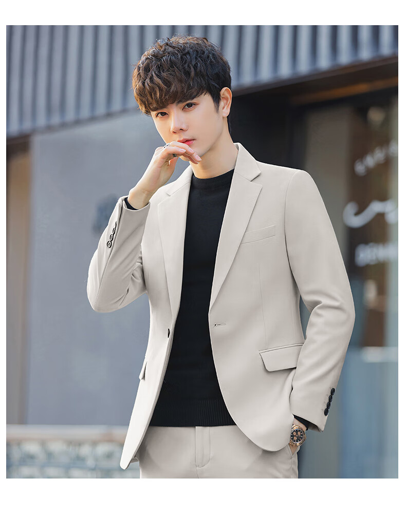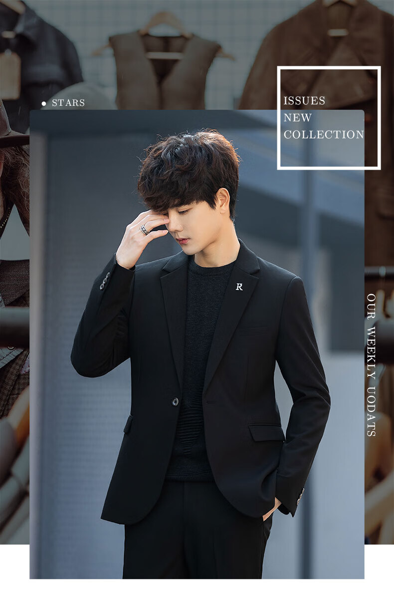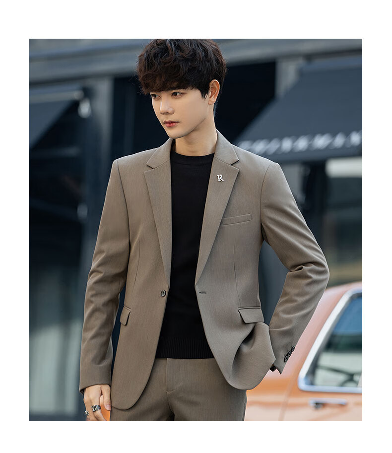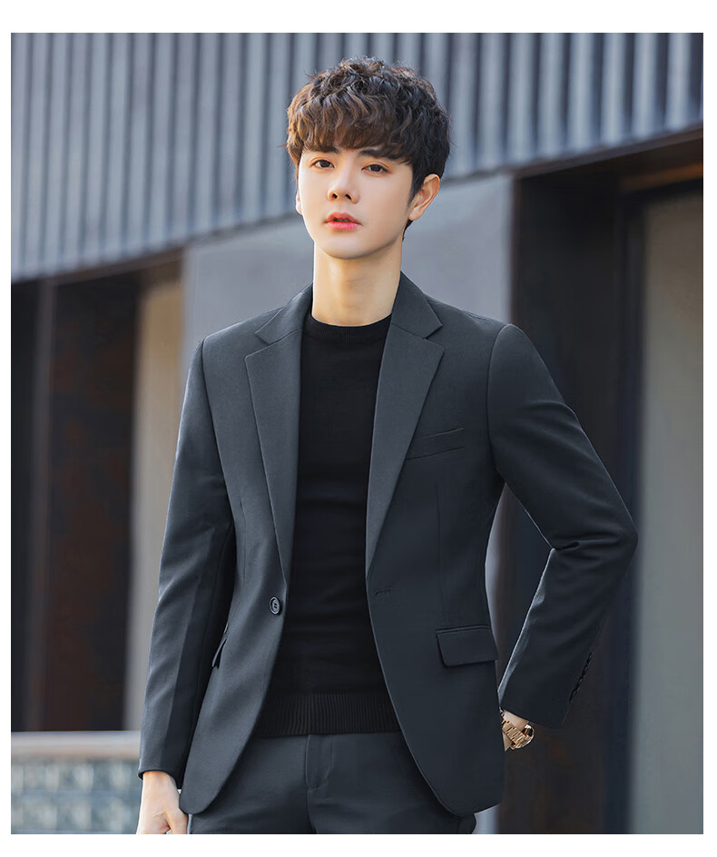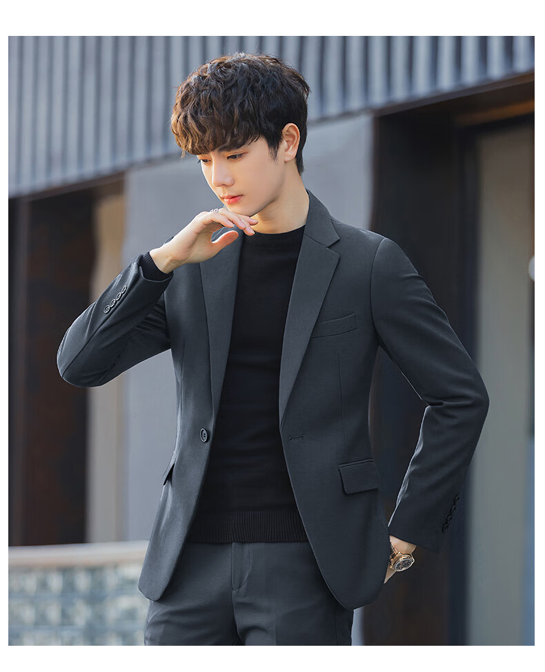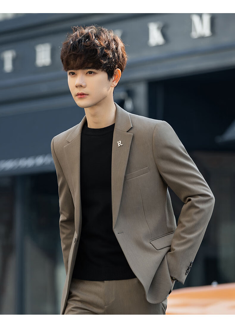 Luo Meng casual suit suit for men with a fall feel, versatile coat feel, Korean style business formal attire, handsome little suit top, green two-piece set (top + pants), add 2XL to the collection, weight 135-150Jin Jin is equal to about 0.5 kg
