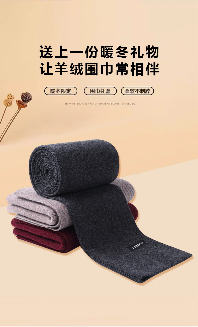 Lieber 100% cashmere high-end scarf for men in winter red new versatile warm gift for husband, dad and elders, dark gray Specifications 180X30CM