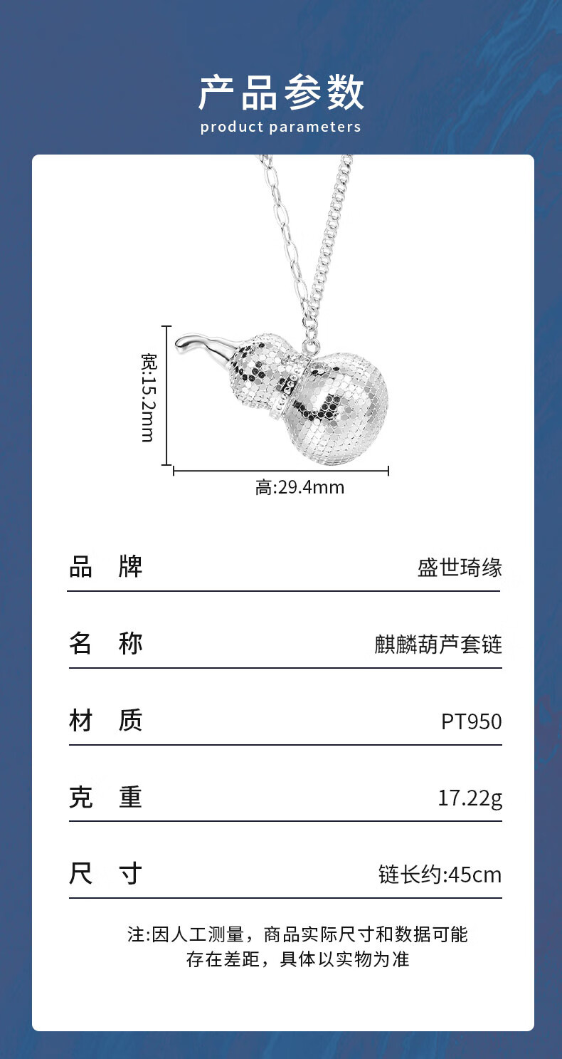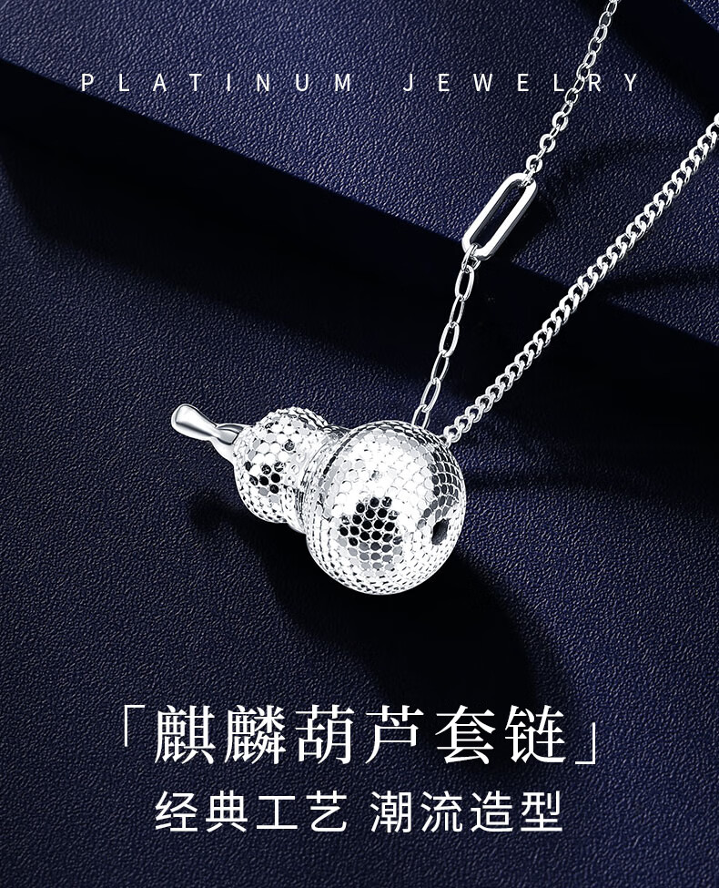 Shengshi Qiyuan platinum necklace for women pt950 platinum necklace set chain unicorn gourd necklace Chinese Valentine's Day gift for girlfriend, small size 7.42 grams, length 45cm