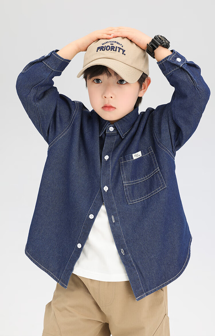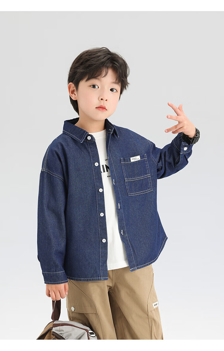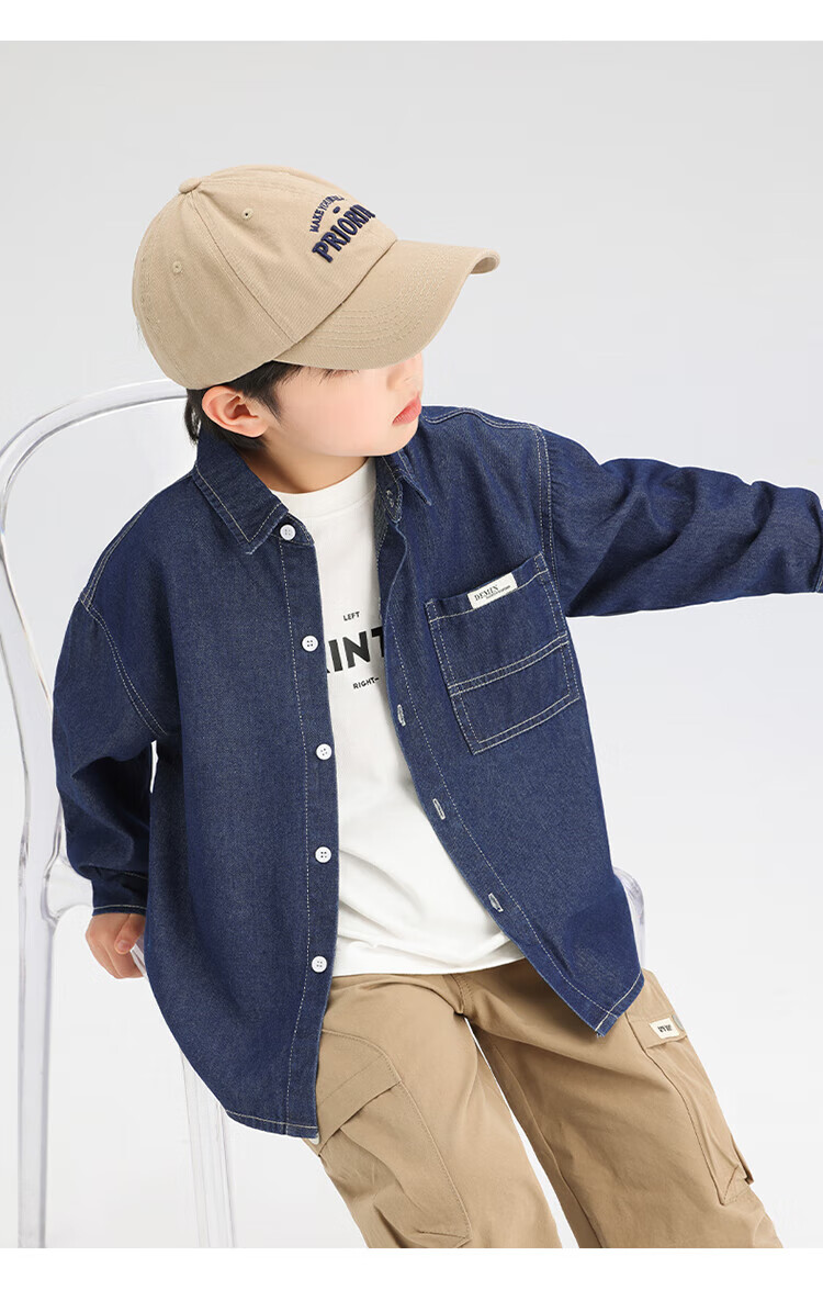 Zuoxi Boys' Shirt Children's Padded Denim Jacket Light Warm Autumn and Winter Cotton Clothes 2025 New Winter Tops for Boys Dark Denim Color Spring and Autumn Style Not Easily Deformed Wear-Resistant 170 Recommended Height Around 170cm