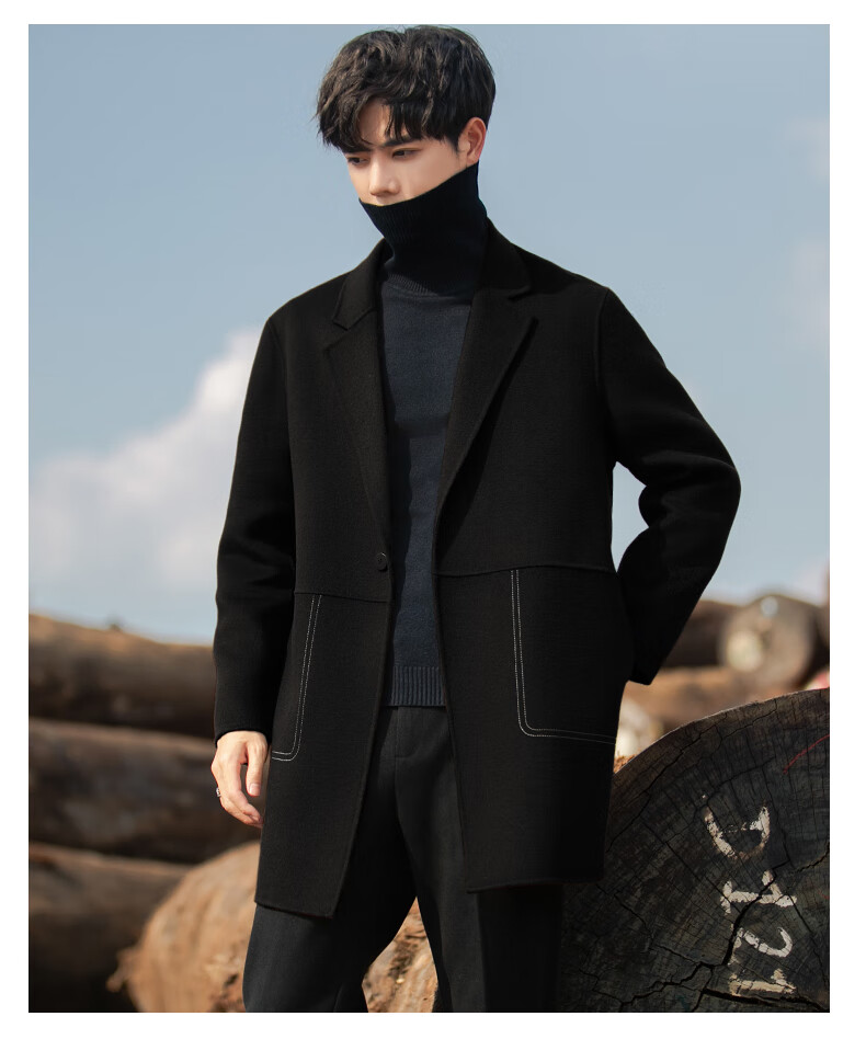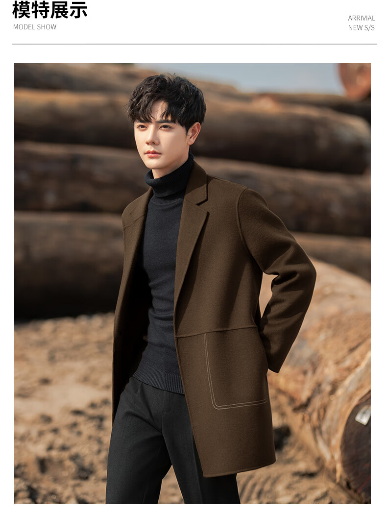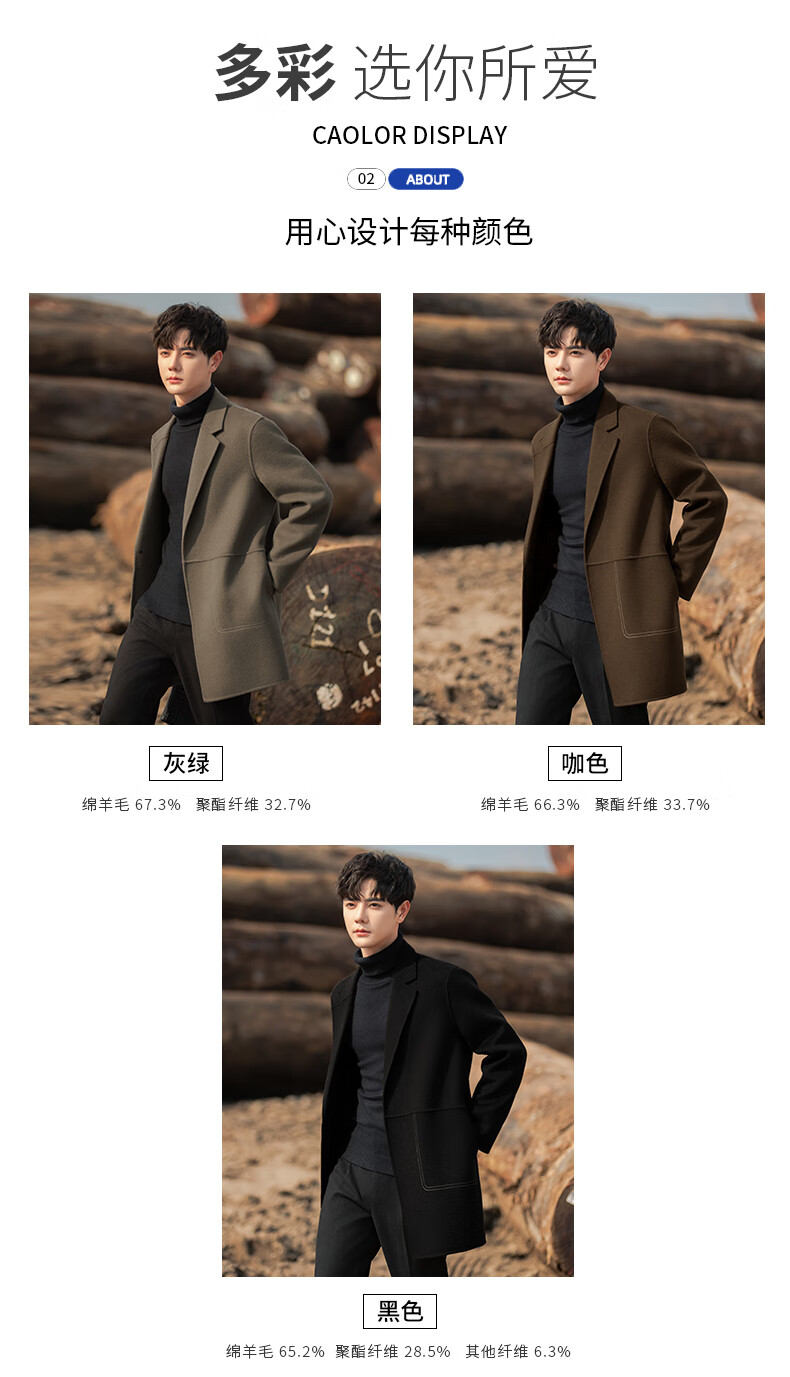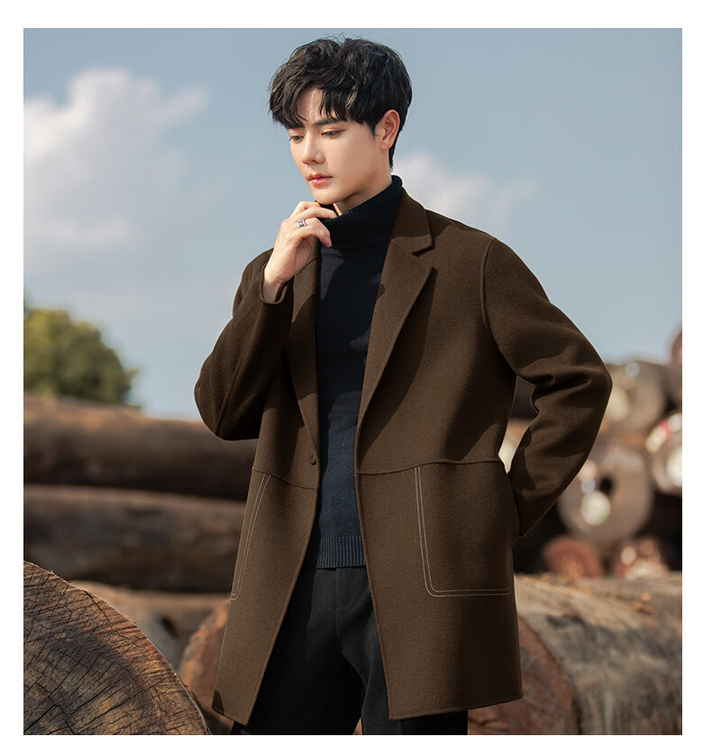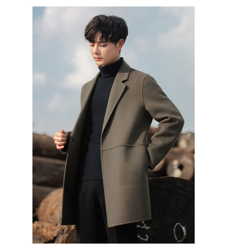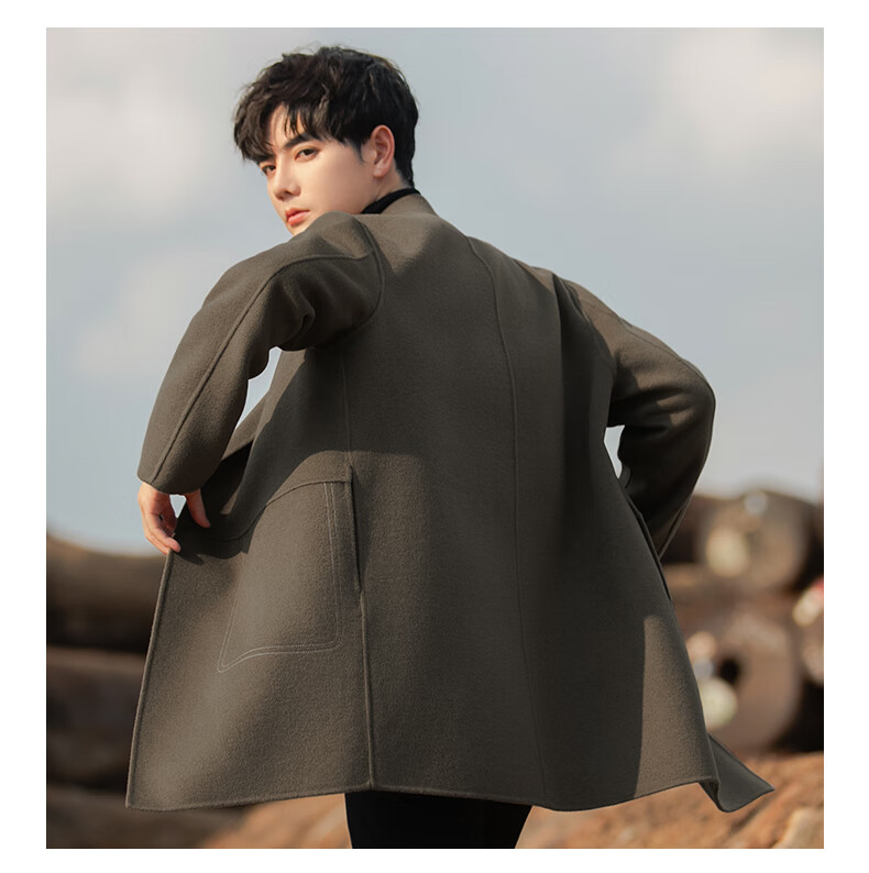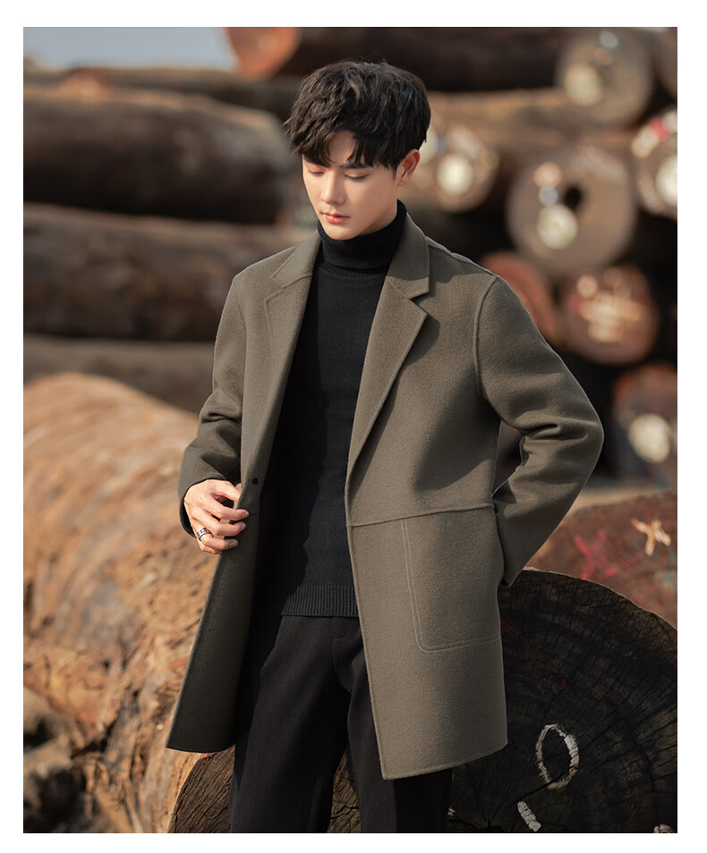 Pierre Cardin autumn and winter men's double-sided wool coat mid-length high-end woolen coat men's Korean style casual windbreaker trend gray green 67.3% sheep wool XL