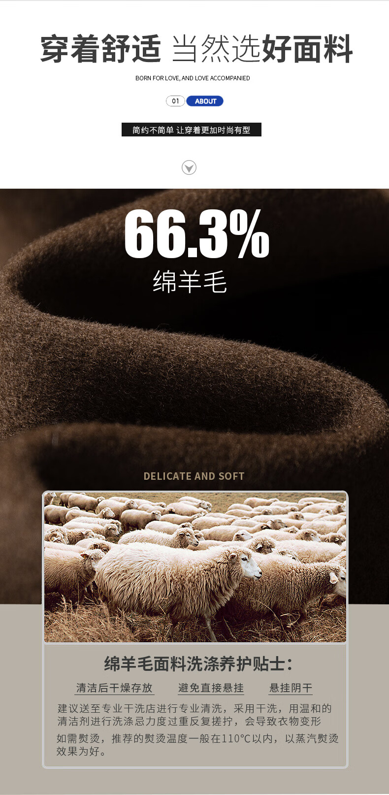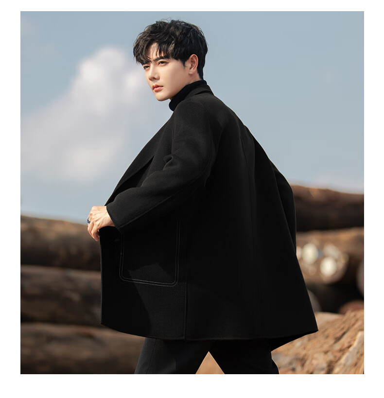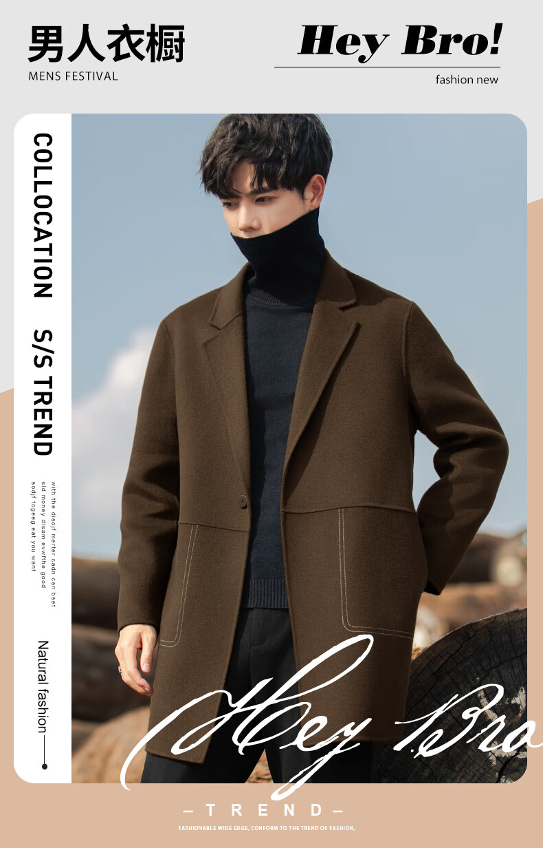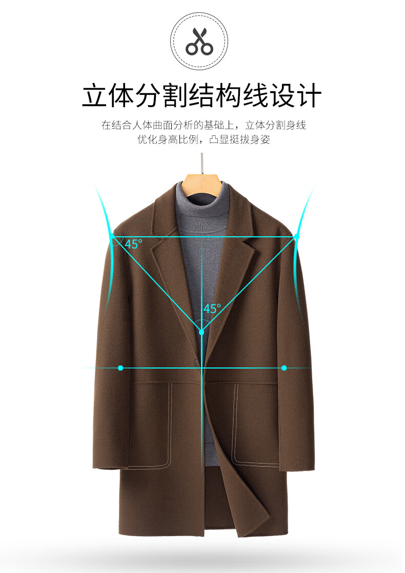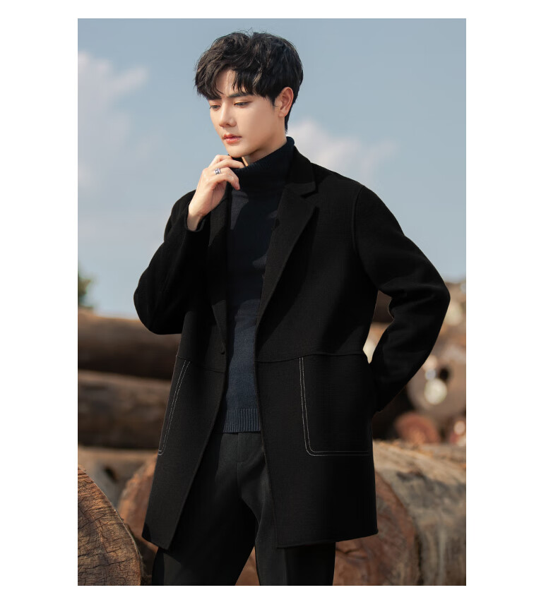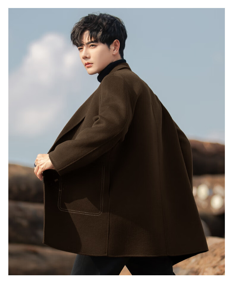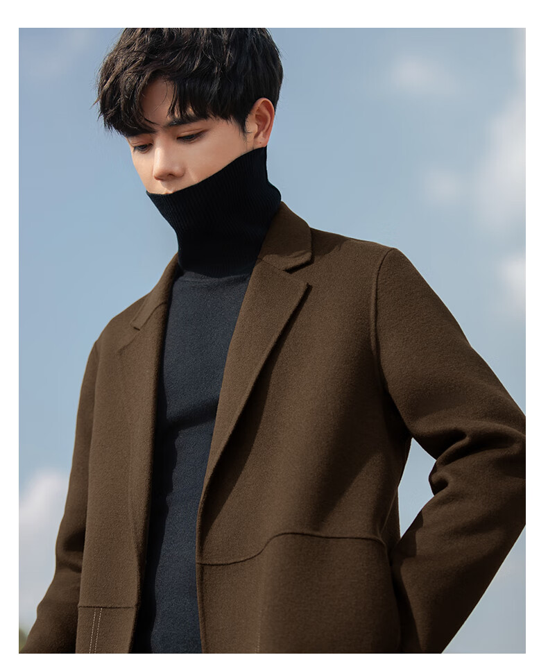 Pierre Cardin autumn and winter men's double-sided wool coat mid-length high-end woolen coat men's Korean style casual windbreaker trend gray green 67.3% sheep wool XL