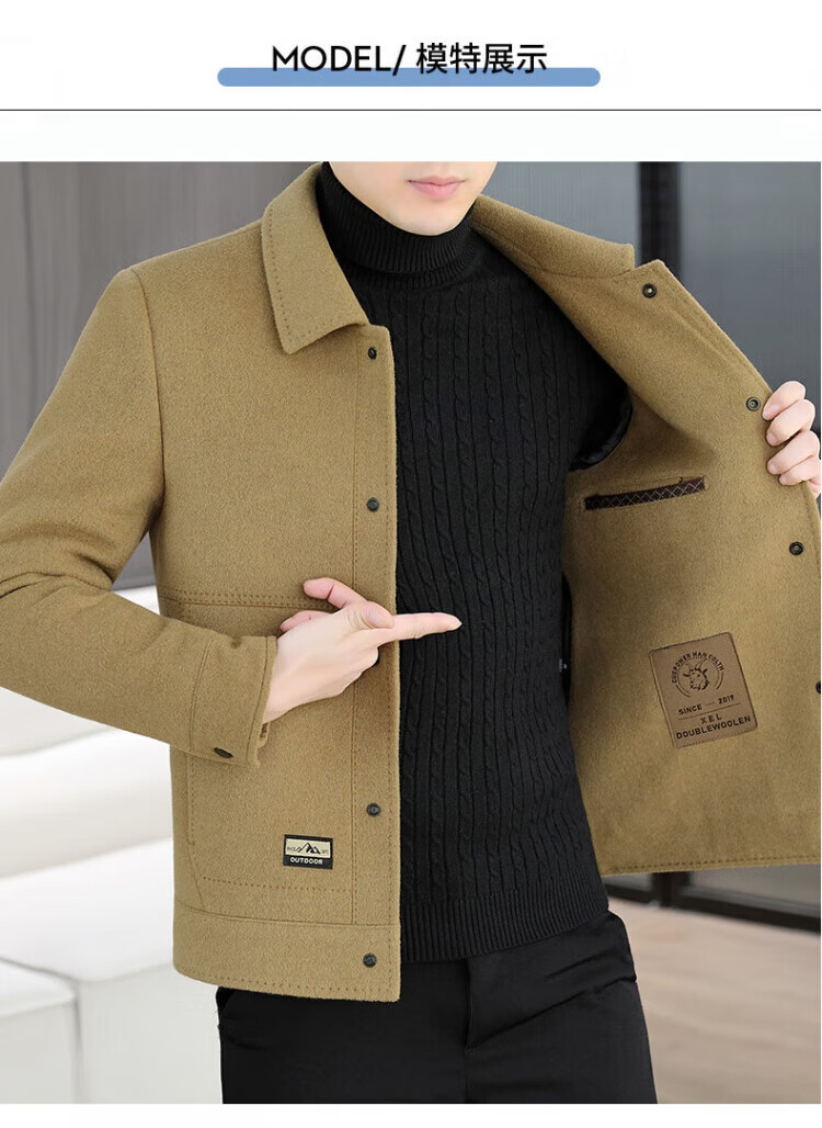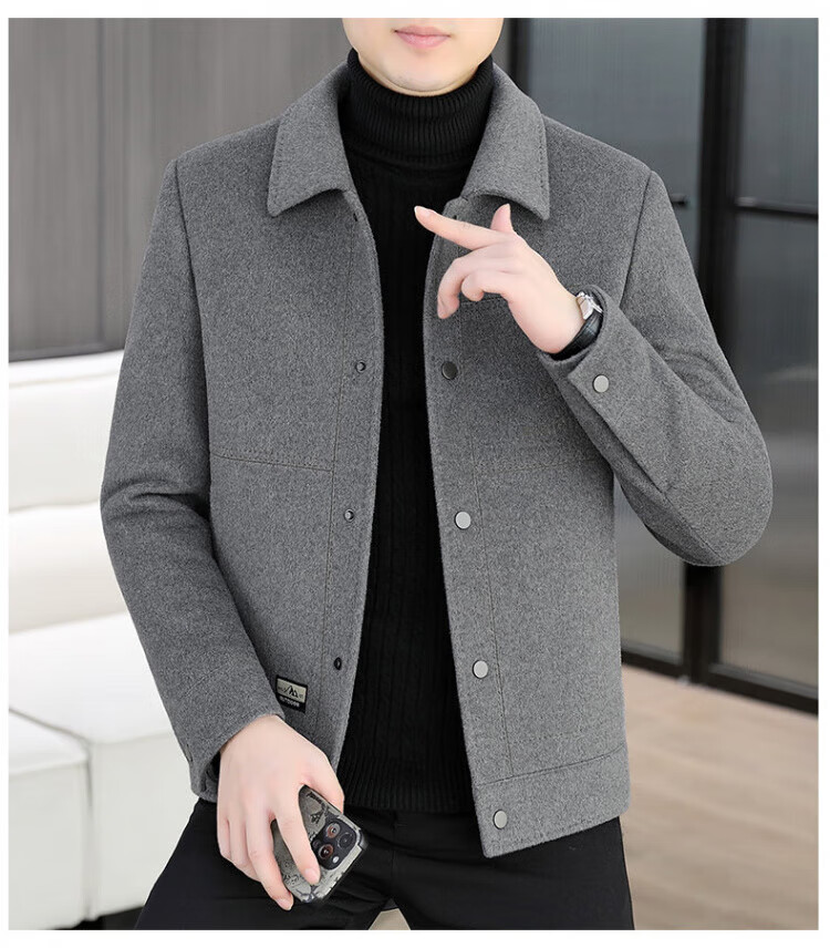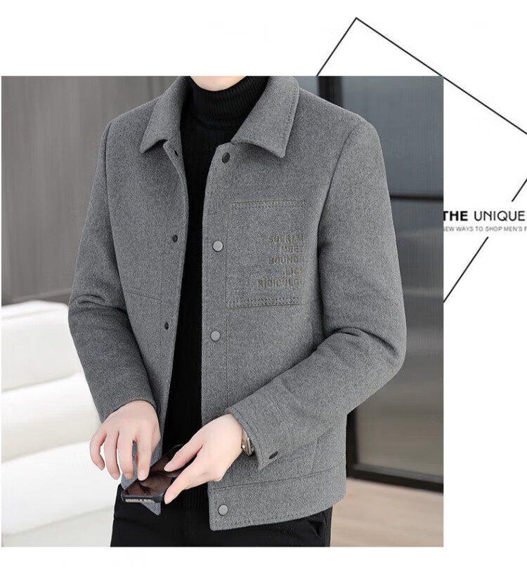 ROMON Double-sided Wool Coat Men's Autumn and Winter Removable Down Liner Woolen Jacket Windproof Warm Nylon Jacket Men's Regular Gray XL Size 180