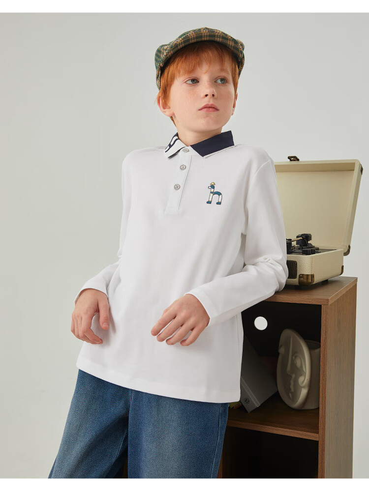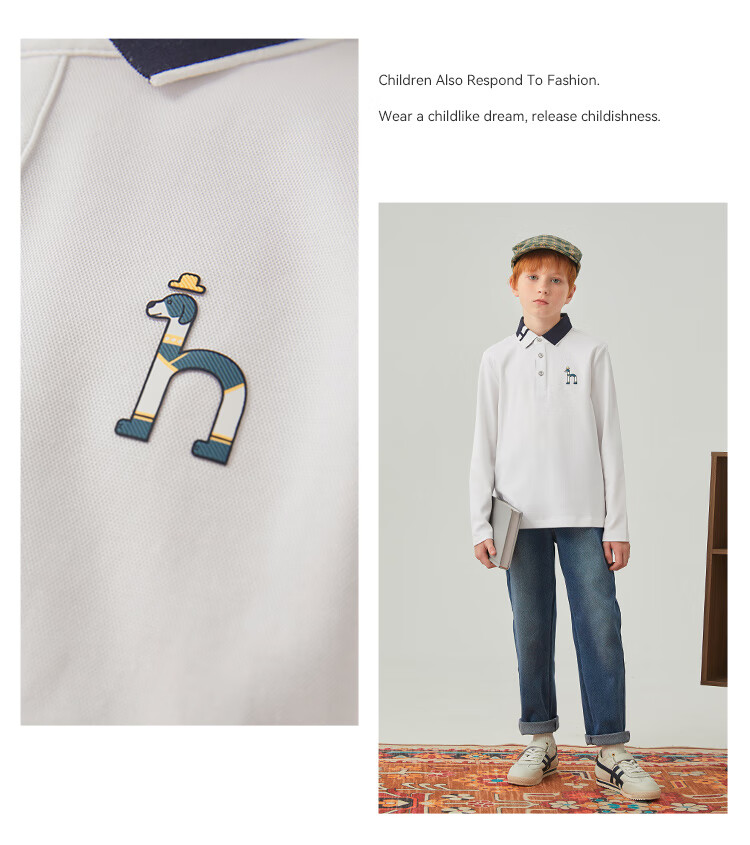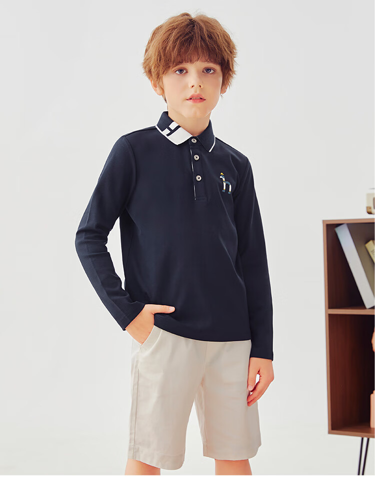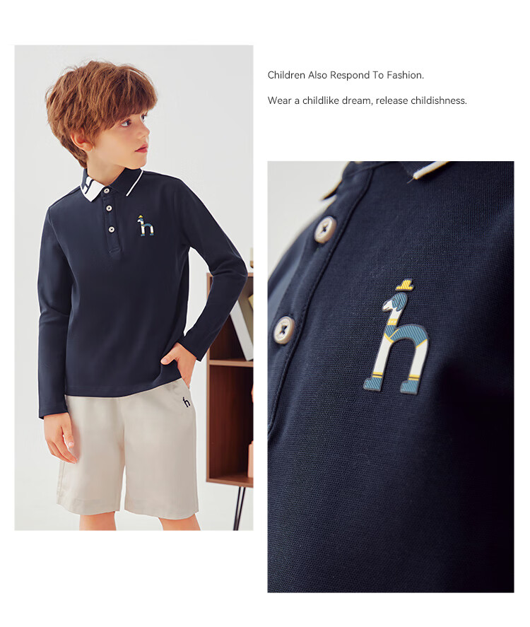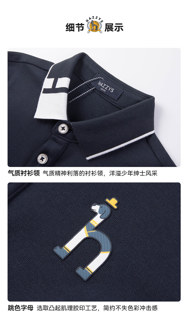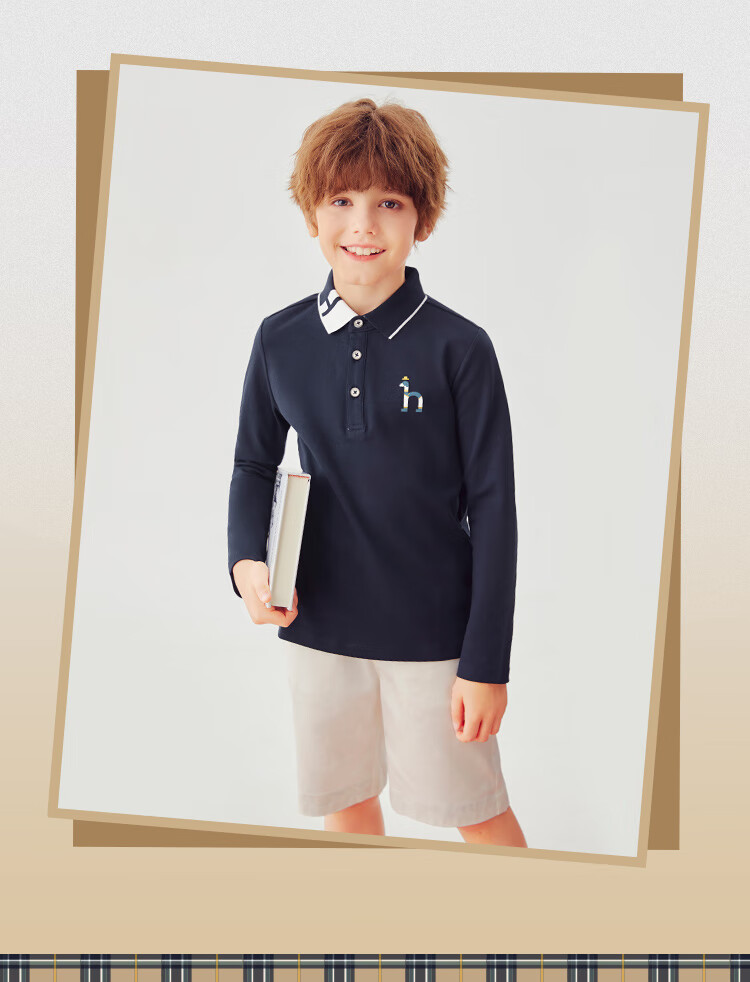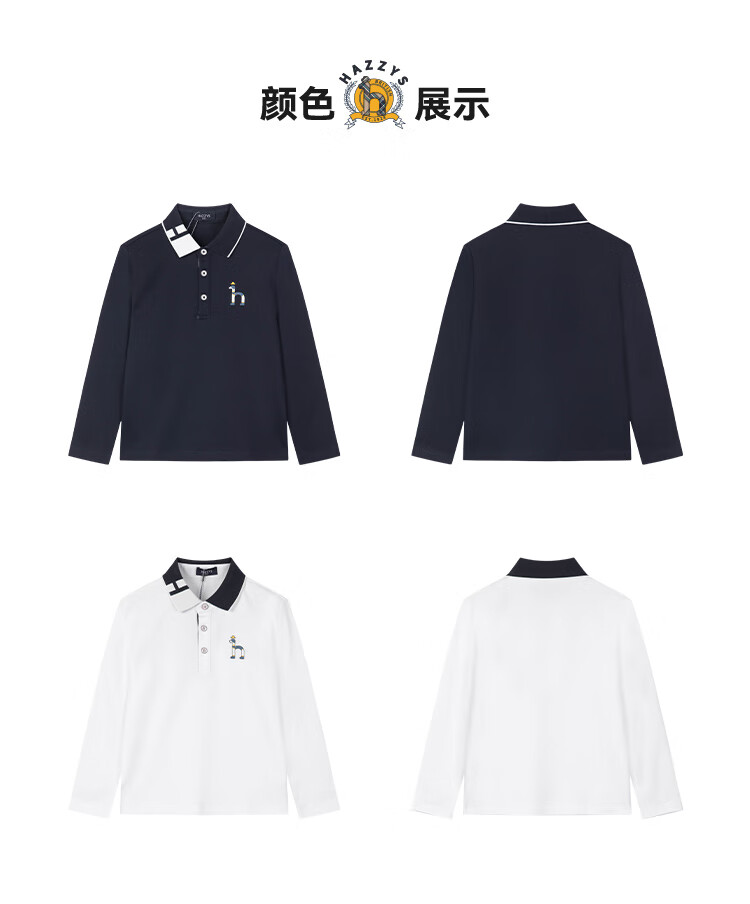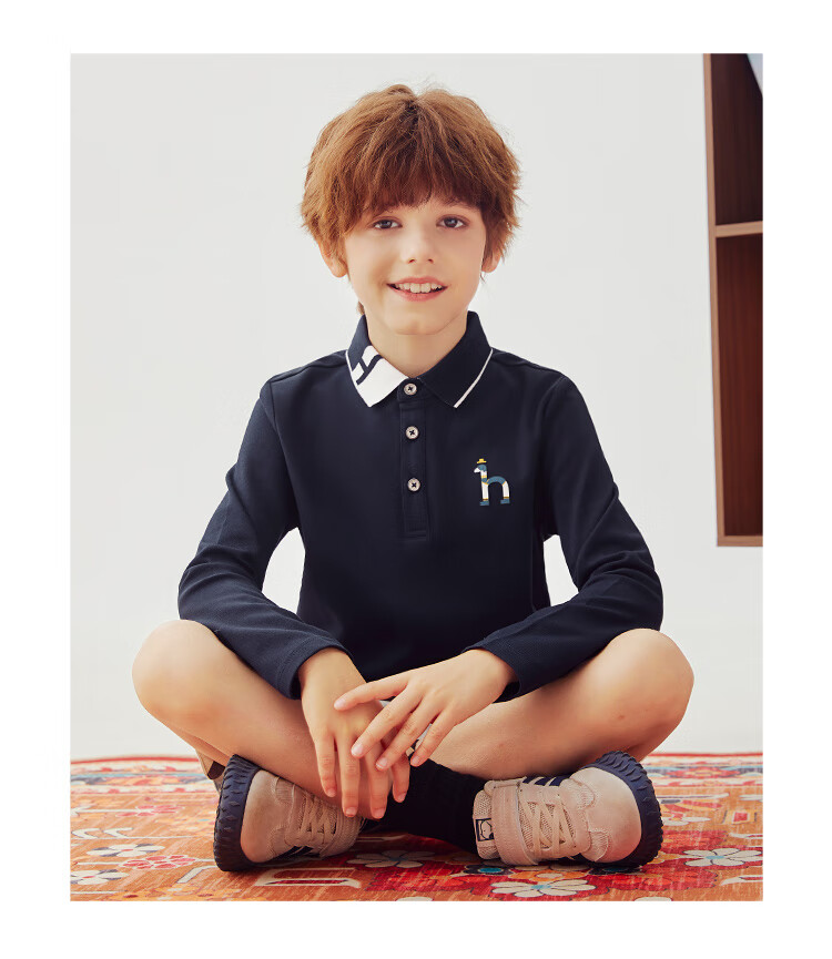 HAZZYS children's clothing boys and girls POLO shirt autumn new lapel casual long-sleeved T-shirt navy 130