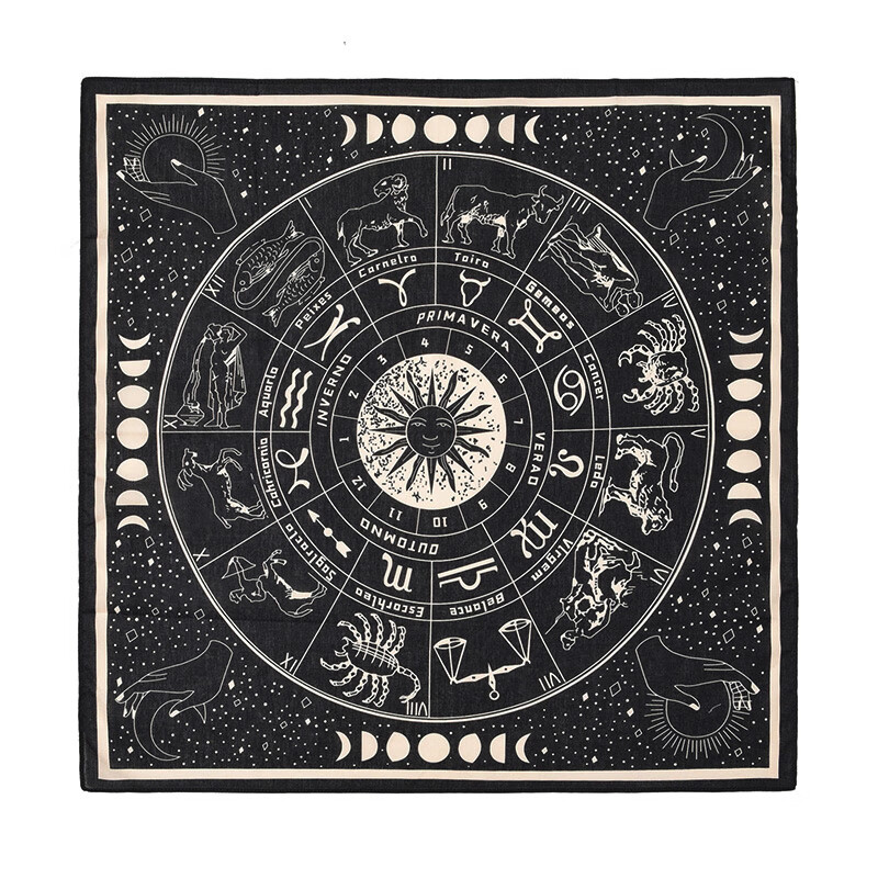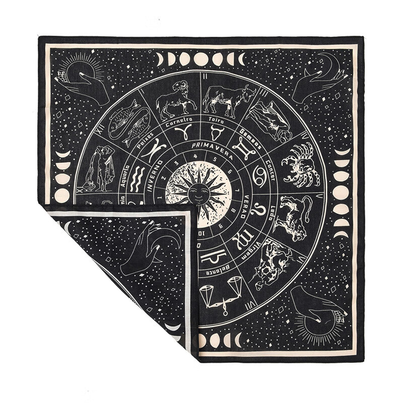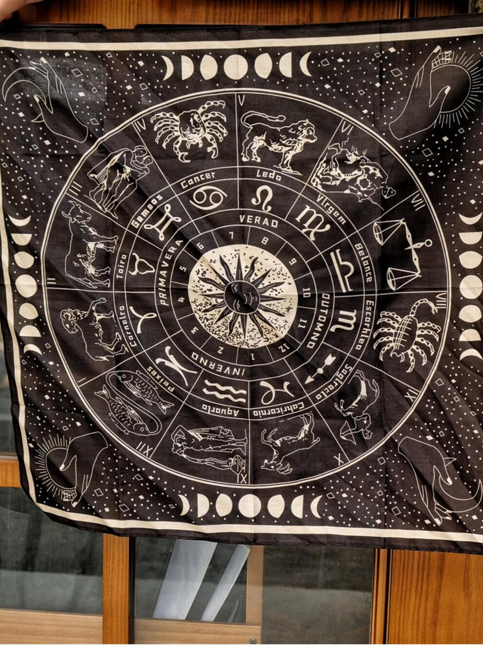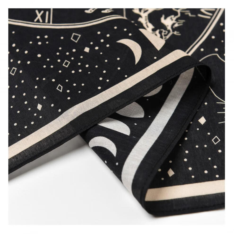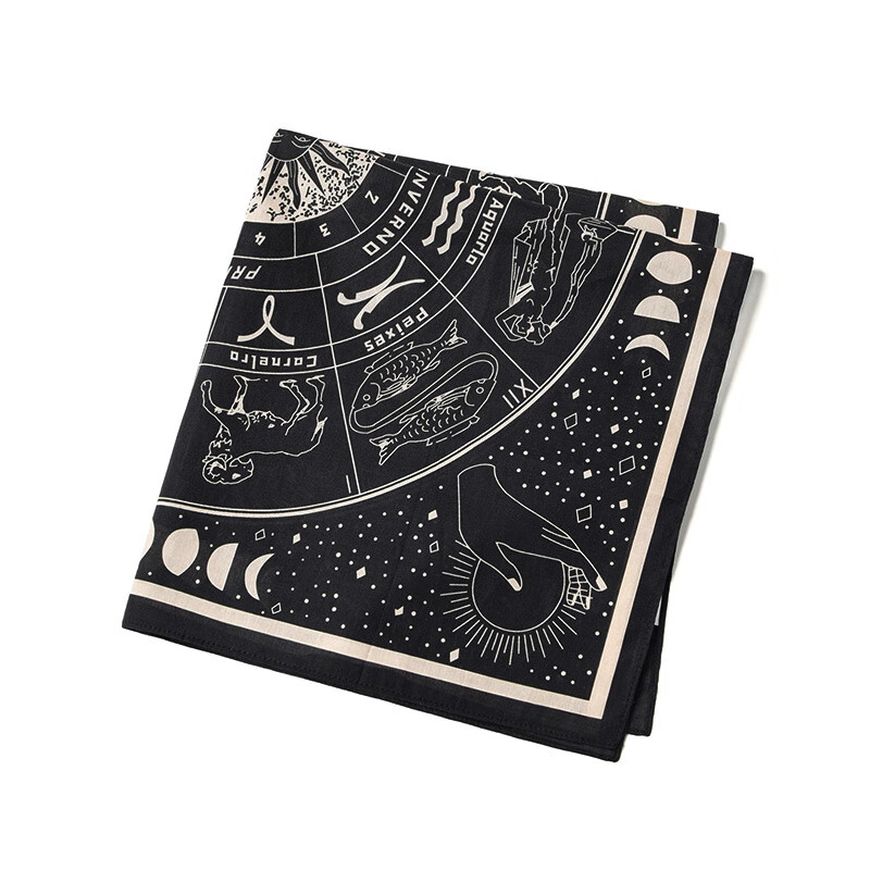 Shijanu's new cotton constellation printed American retro square scarf Ami khaki vintage women's headscarf headband black