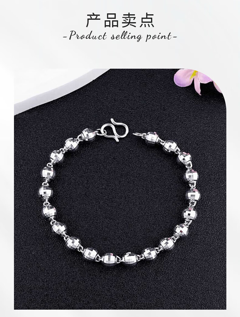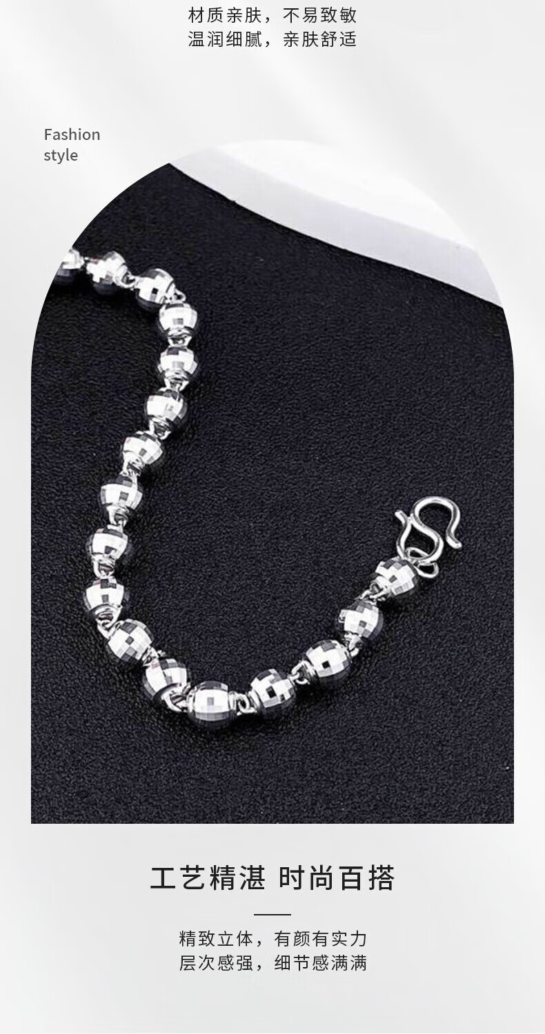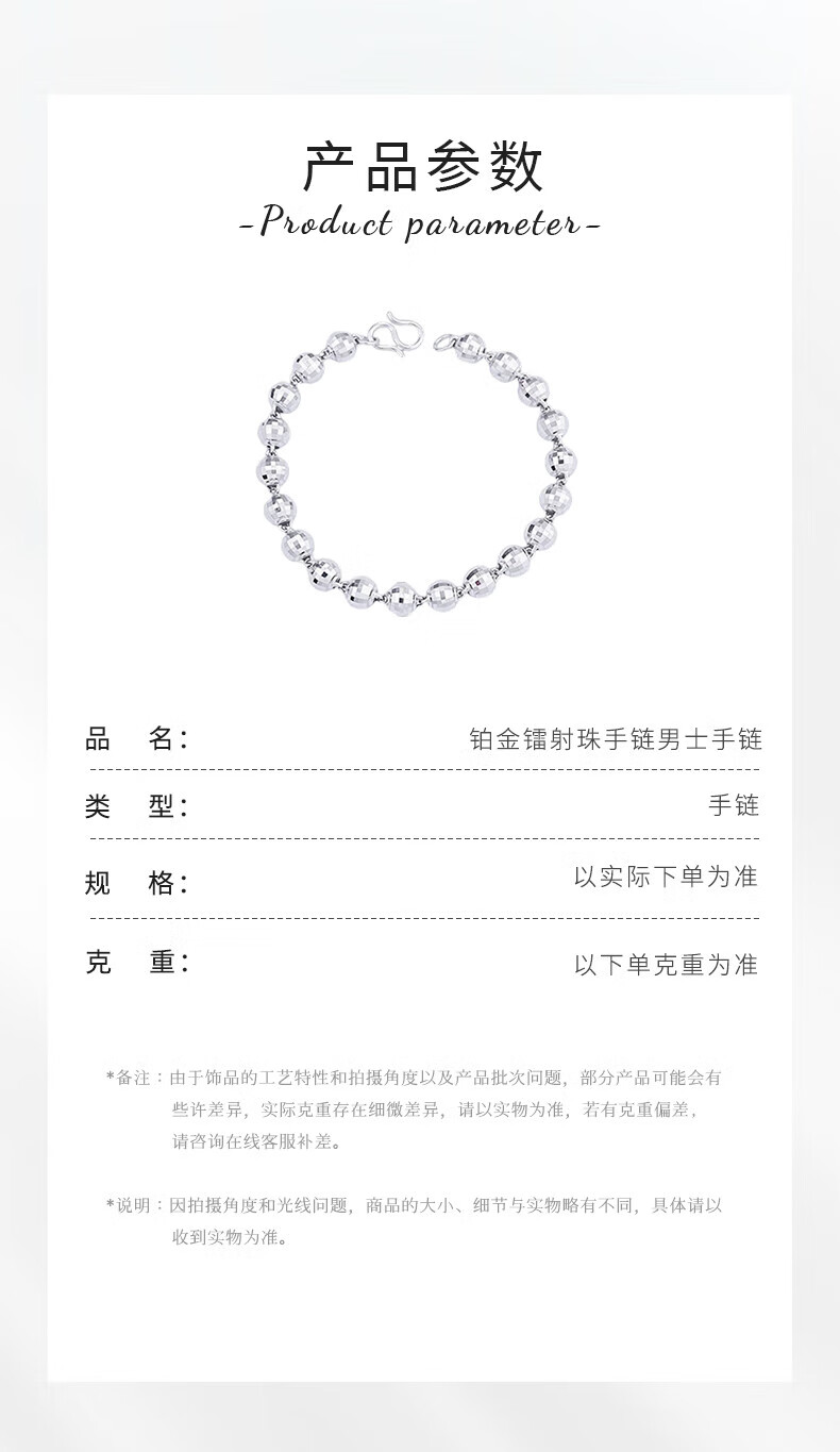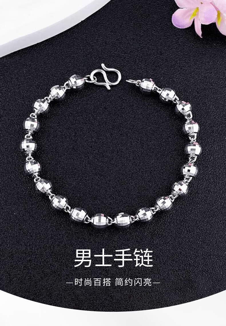 Beijing Gold Trading Center Co., Ltd. Platinum Bracelet pt950 Laser Bead Bracelet Men's Bracelet Men's Bracelet for Boyfriend and Husband Birthday Mid-Autumn Festival Gift About 11.1g