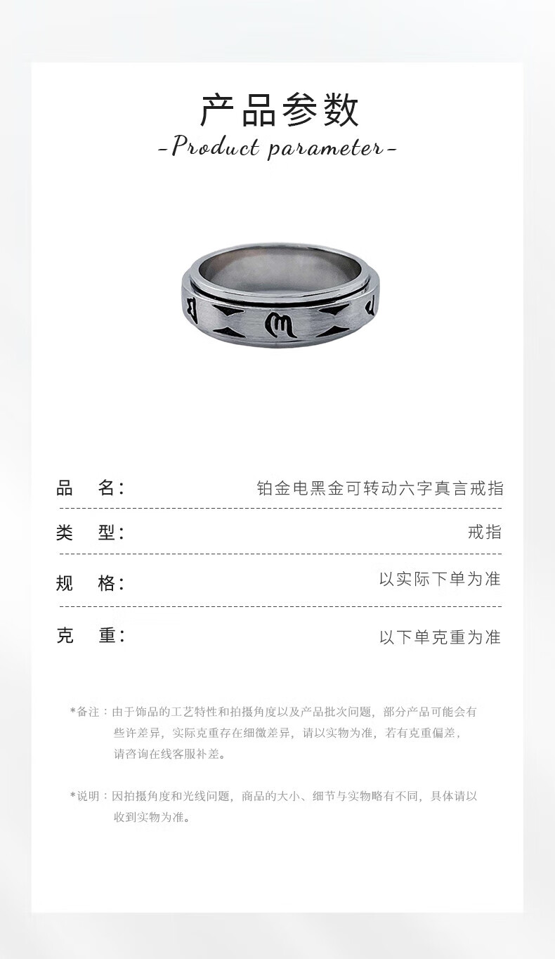 Beijing Gold Trading Center Co., Ltd. platinum ring pt950 electric black gold rotatable six-character mantra ring for girlfriend and wife's birthday and Mid-Autumn Festival gift, 22 rings, about 12g