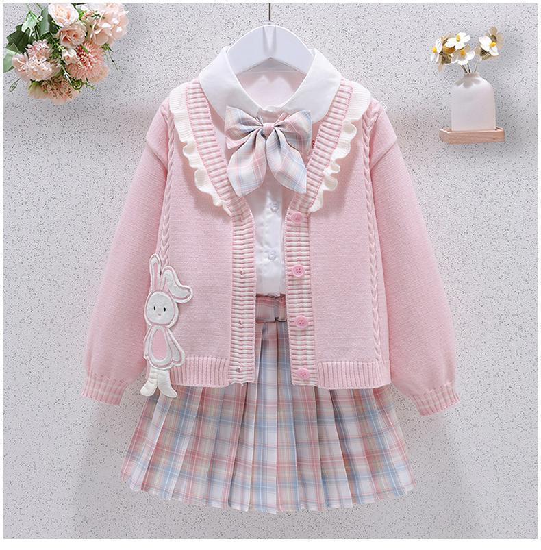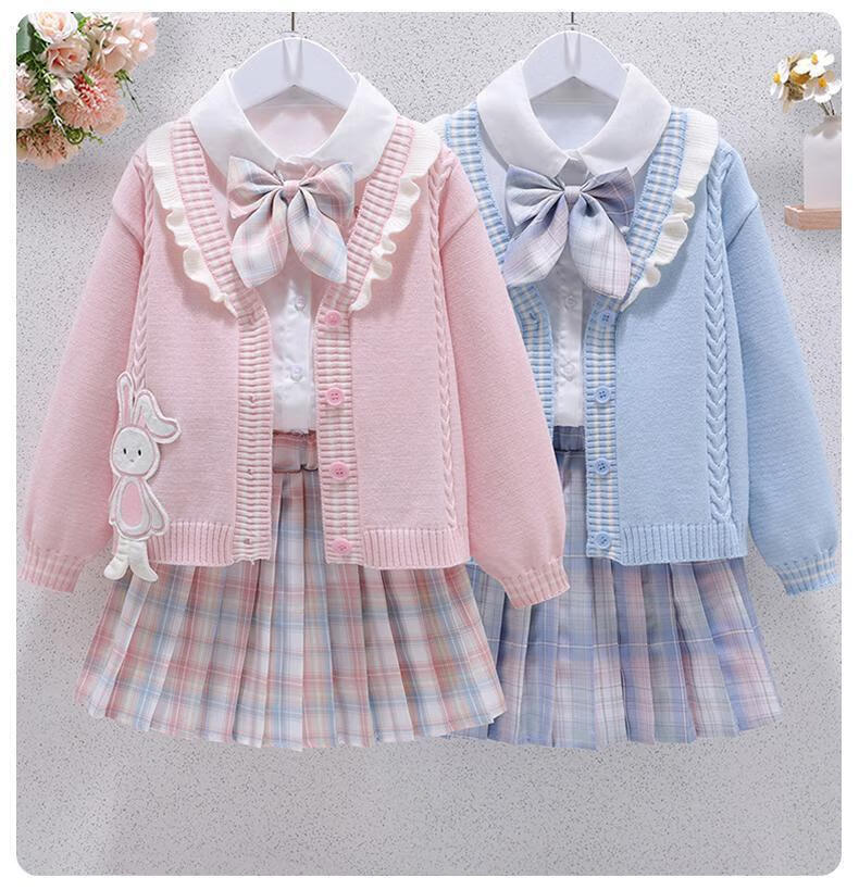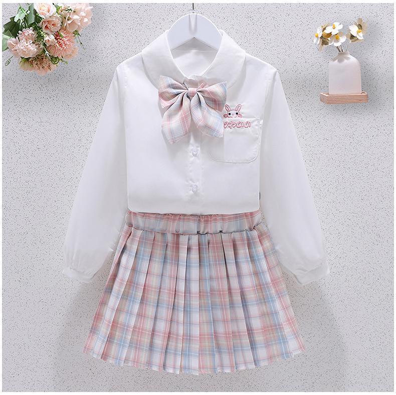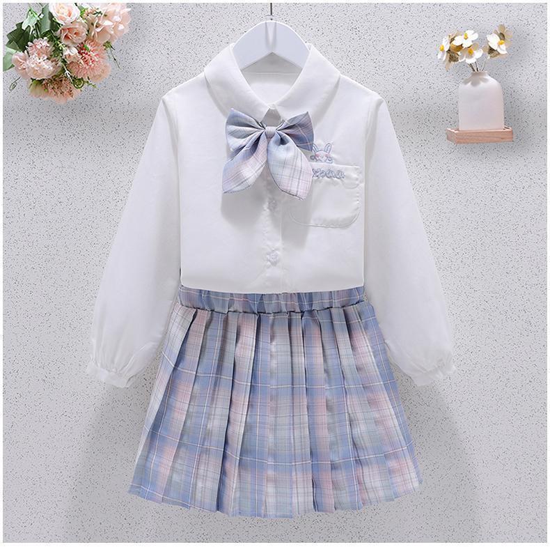 G.duck girls jk suit skirt spring and autumn new style girls college style big children's shirt jacket pleated skirt three-piece set blue three-piece set shirt bunny blue jacket + skirt 130