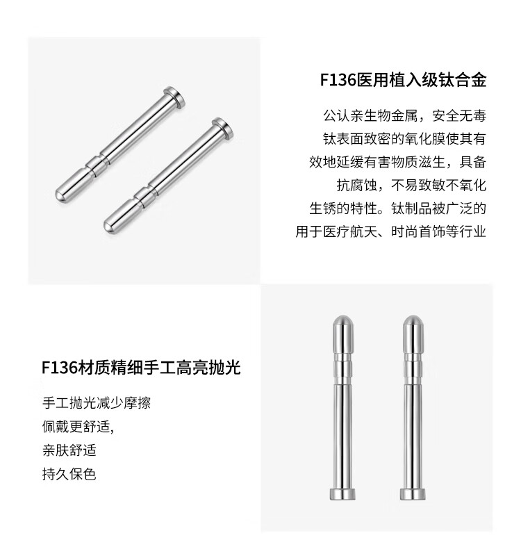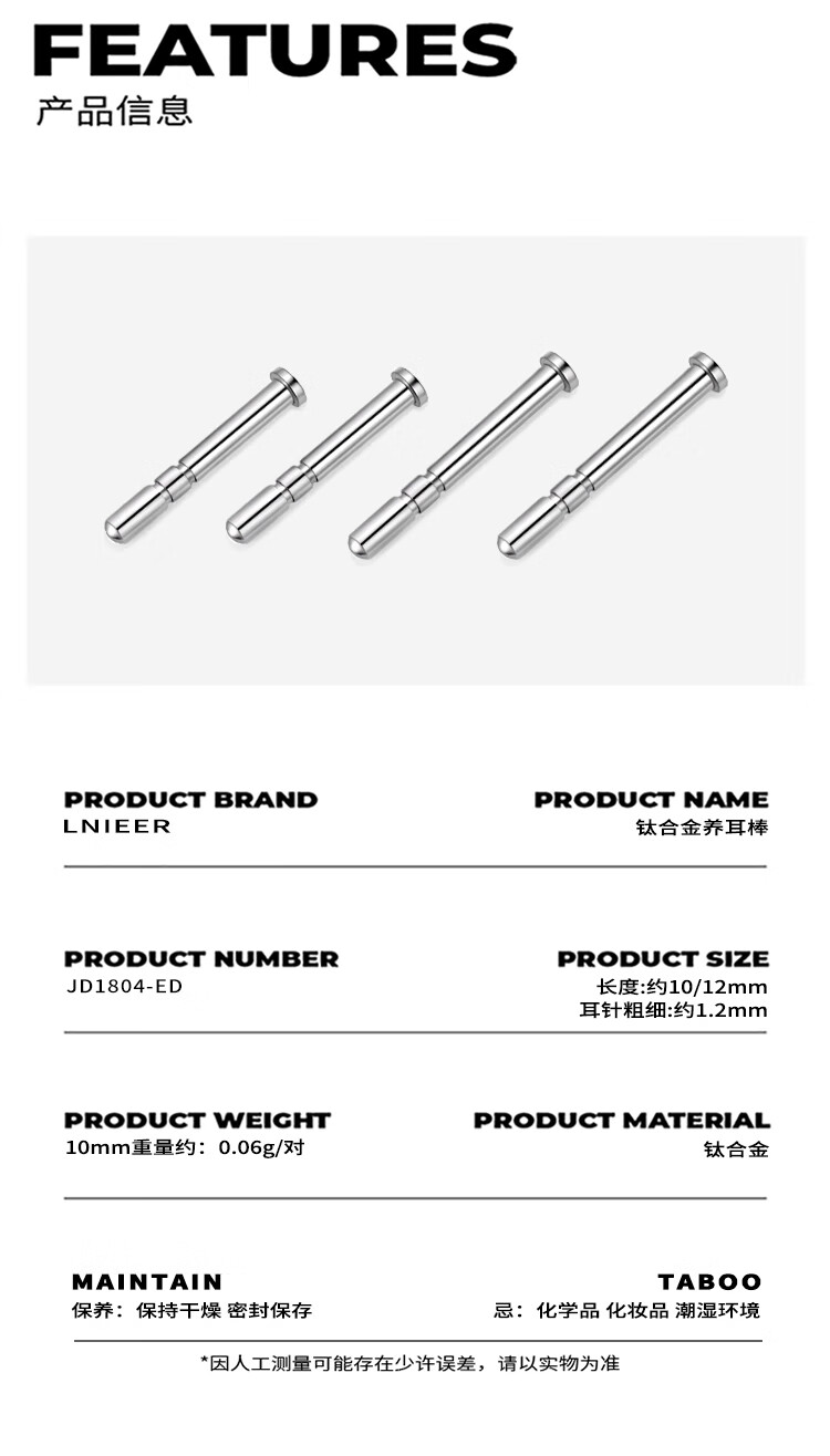 LnieerF136 medical titanium alloy earrings for women, ear piercing and ear sticks, invisible anti-blocking needles, no need to remove ear bones when sleeping, earrings for men, 2 pairs, rod thickness 0.8mm + rod length 12mm ear rods