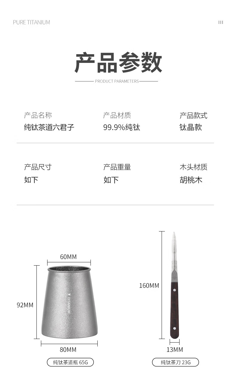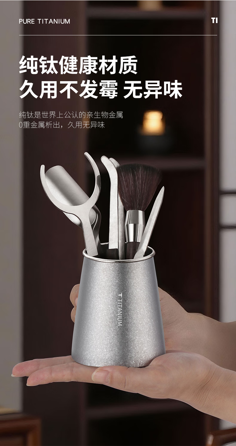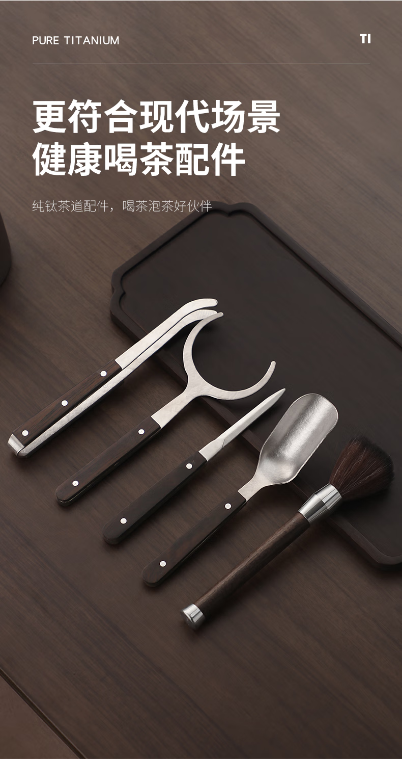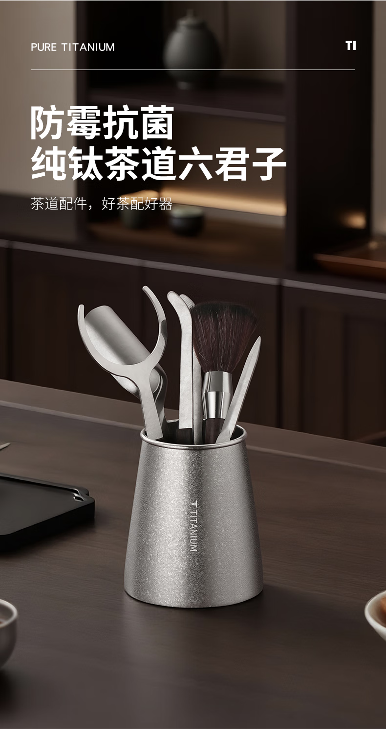 Deshanfei Pure Titanium Tea Ceremony Six Gentlemen Modern High-end Tea Art Tea Making Set Tea Spoon Tea Needle Knife Clip Kung Fu Tea Set Accessories Pure Titanium Tea Ceremony Six Gentlemen - Crystallized Style